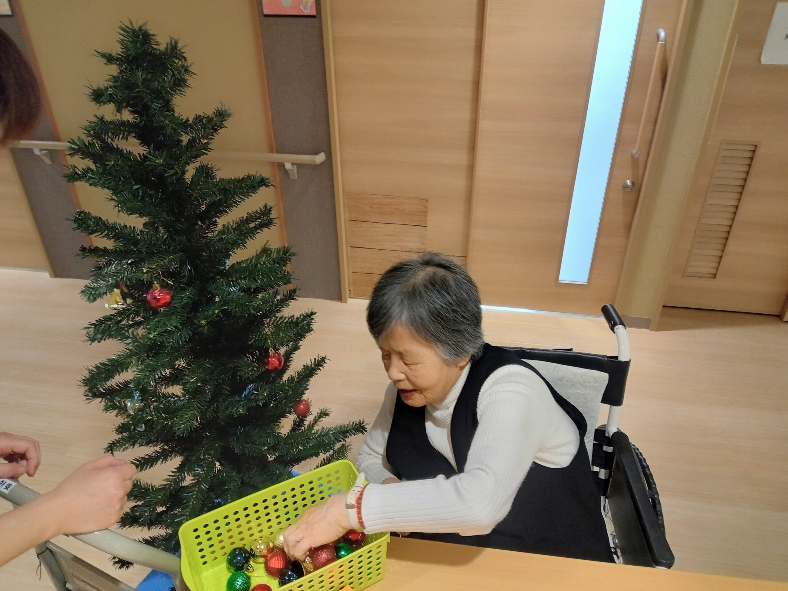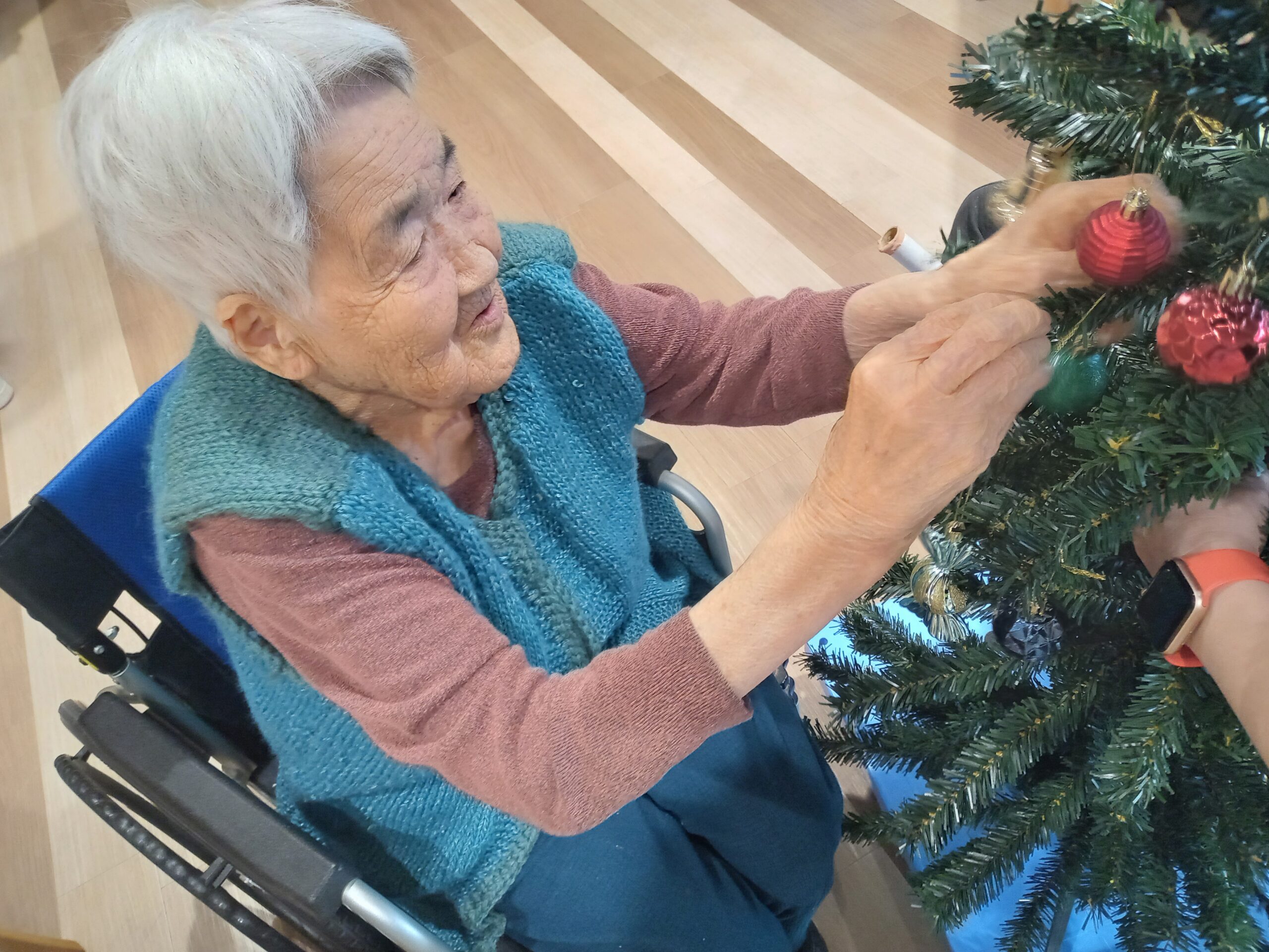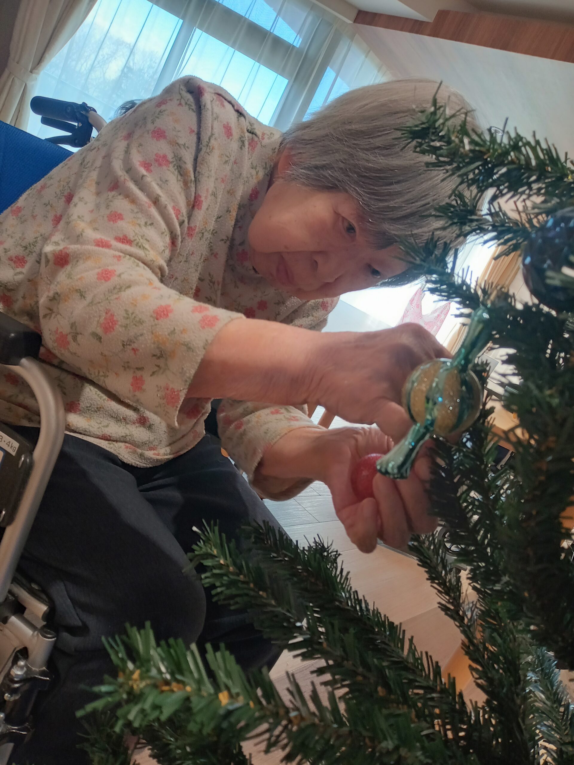 12月に入り、入居者様にクリスマスツリーの飾り付けをしていただきました✨