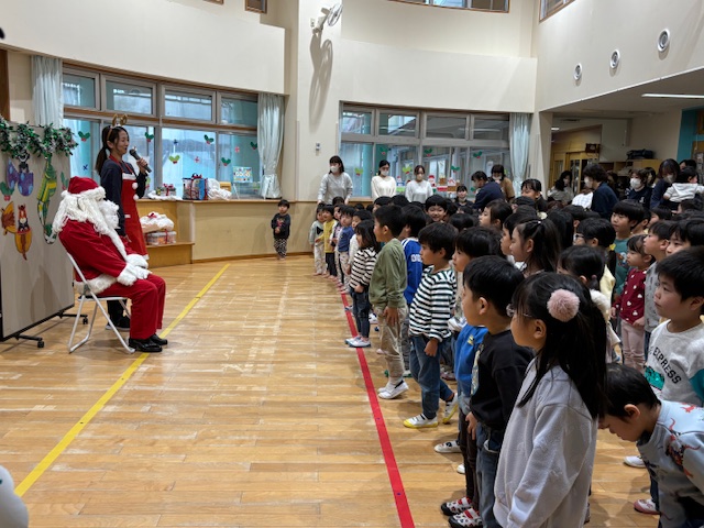 年長さんにもなると、サンタさんに「先生よね?」とこそっと質問するお友達もいましたが、いえいえ本物のサンタさんですよ😊