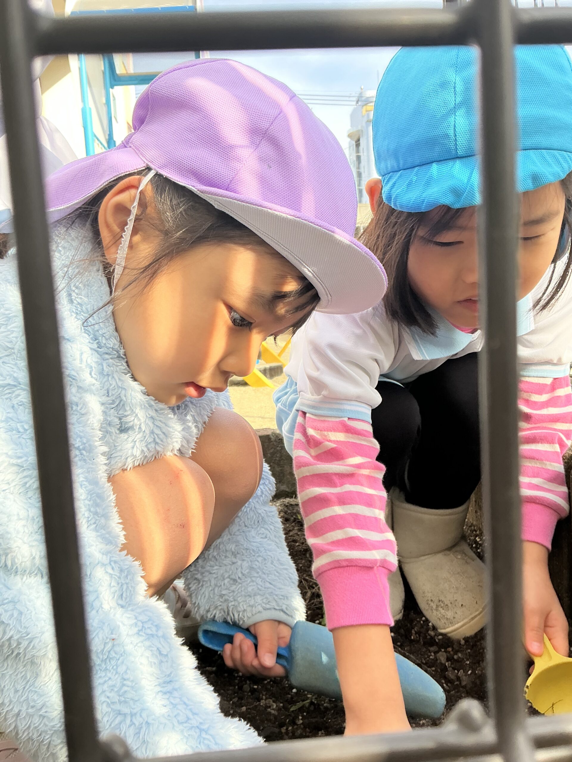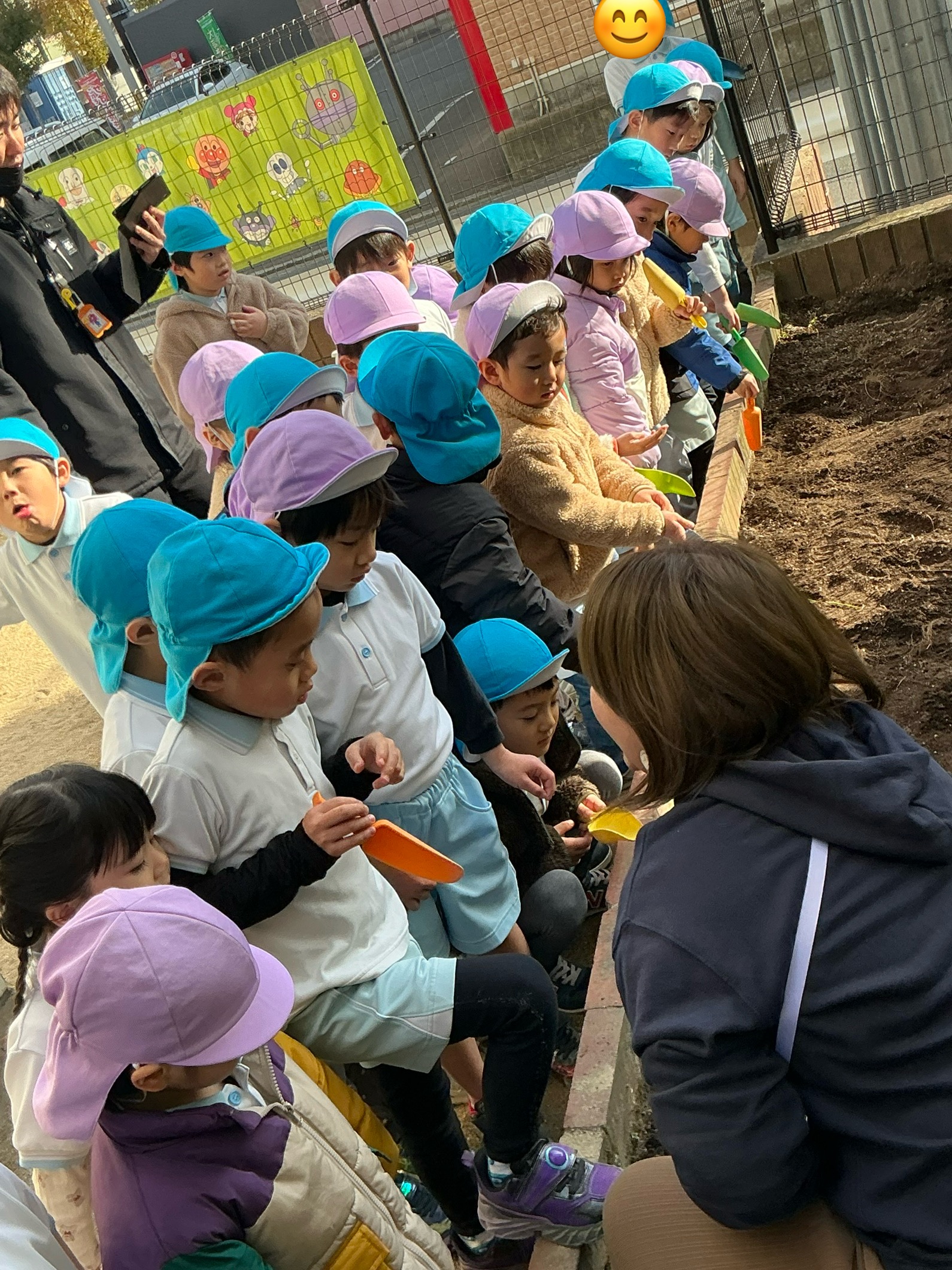 つき組ひかり組さんで、チューリップの球根を植えました🌷