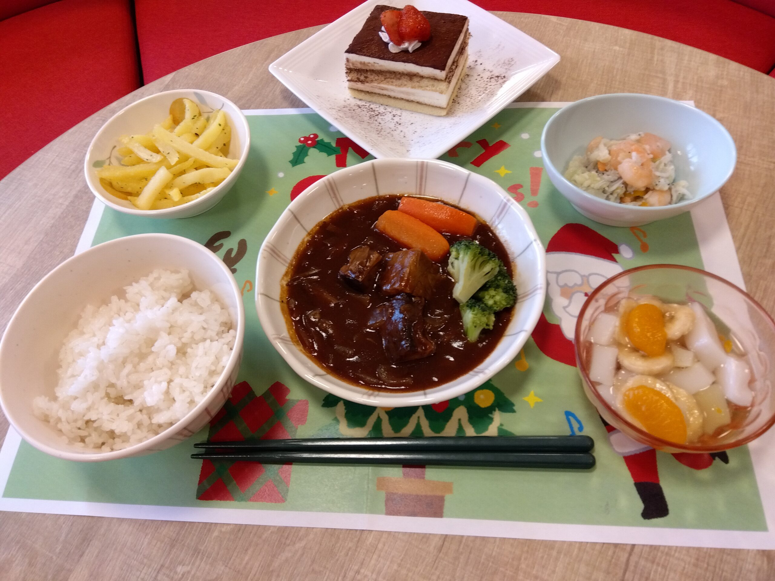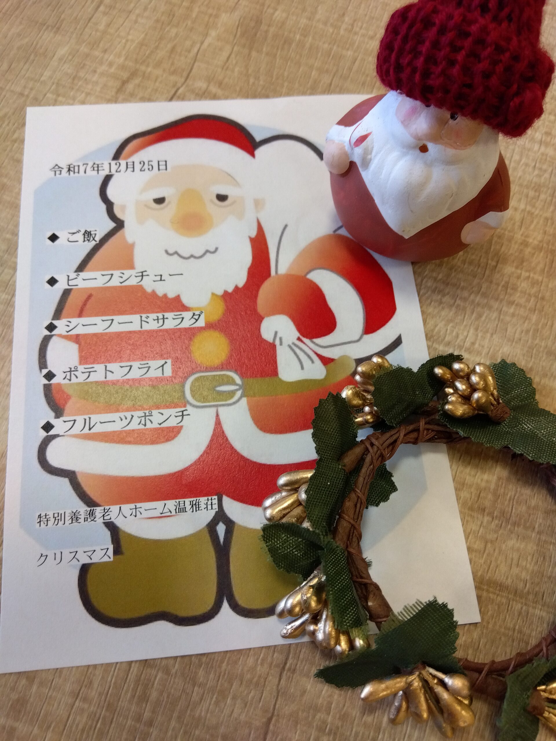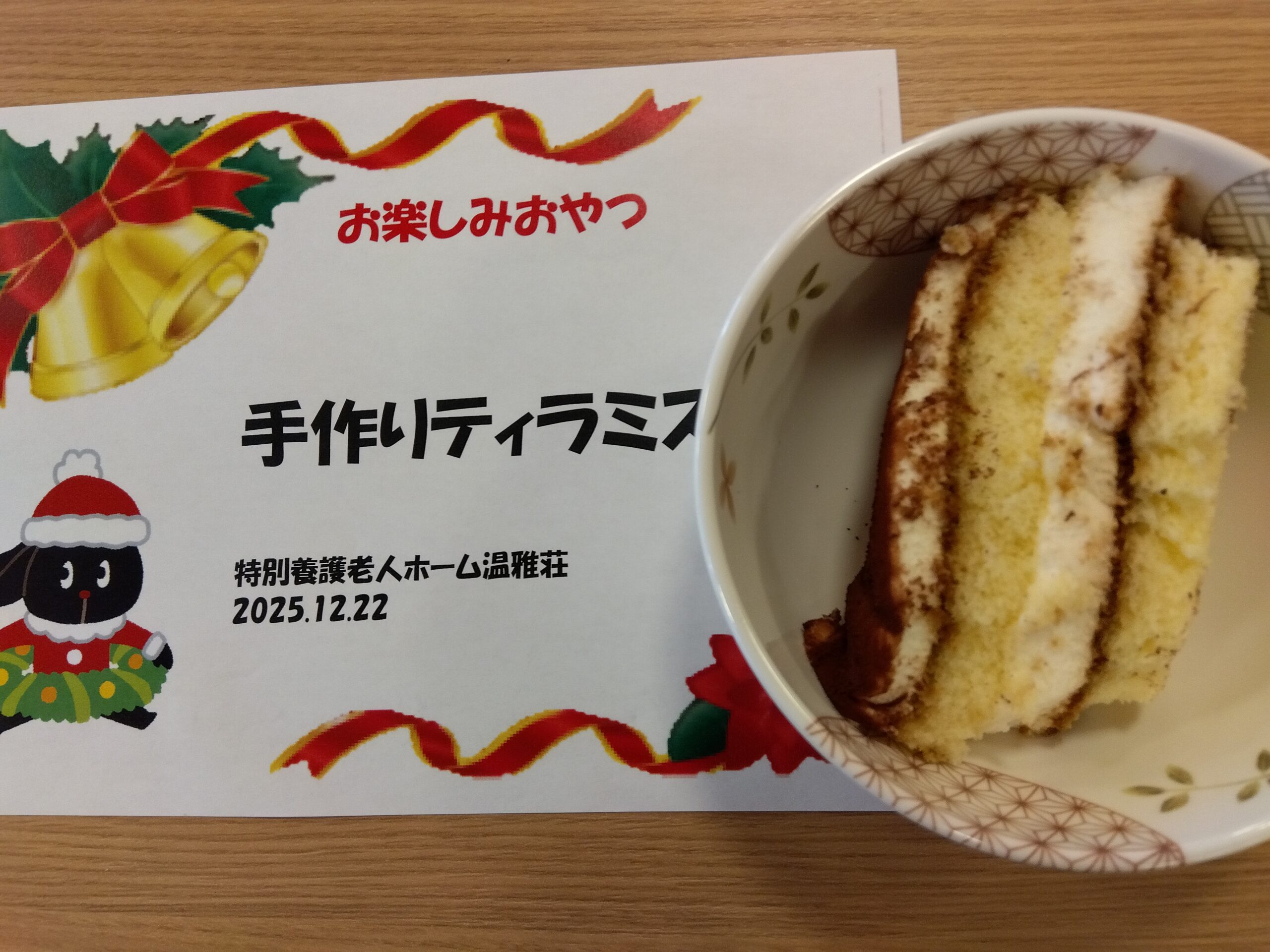 温雅荘のサンタクロースさんはあわてんぼうなようで12/22月曜日に手作りティラミスを