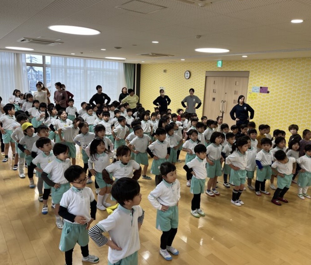まずは、職員がお手本でやってみた後、3.4歳児クラスの12月生まれのお友だちも挑戦しました✨