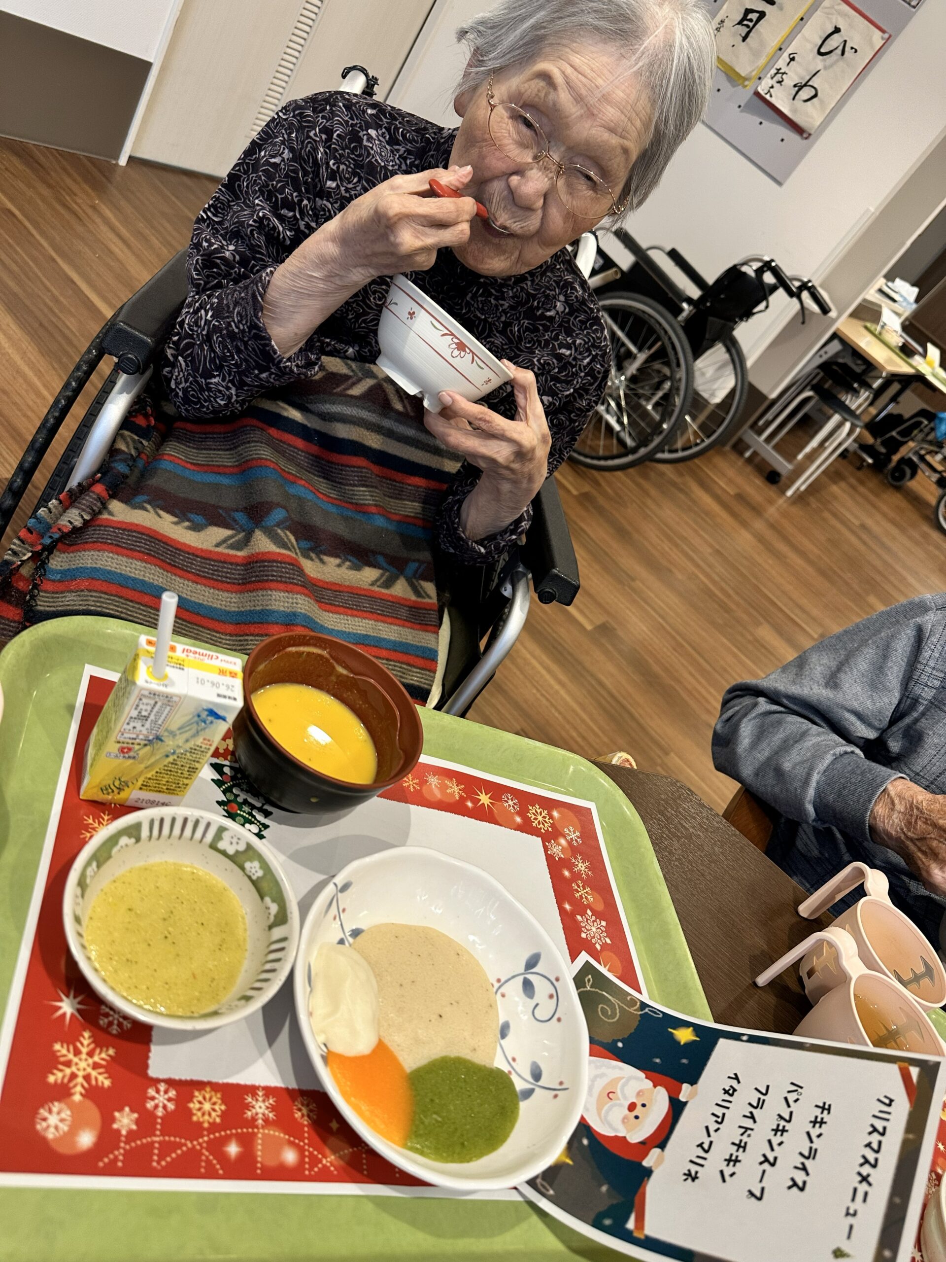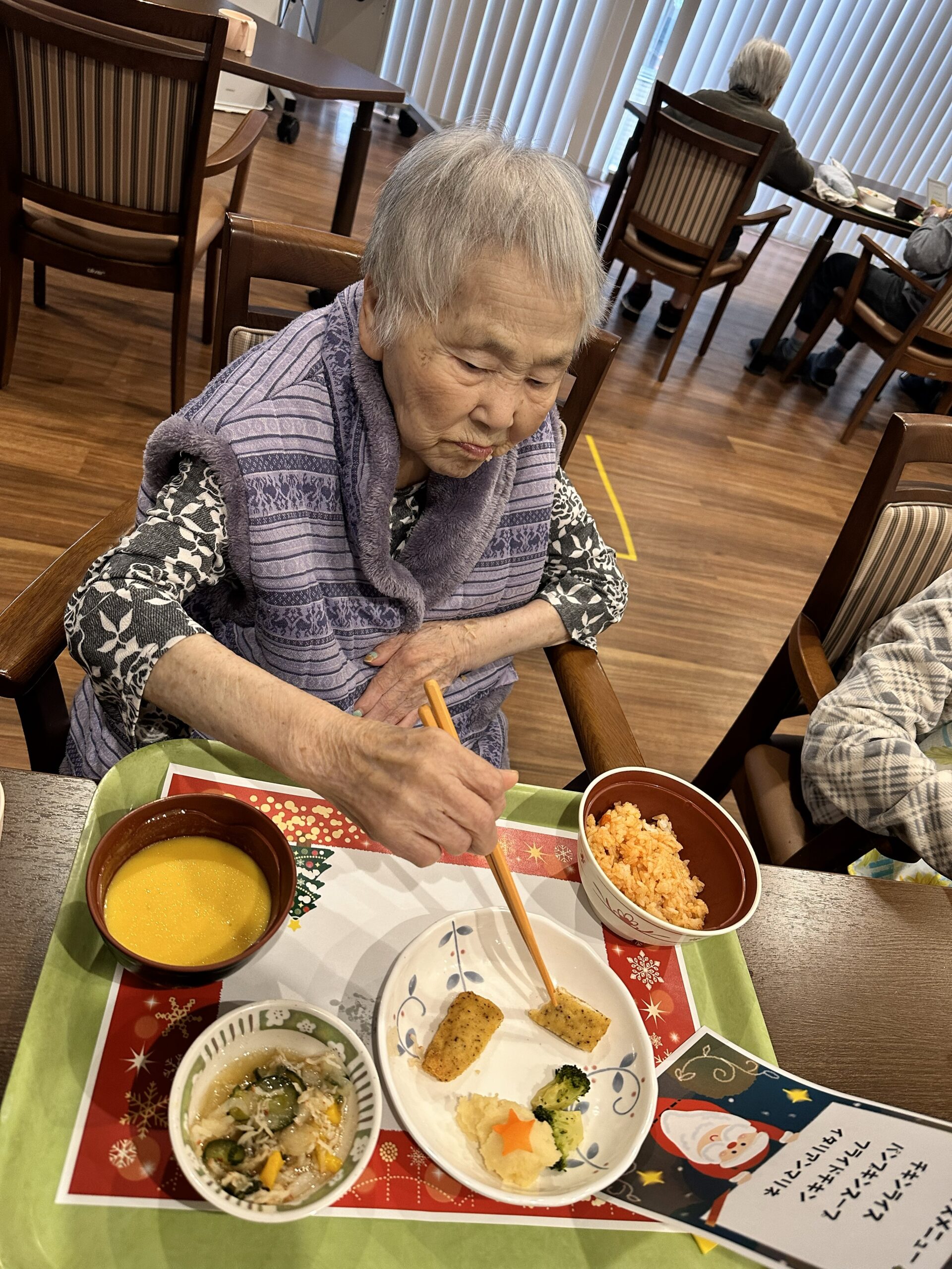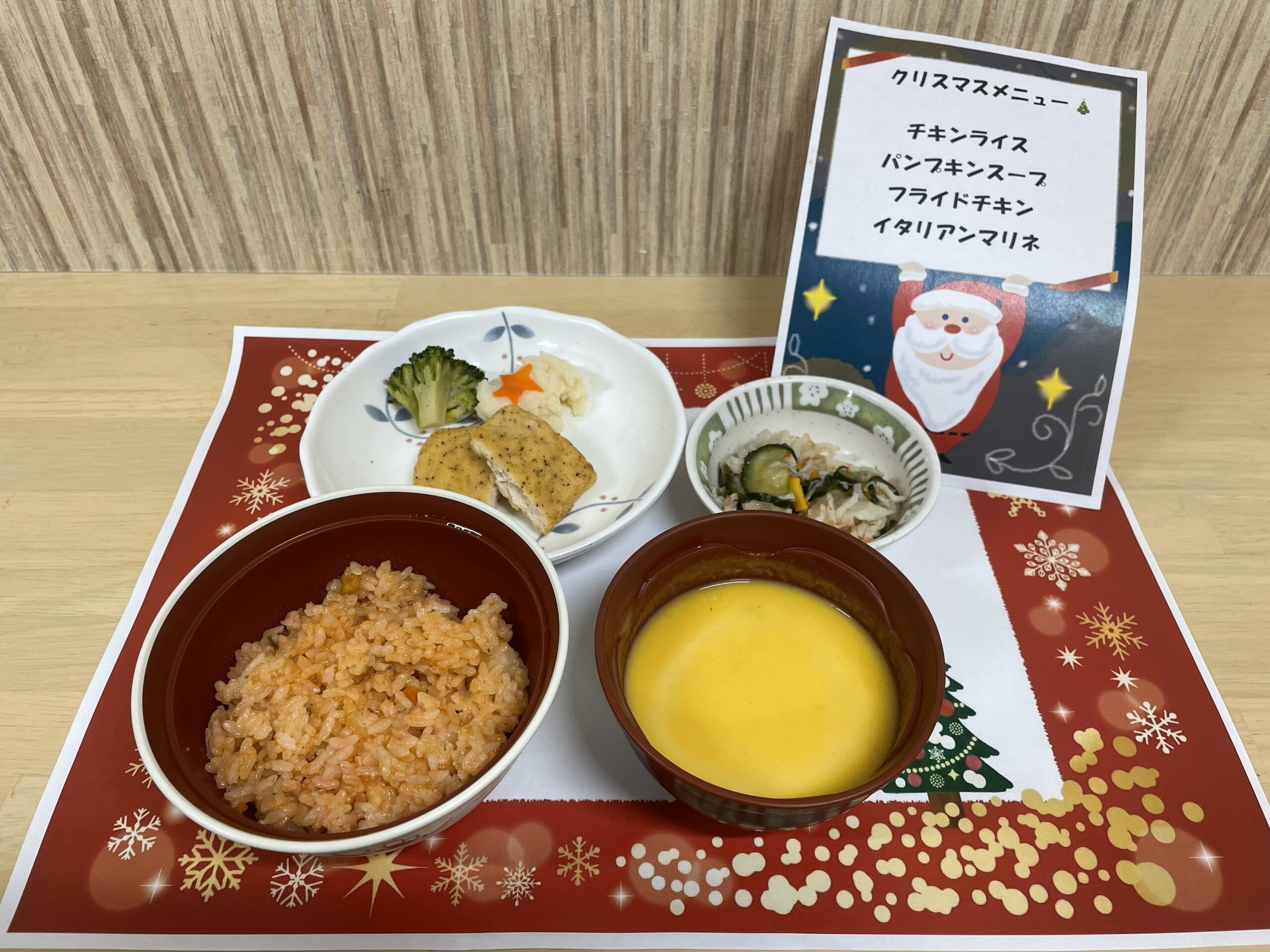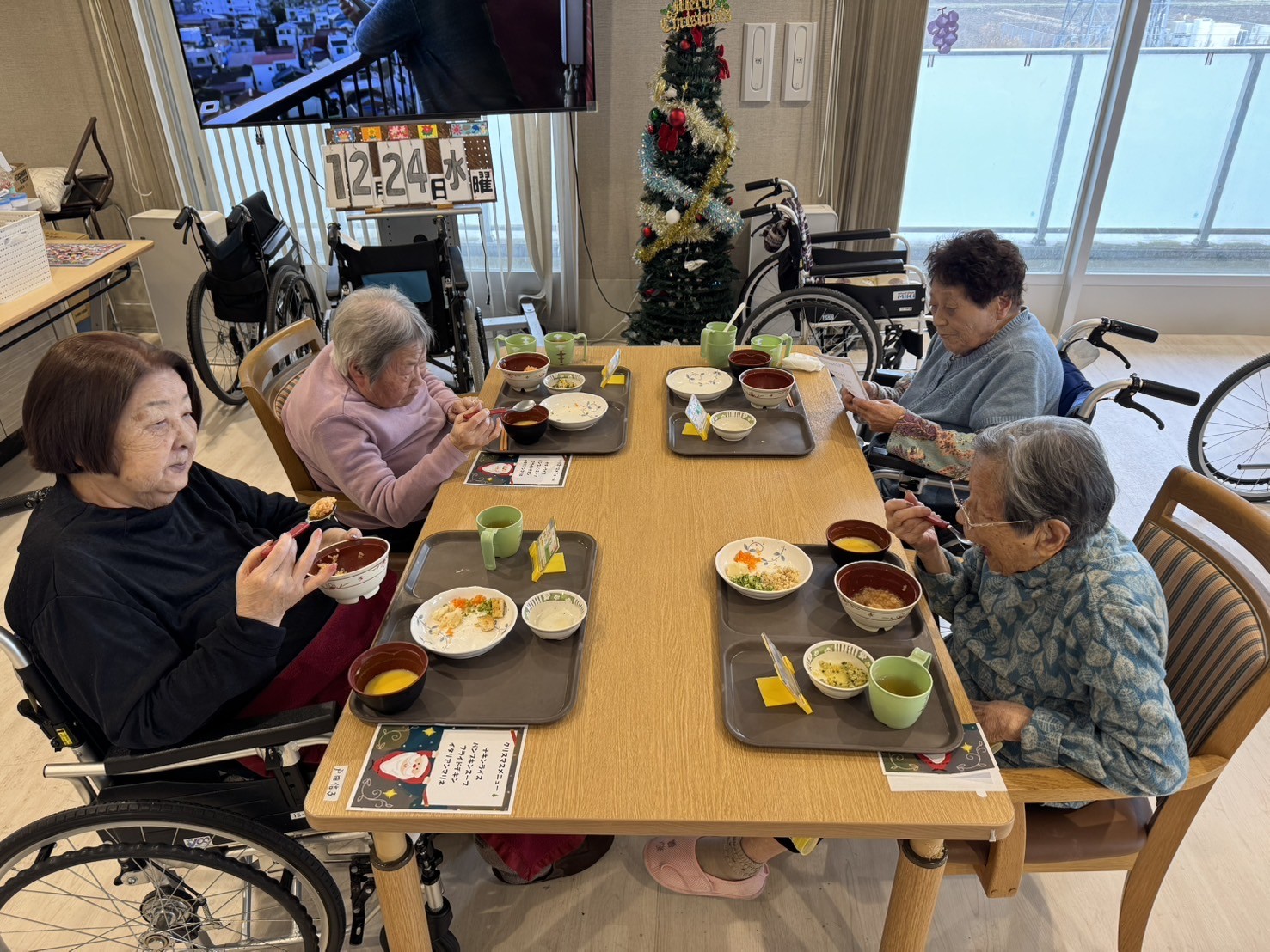 成島苑では、12月24日の昼食にクリスマスメニューを実施しました。