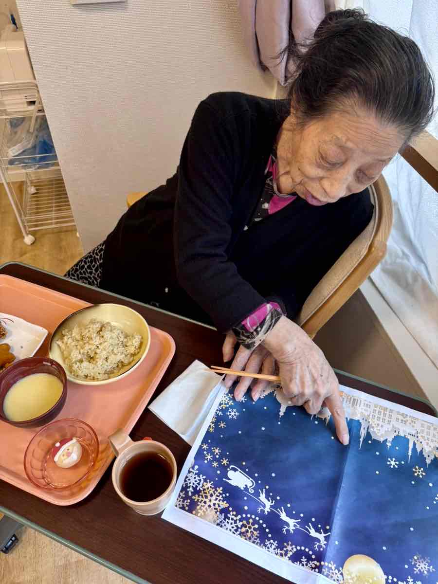 輝煌の郷では、クリスマスにあわせてランチと15時のおやつでイベント食を提供しました✨