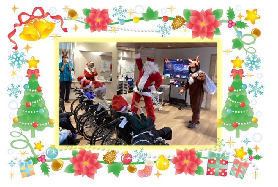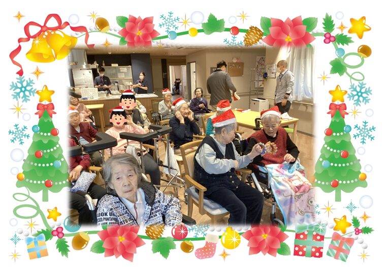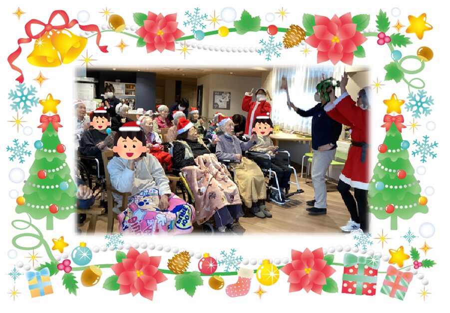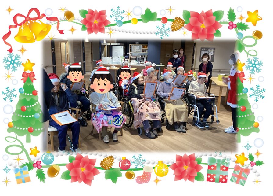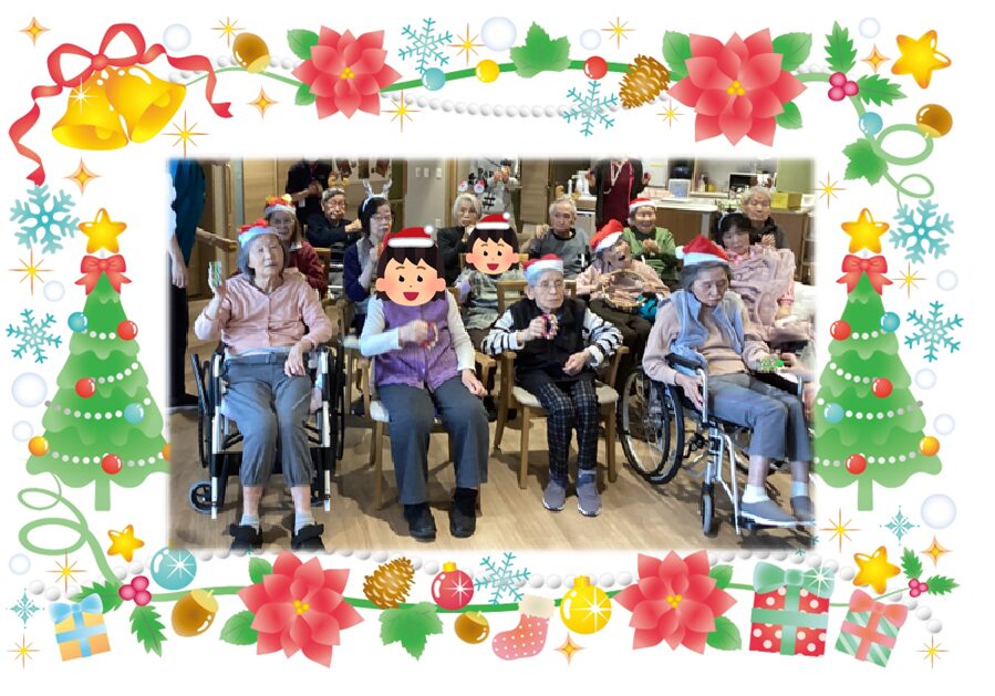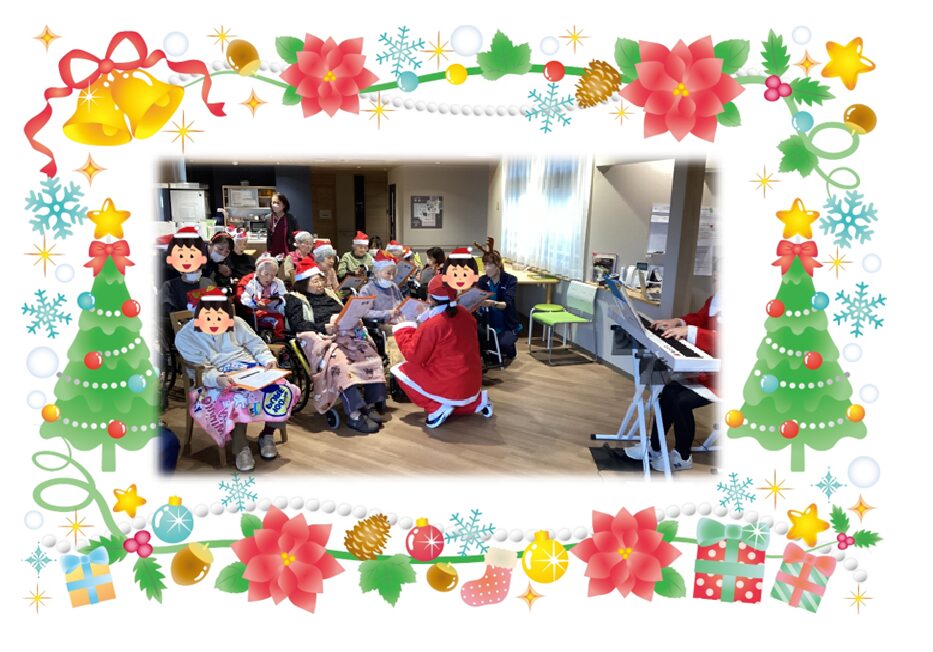 昨年はサンタさんとトナカイさんに各ユニットを回ってプレゼント配っていただきましたが、今年は去年と少し違い、2つのユニットごとに集まっていただき、計5回職員が楽器を持ちながら移動する形でクリスマス会を開催しました⭐