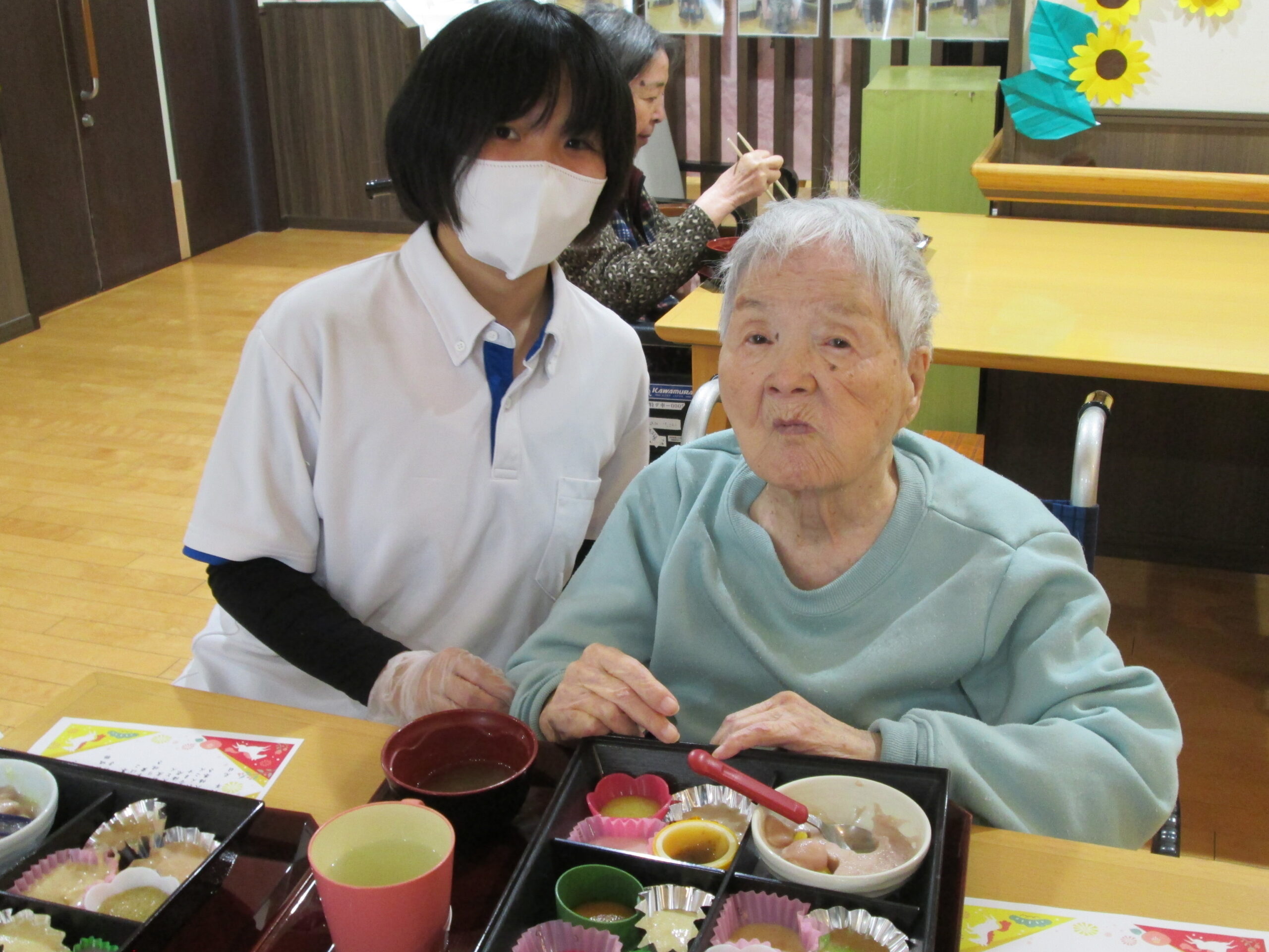 元旦から入居者様の沢山の笑顔を見る事が出来、改めて食事の大切さを感じました✨