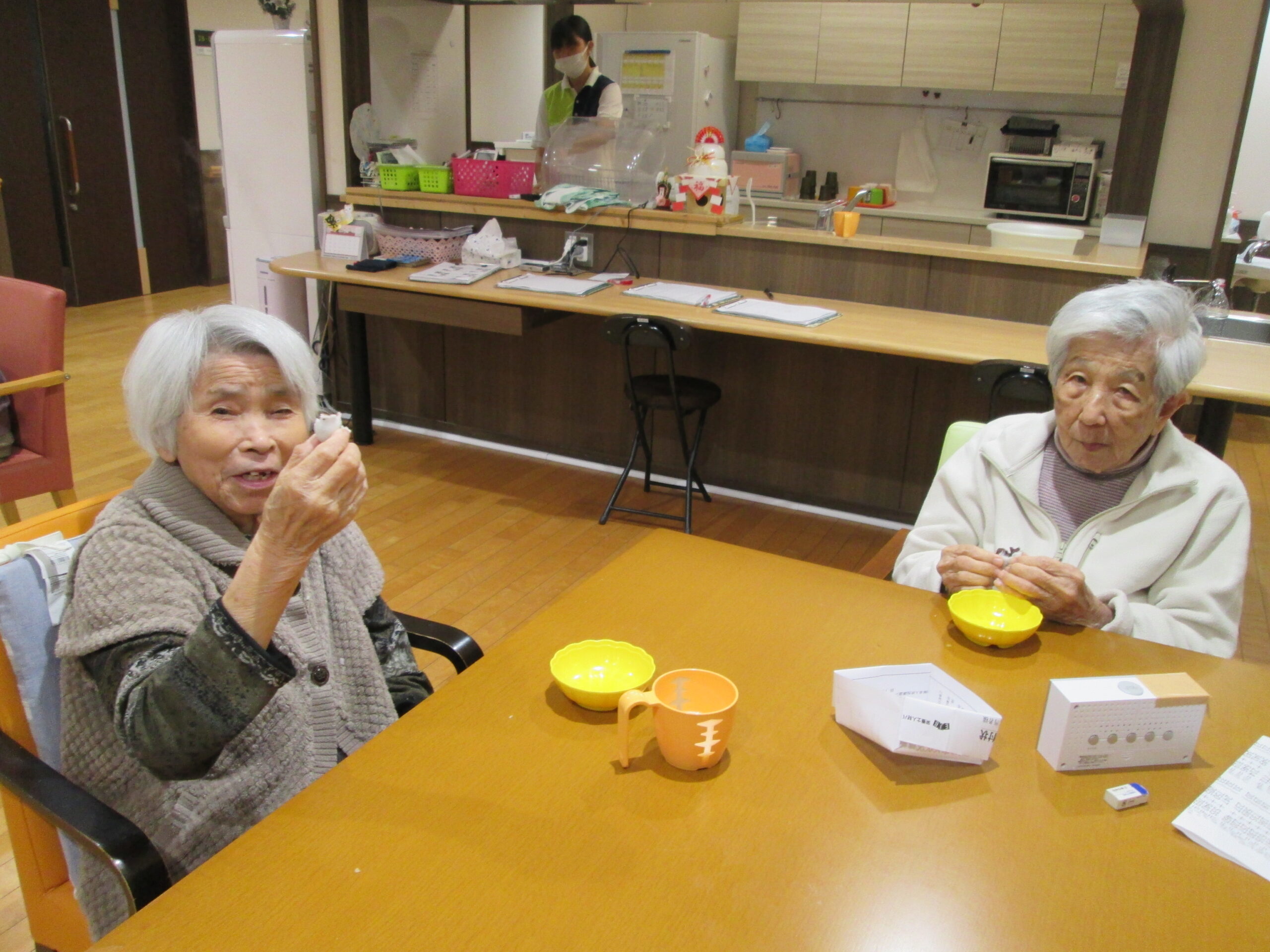 お節御膳はいつもの食事より量も多いですが、おやつは別腹の様でみなさんあっという間に食べられていました😊