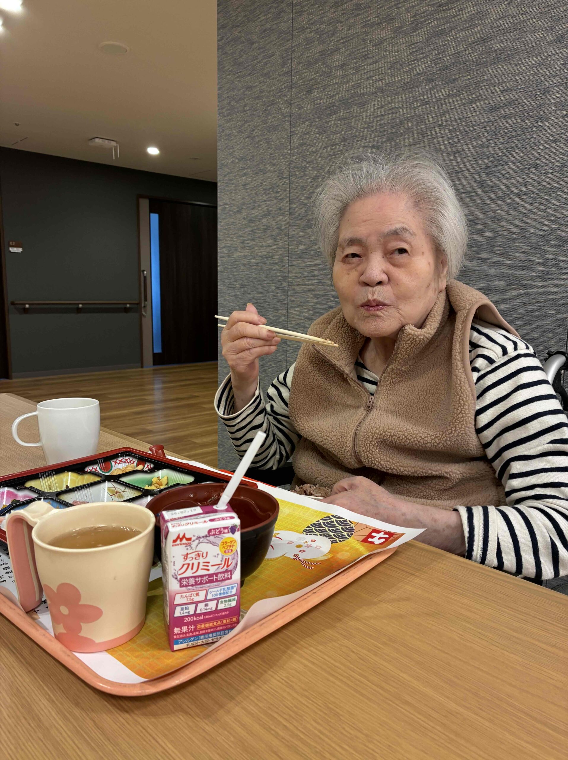 常食・刻み食の方には祝いの菓、ミキサー食の方には紅白ゼリーをご用意し
