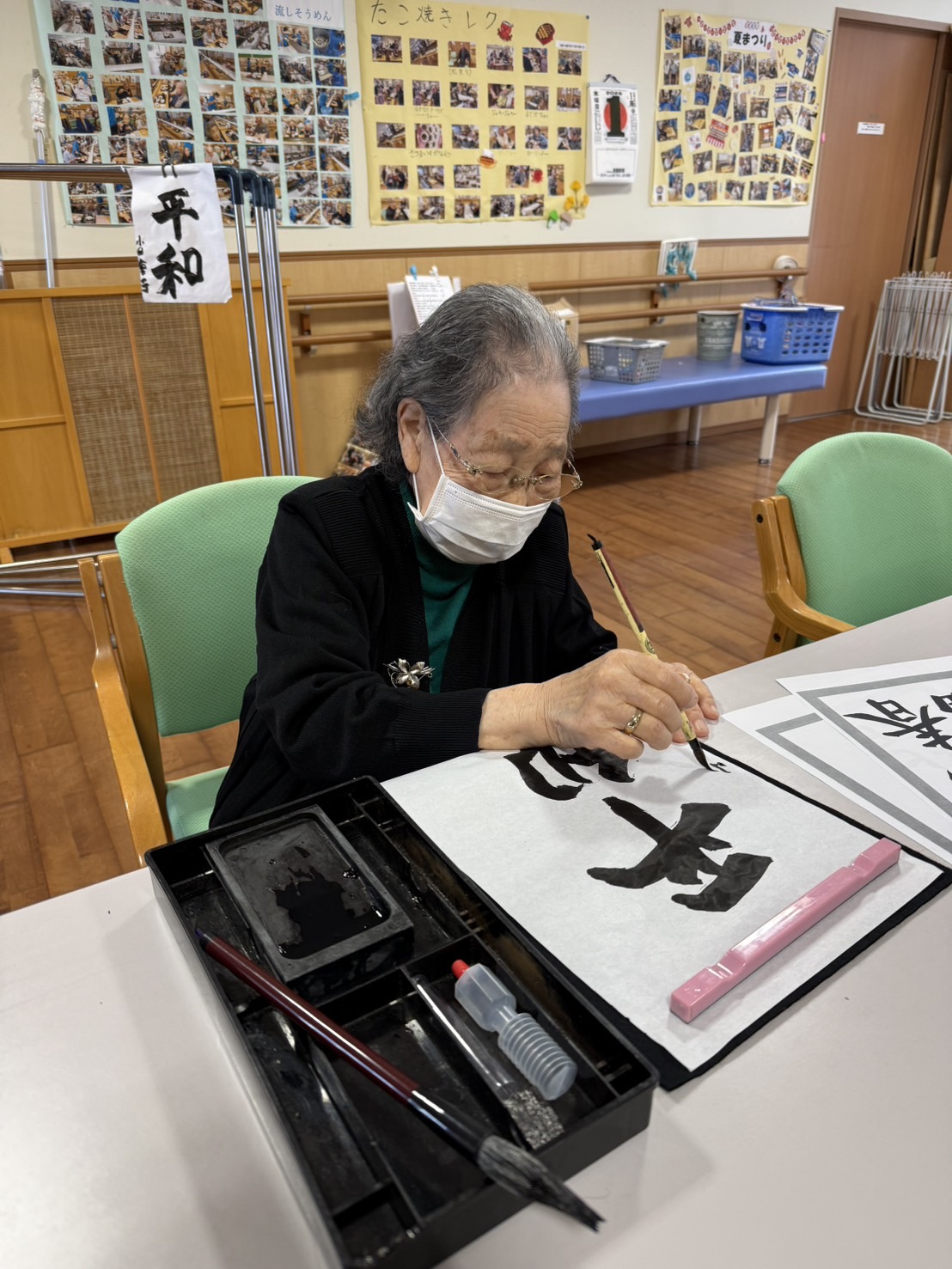 皆さん真剣に書初めをしておられました。