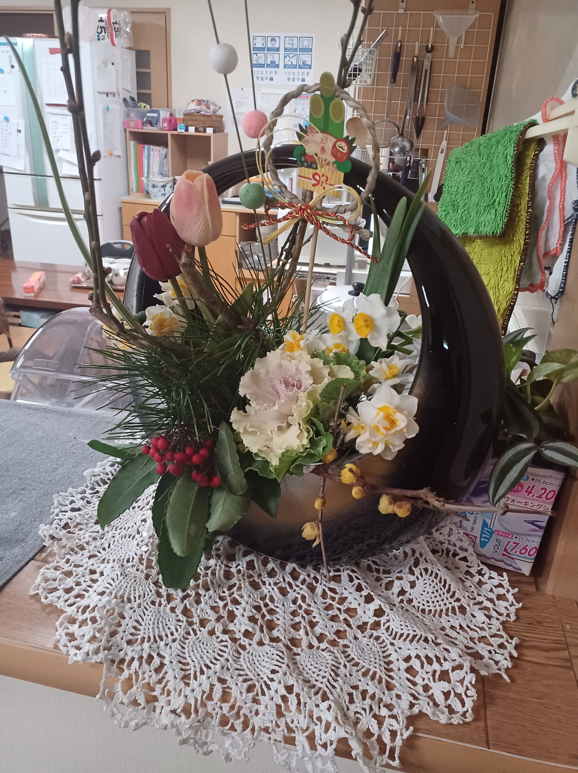 スタッフの方が玄関を、正月らしく飾り付けて下さいました。すごいですねーー(*^。^*)