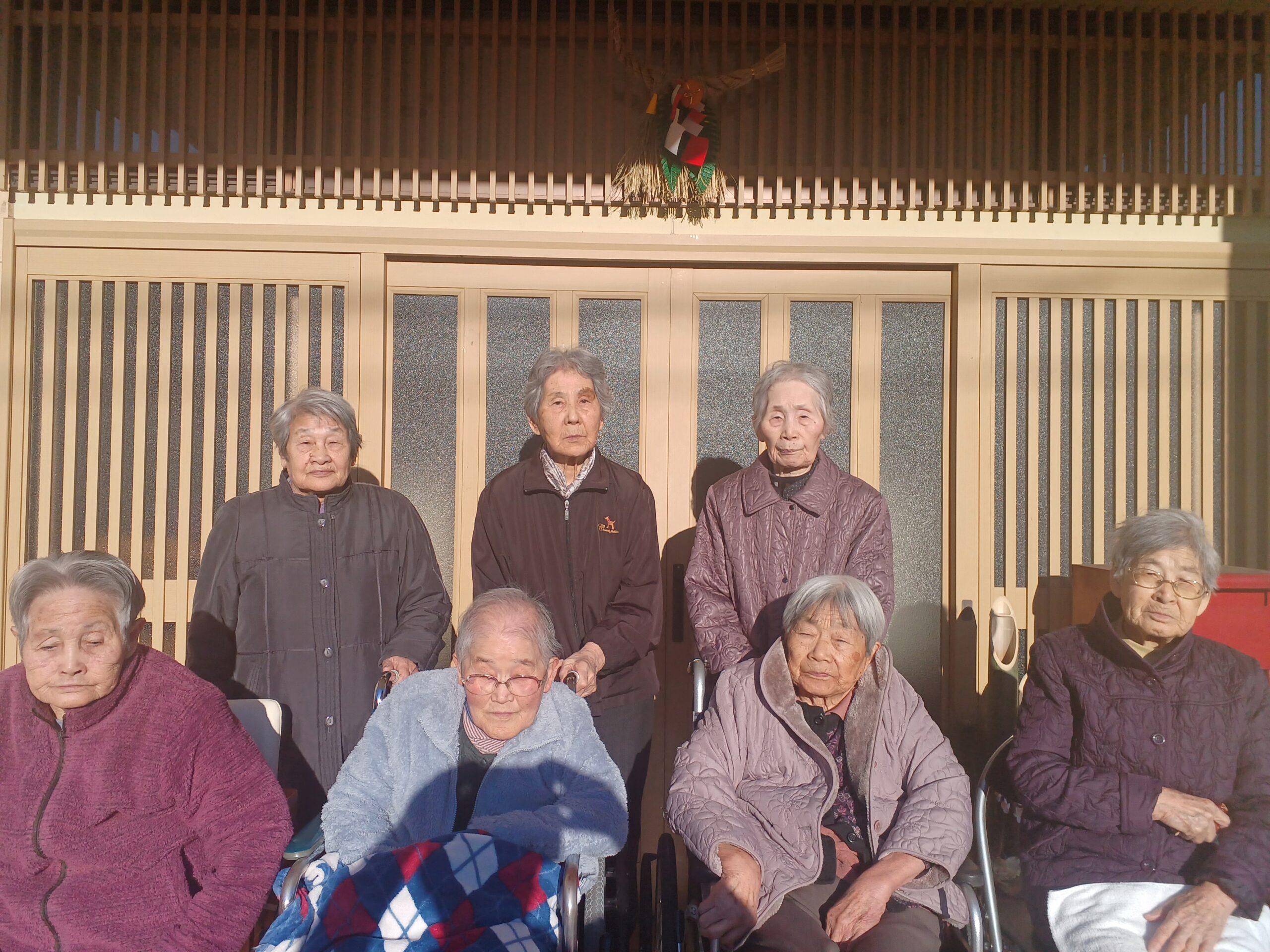 最後に玄関で、ご入居者様と記念撮影しました。まずは、風ユニット