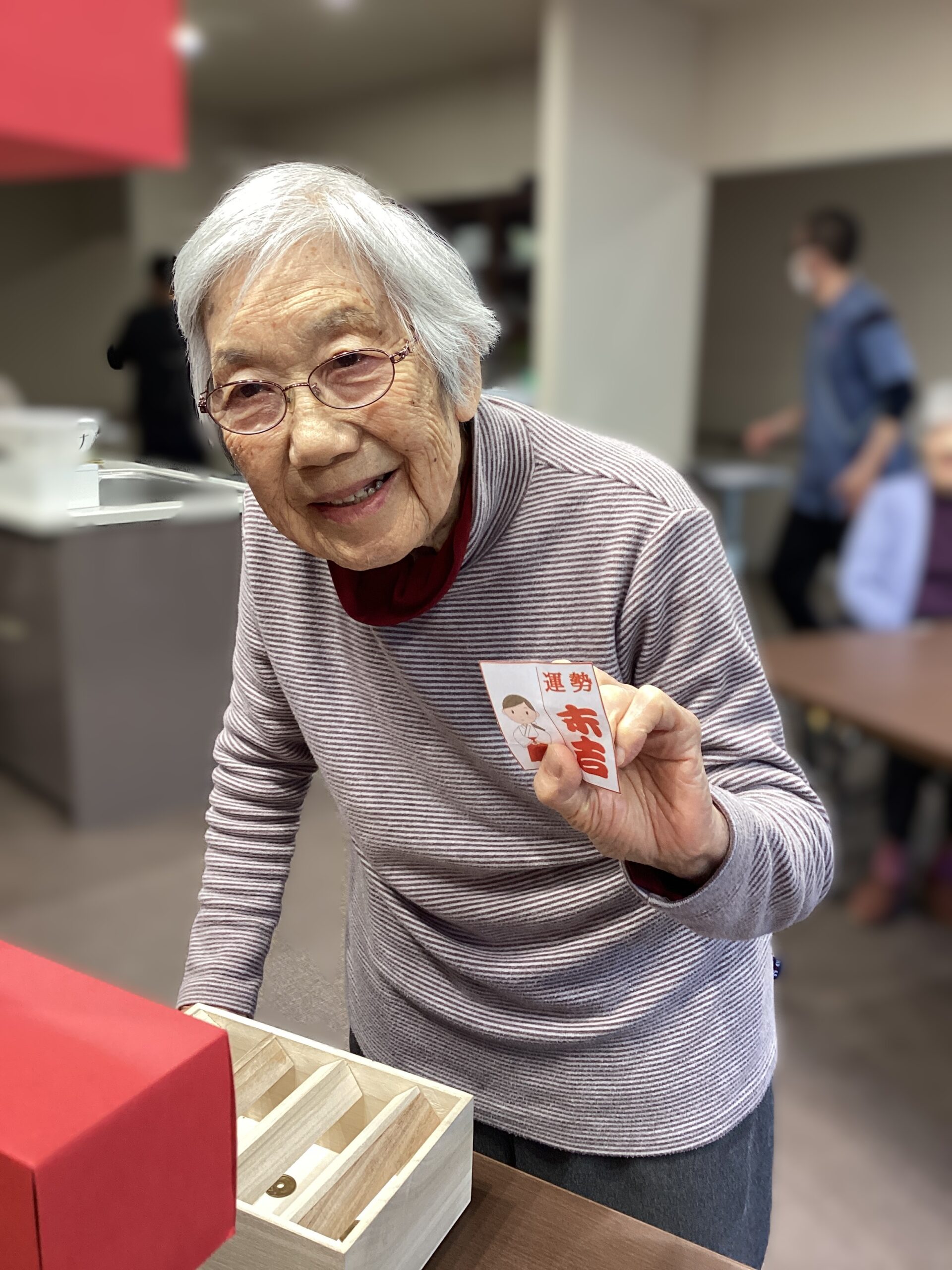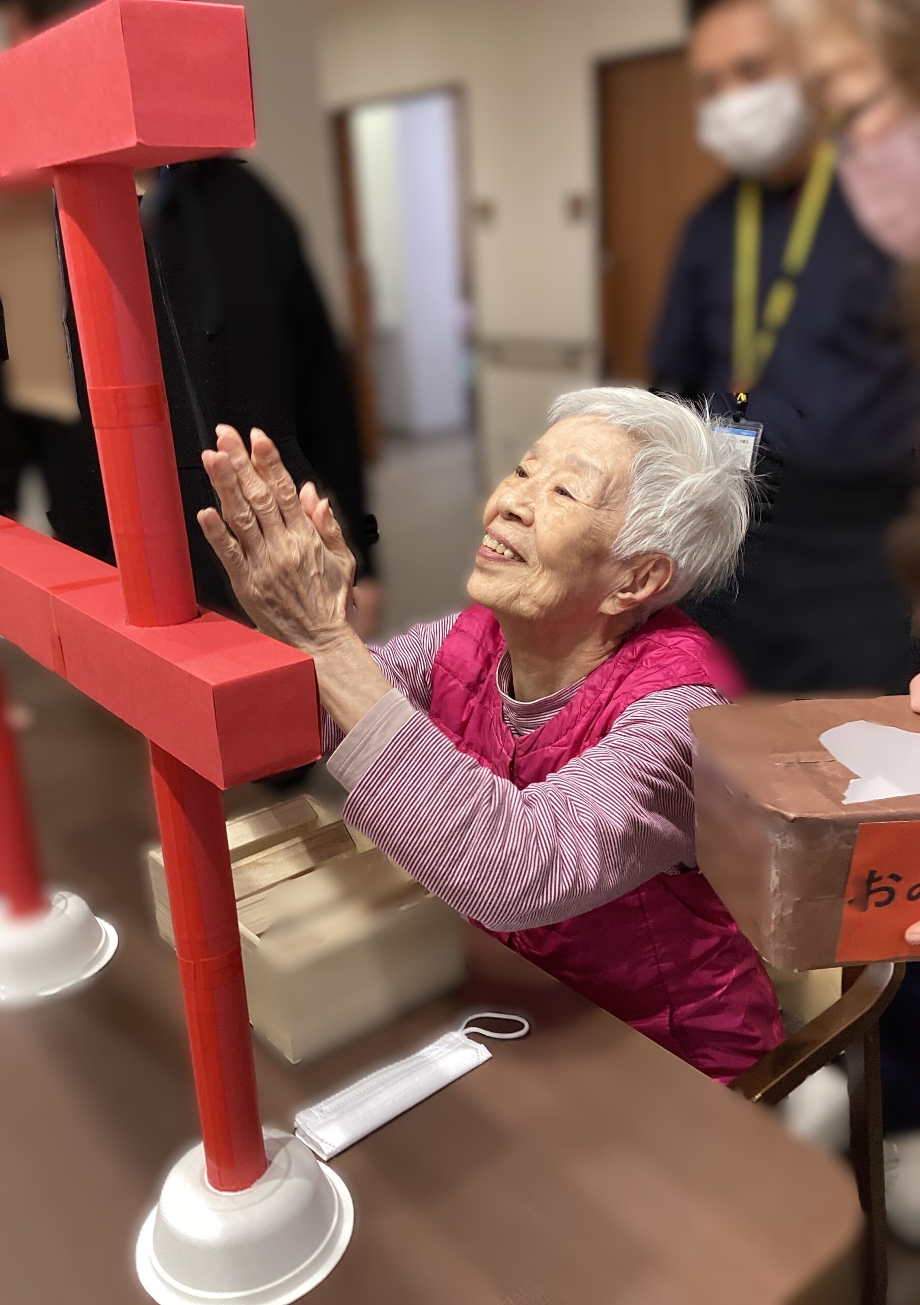 職員がユニットを回り、ご入居者様みなさんに参加していただきました。