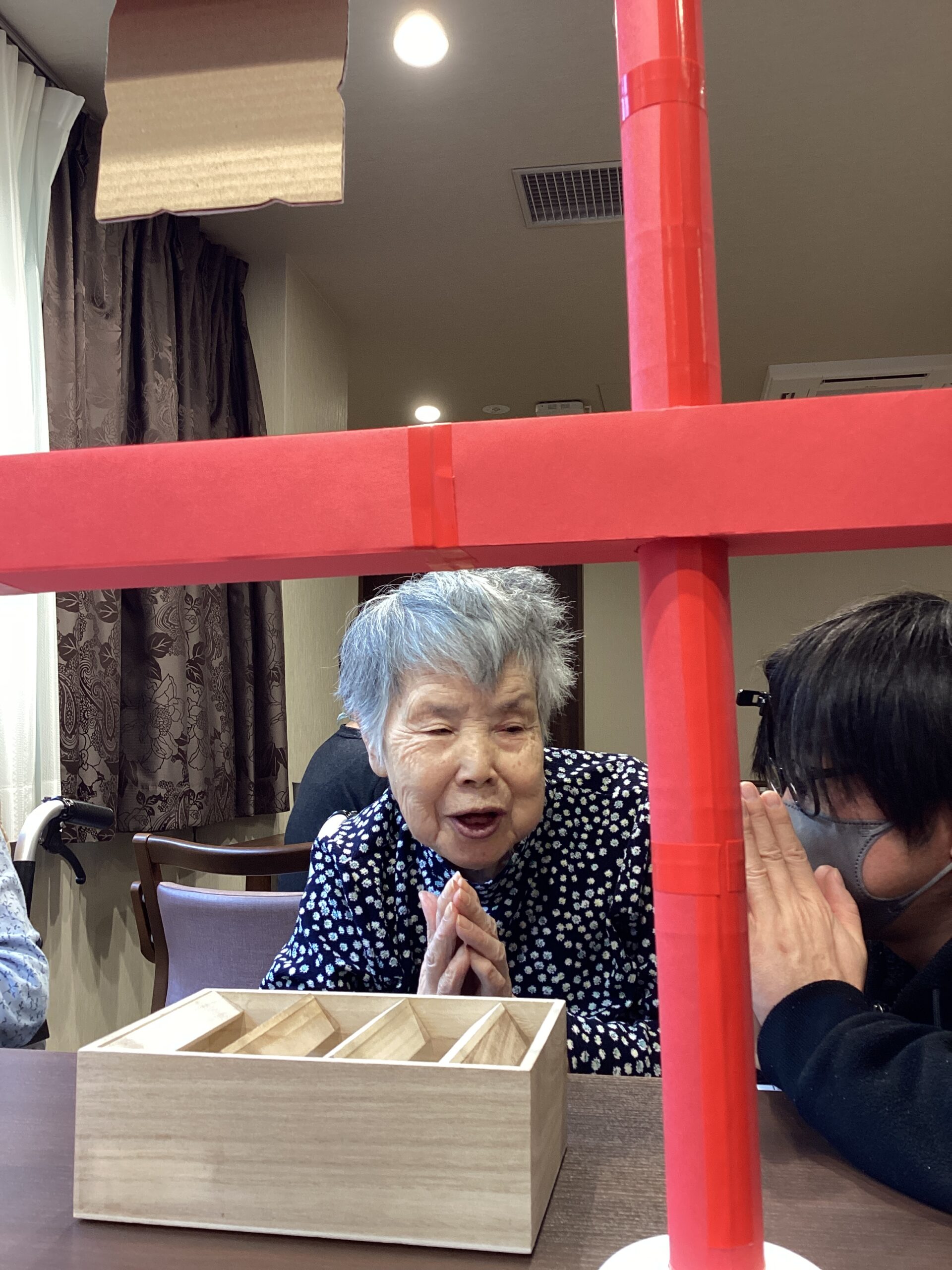 新年があけまして、光響荘では、手作り神社で初詣を行いました。