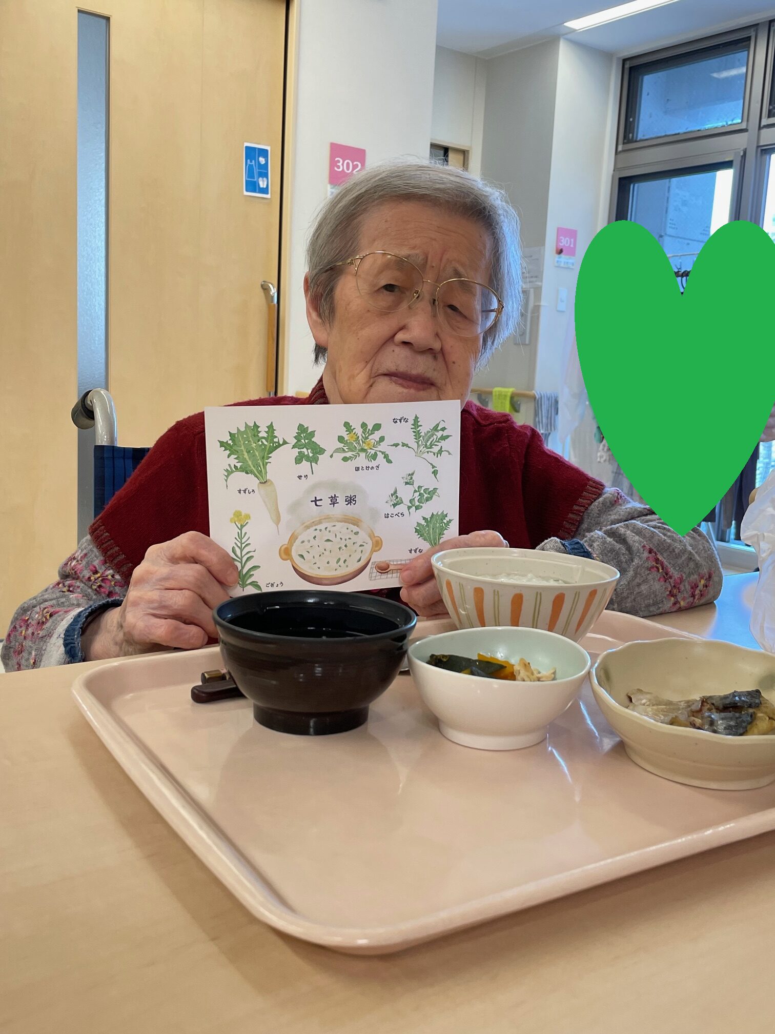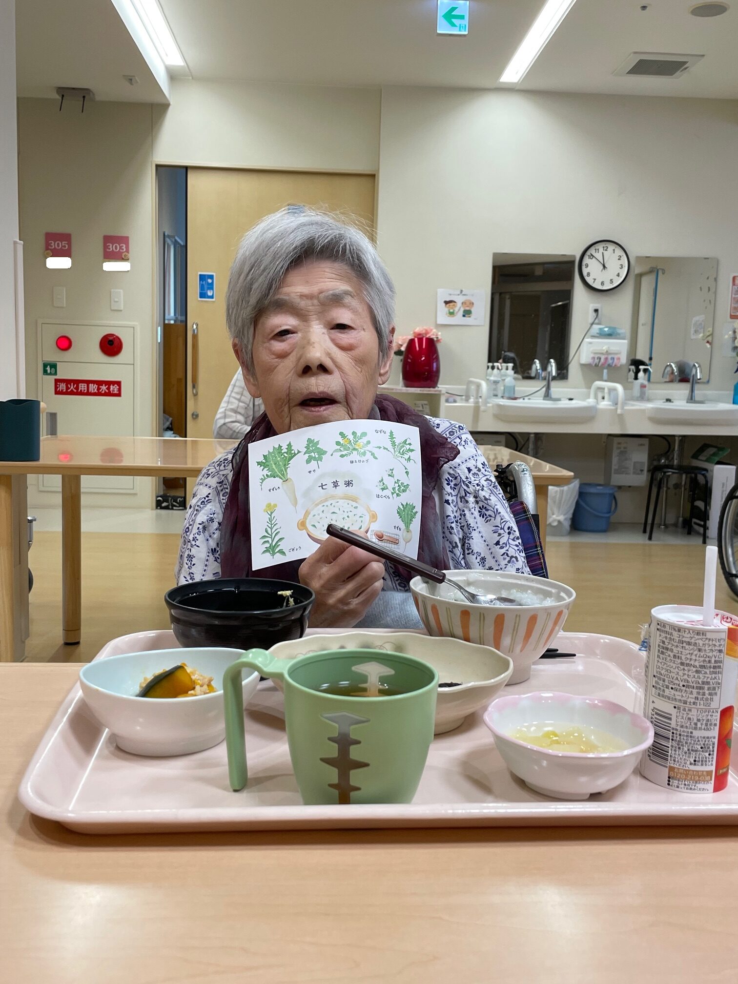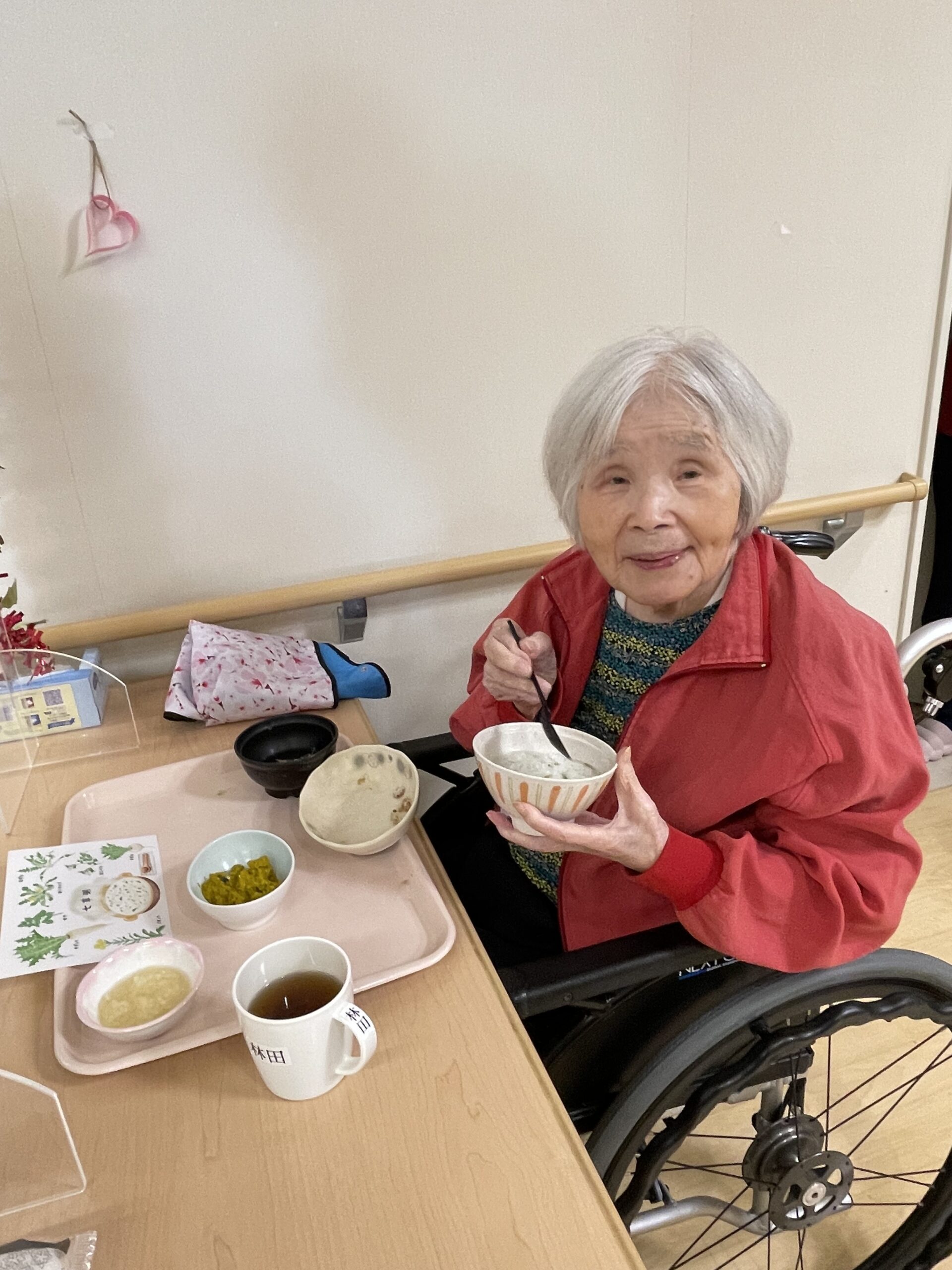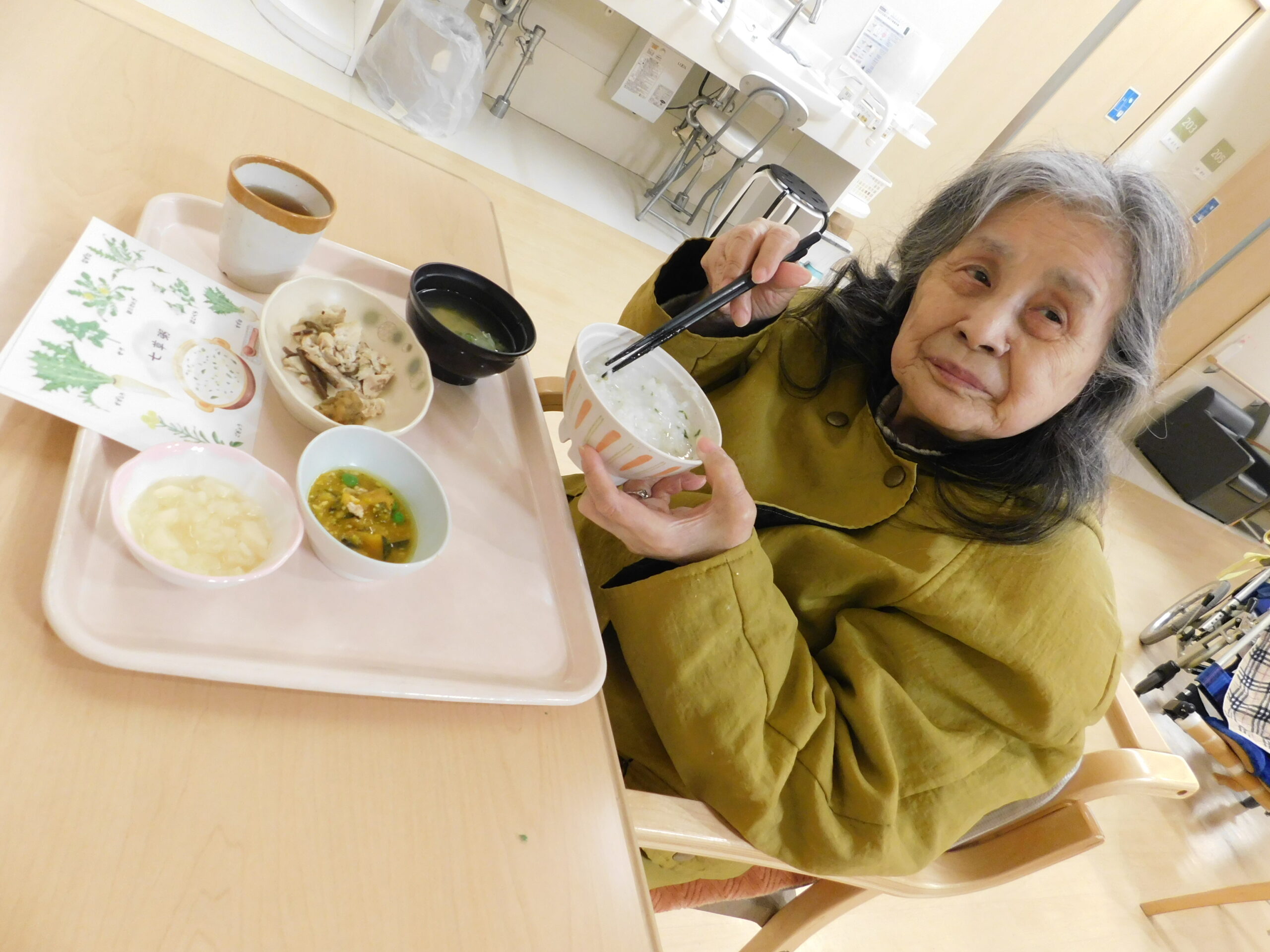 「美味しいですよ」と七草粥を持って見せてくださいました😊