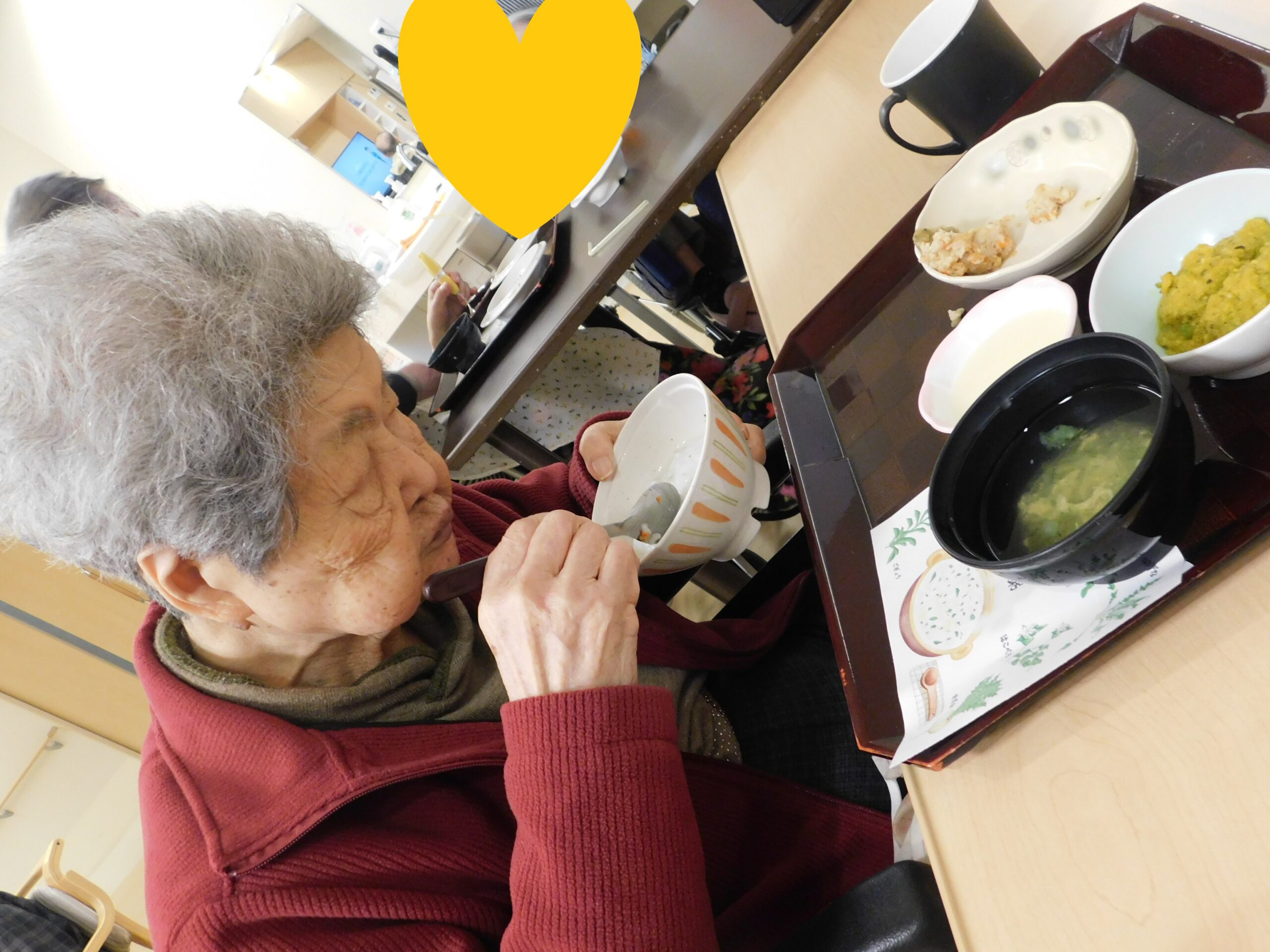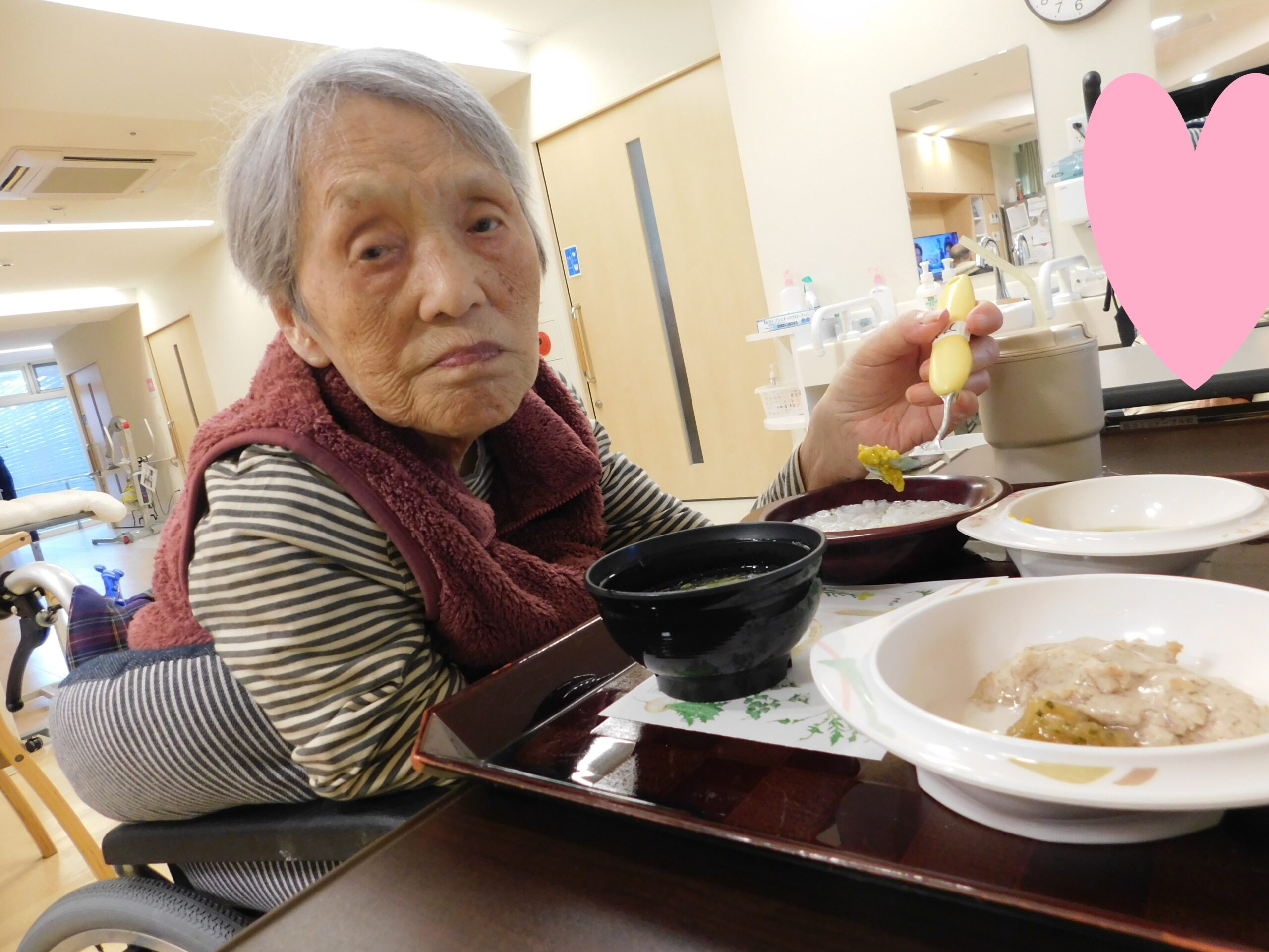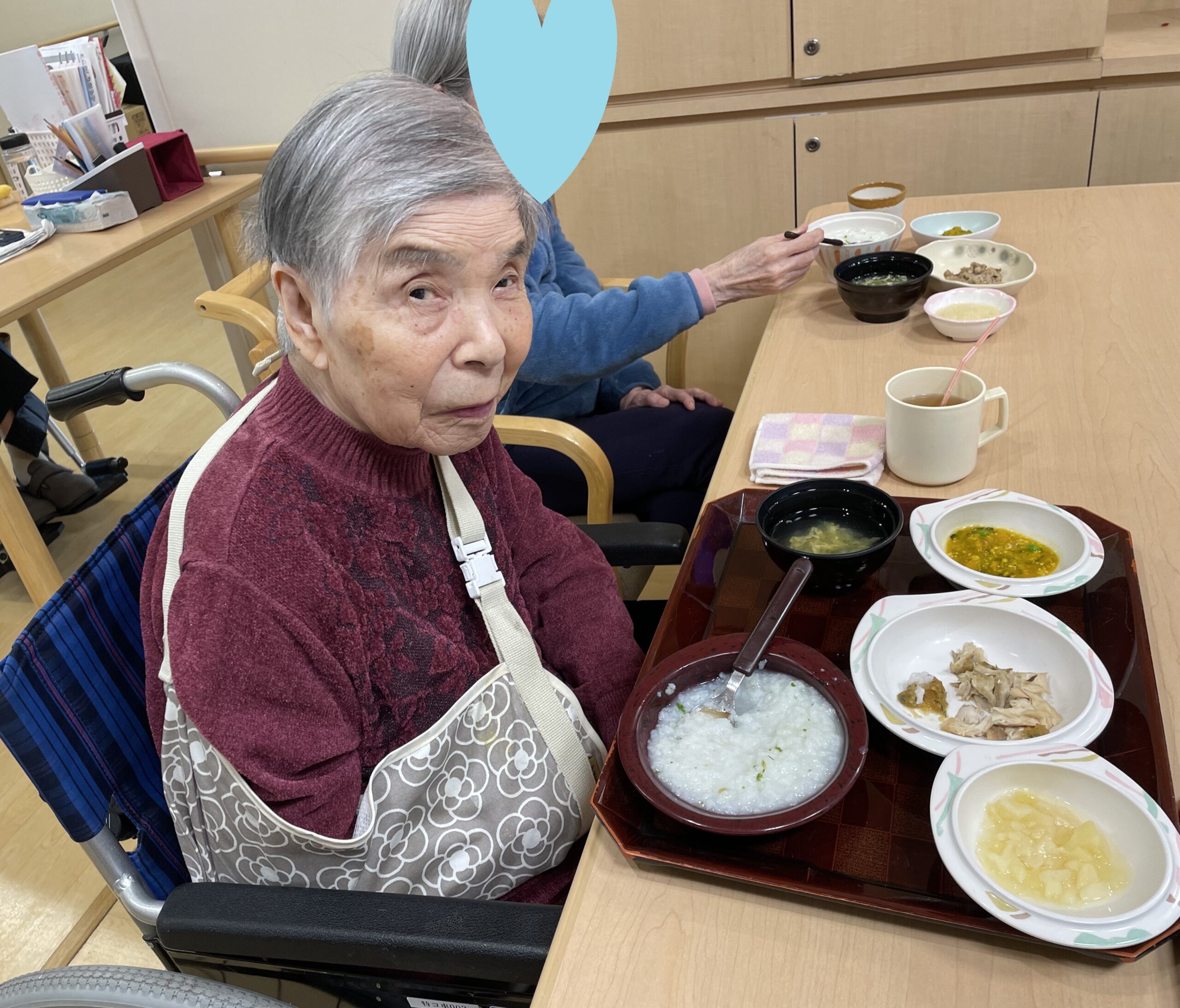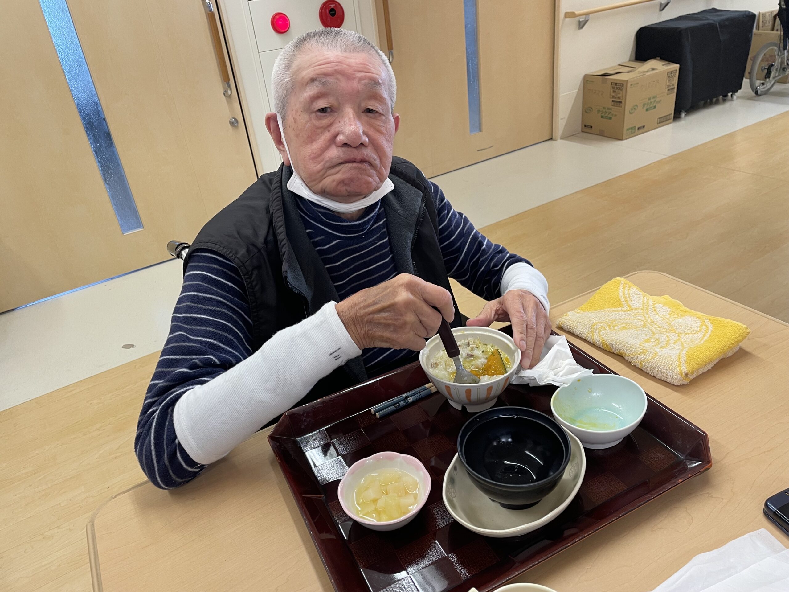 「美味しいですよ」と七草粥を持って見せてくださいました😊