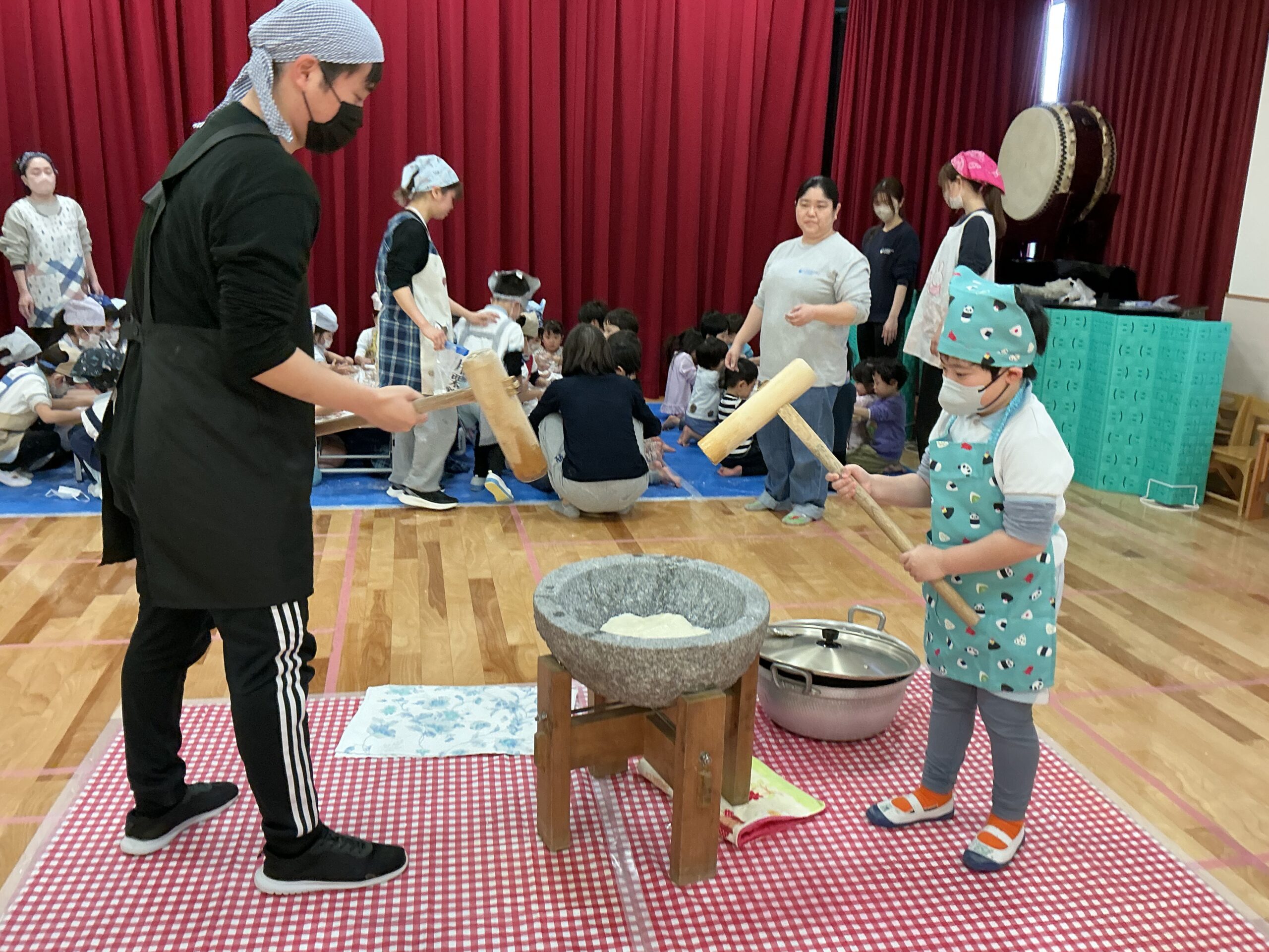 大きなお友達は、実際に、自分たちでお餅つき😊