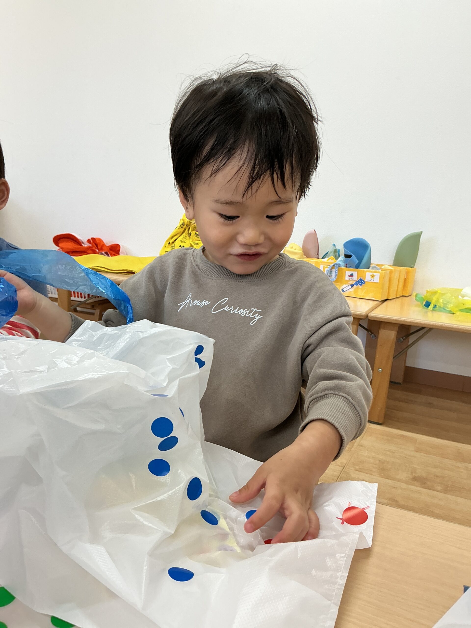 お正月の余韻も残る中、1歳児かぜ組さんのお友達は