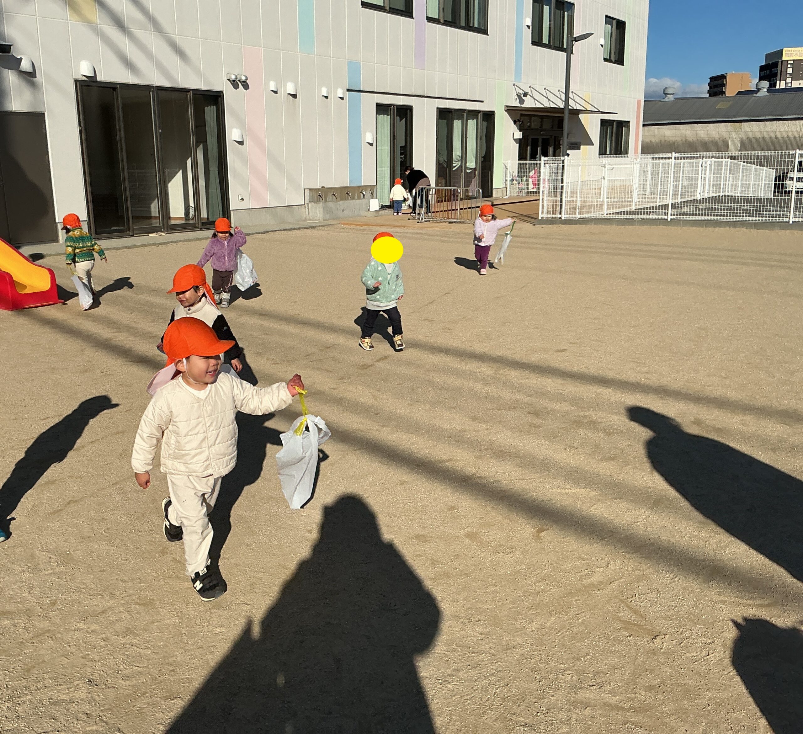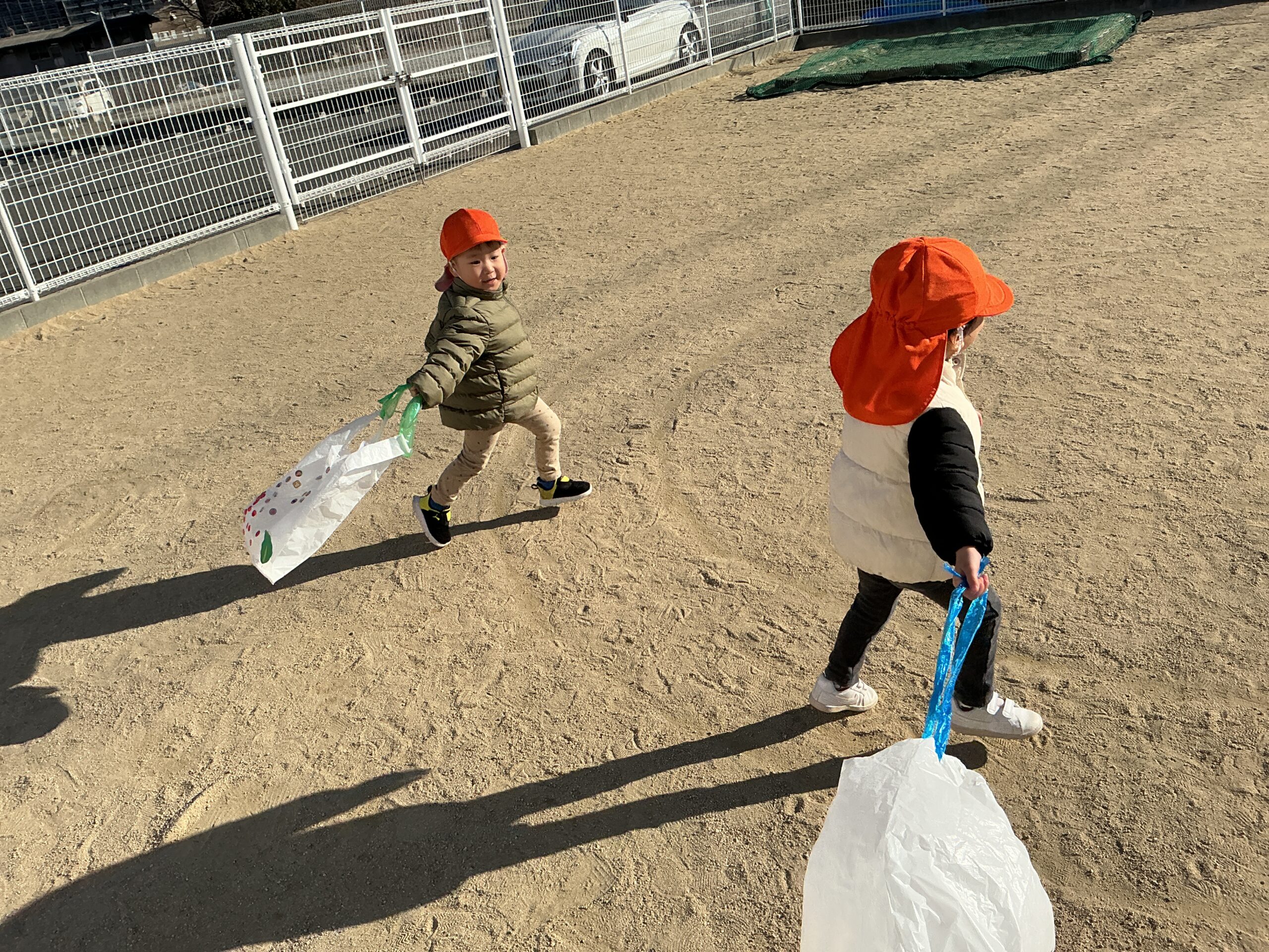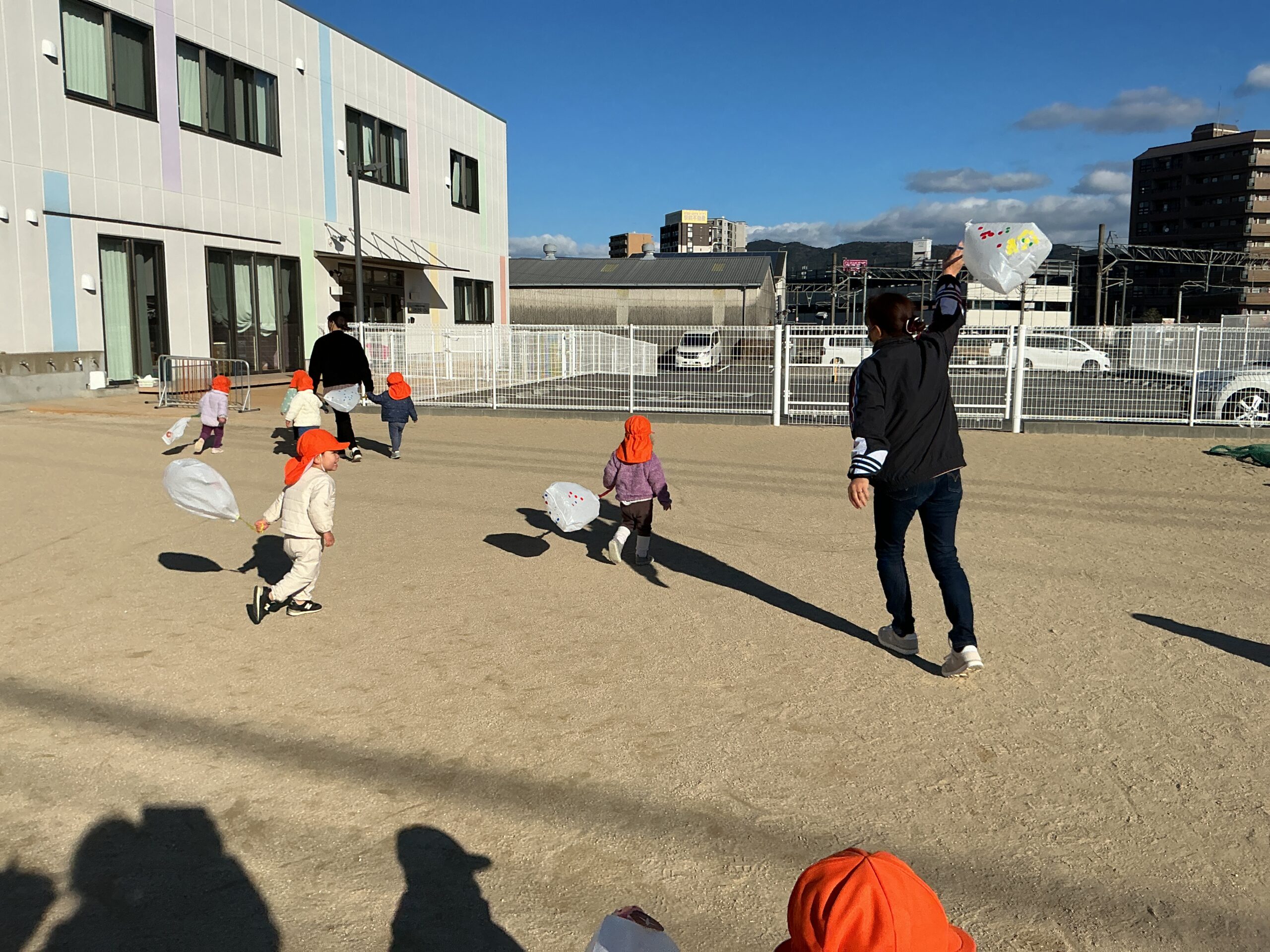 みんなで凧あげしにいこう!!と、いざ園庭へ。