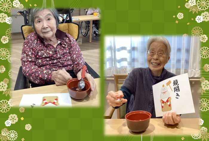 神戸彩光園でも1月15日、朝顔・松風ユニットの皆さんと1年の無病息災を願い鏡開きを実施しました☺️
