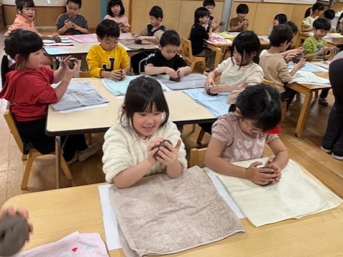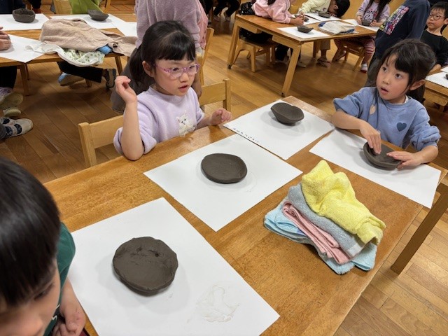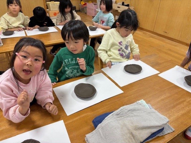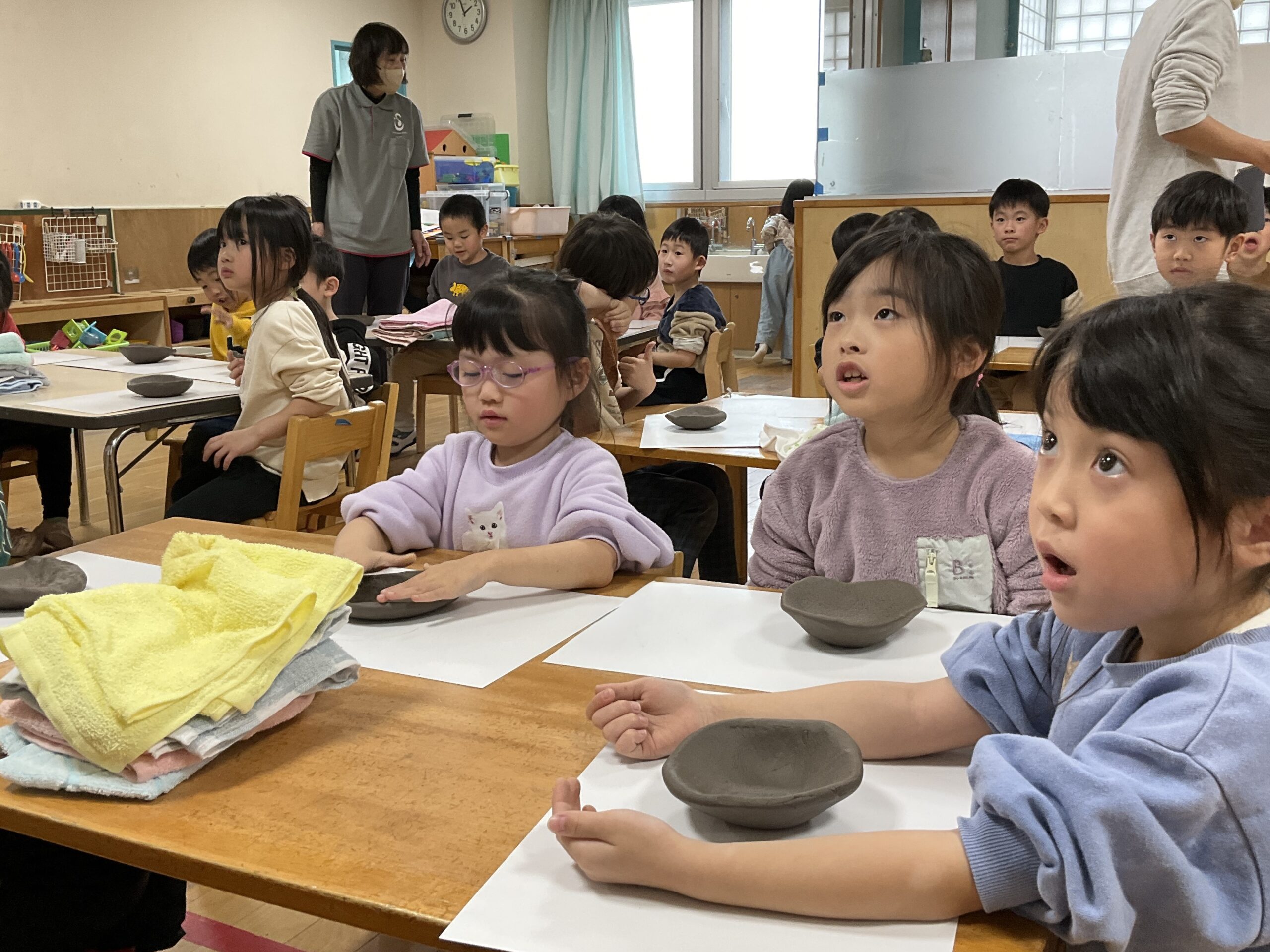 年長児対象で、毎年恒例となっている卒園記念製作の陶芸教室を