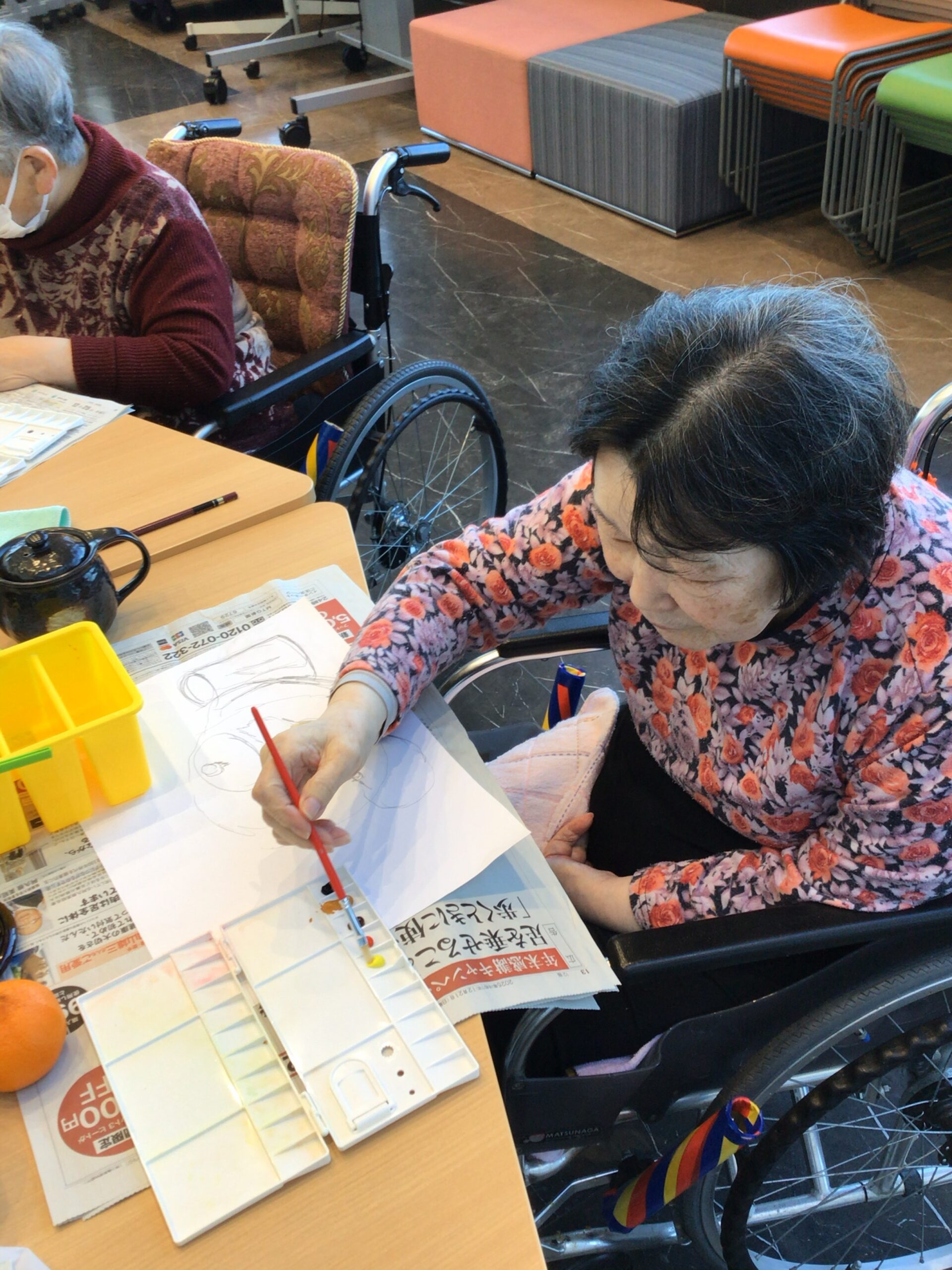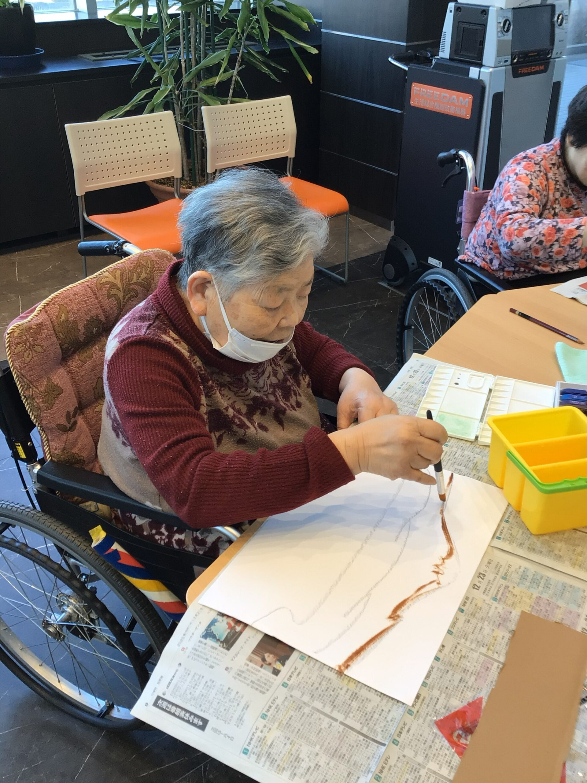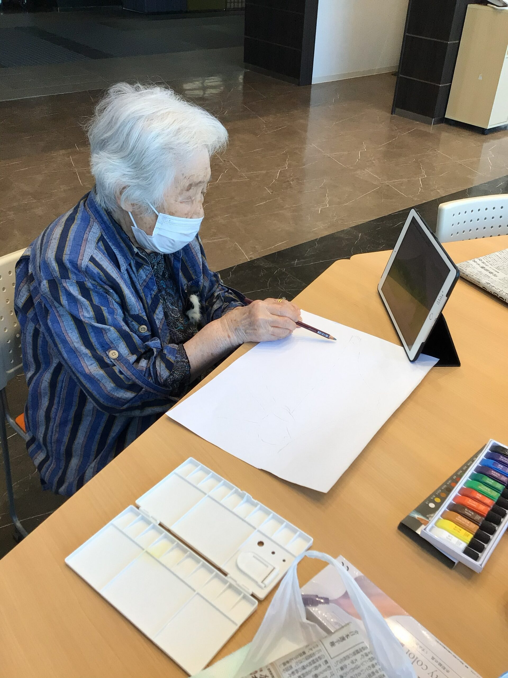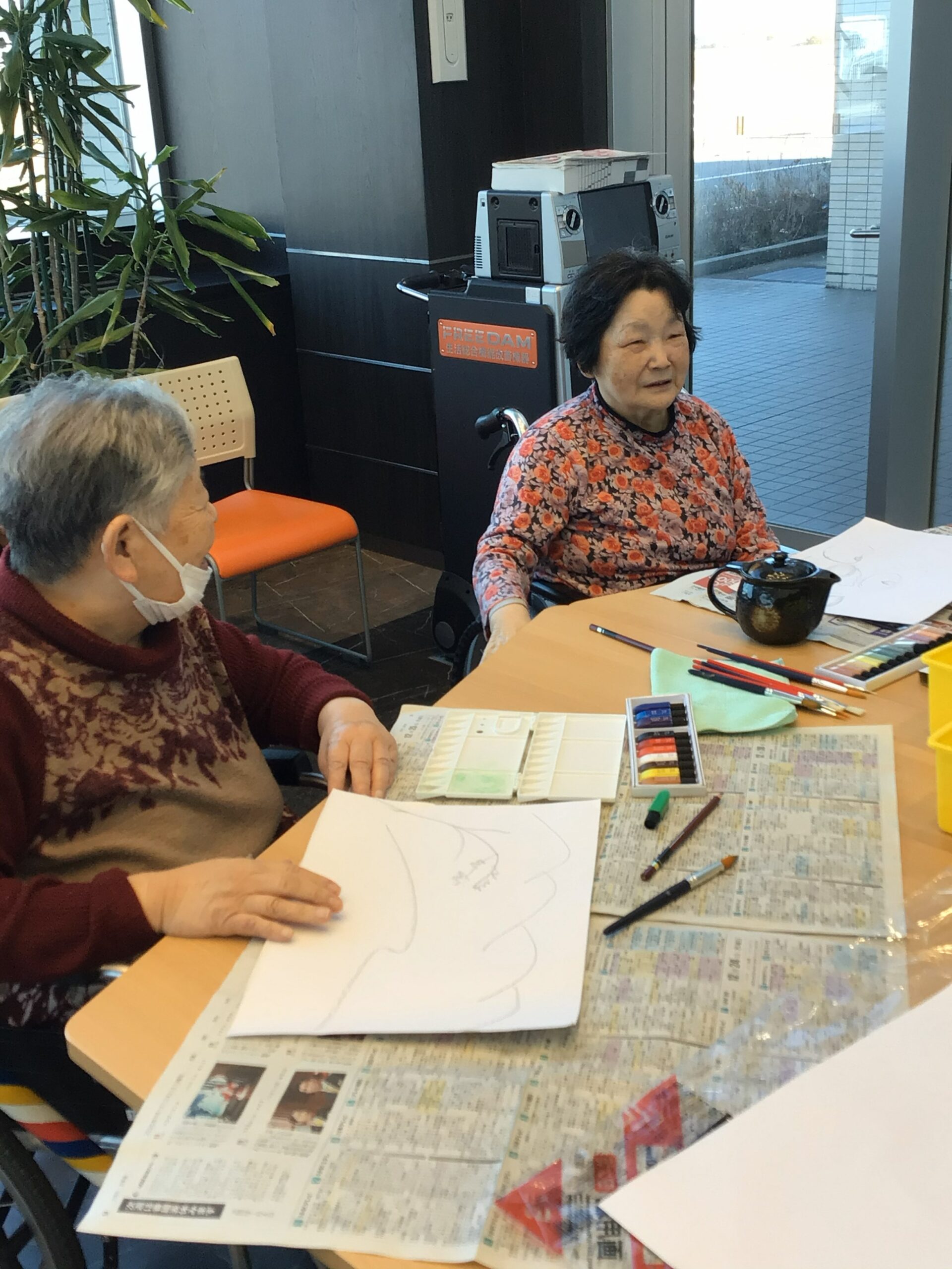 事前に必ず利用者様と話し合って描く絵を決め、利用者様のペースに合わせて談笑しながら楽しく参加して頂けるようにしています。