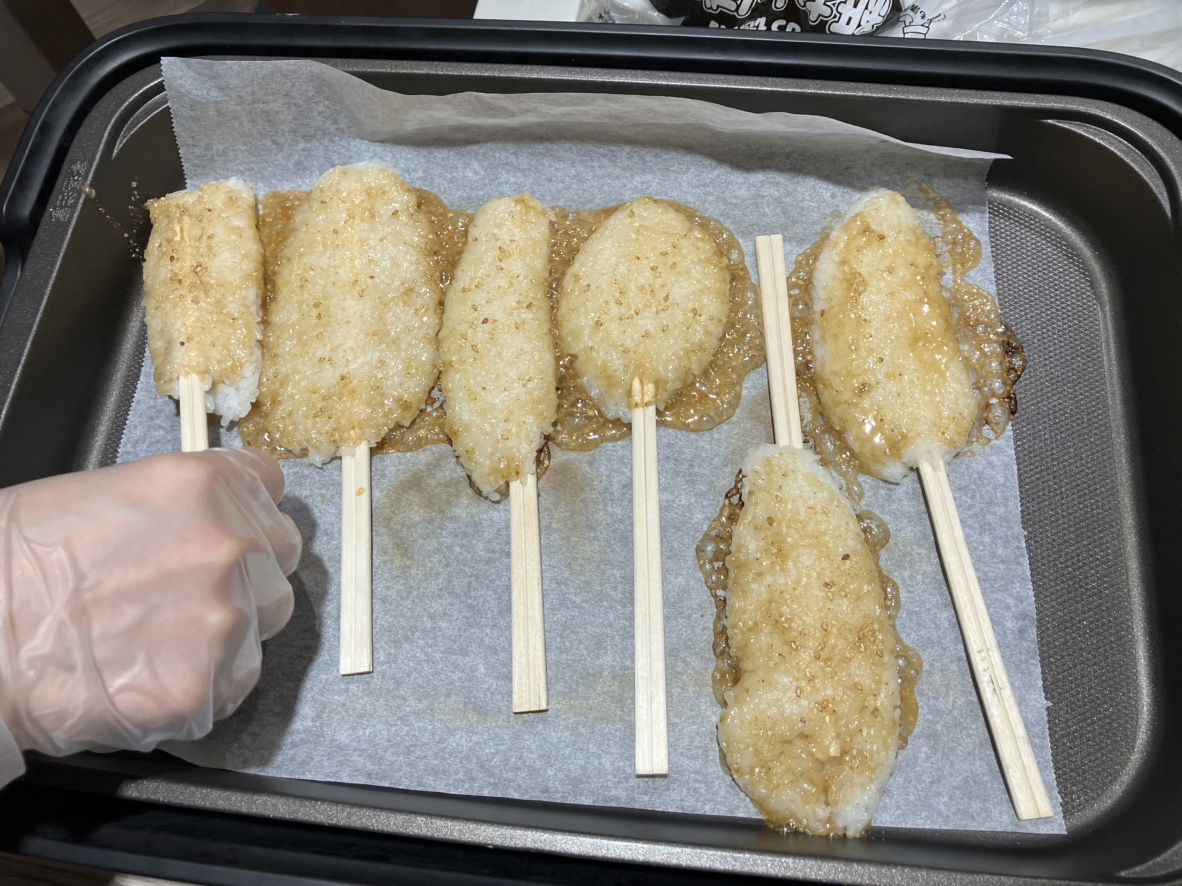 ホットプレートで焼いて、味噌をぬりさらに焼くと‥‥
