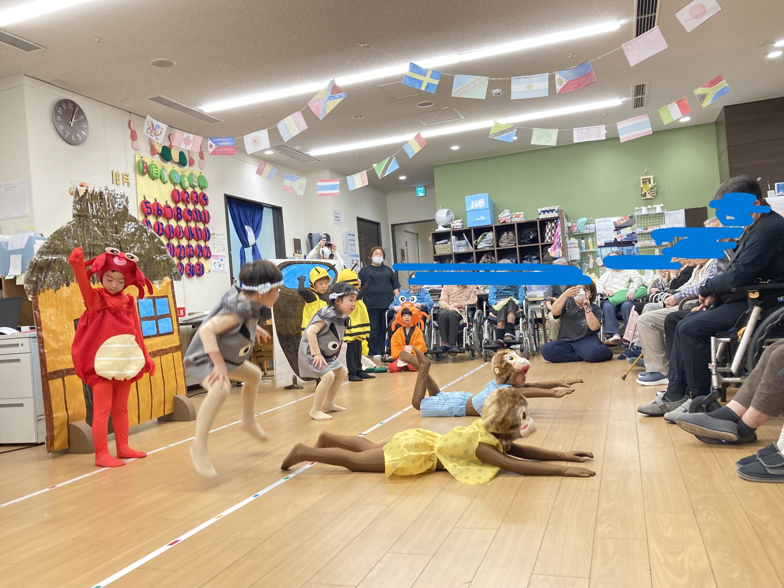 生活発表会で、披露した遊戯と劇、合奏を利用者の方々に見て頂きました!!