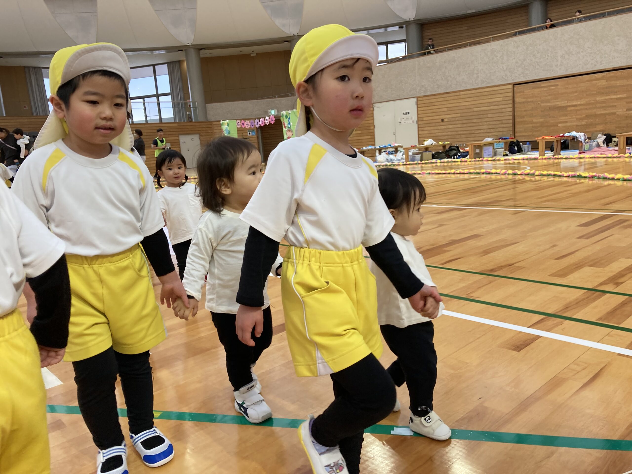 1歳児さんも、足をしっかりあげて上手に行進です✨