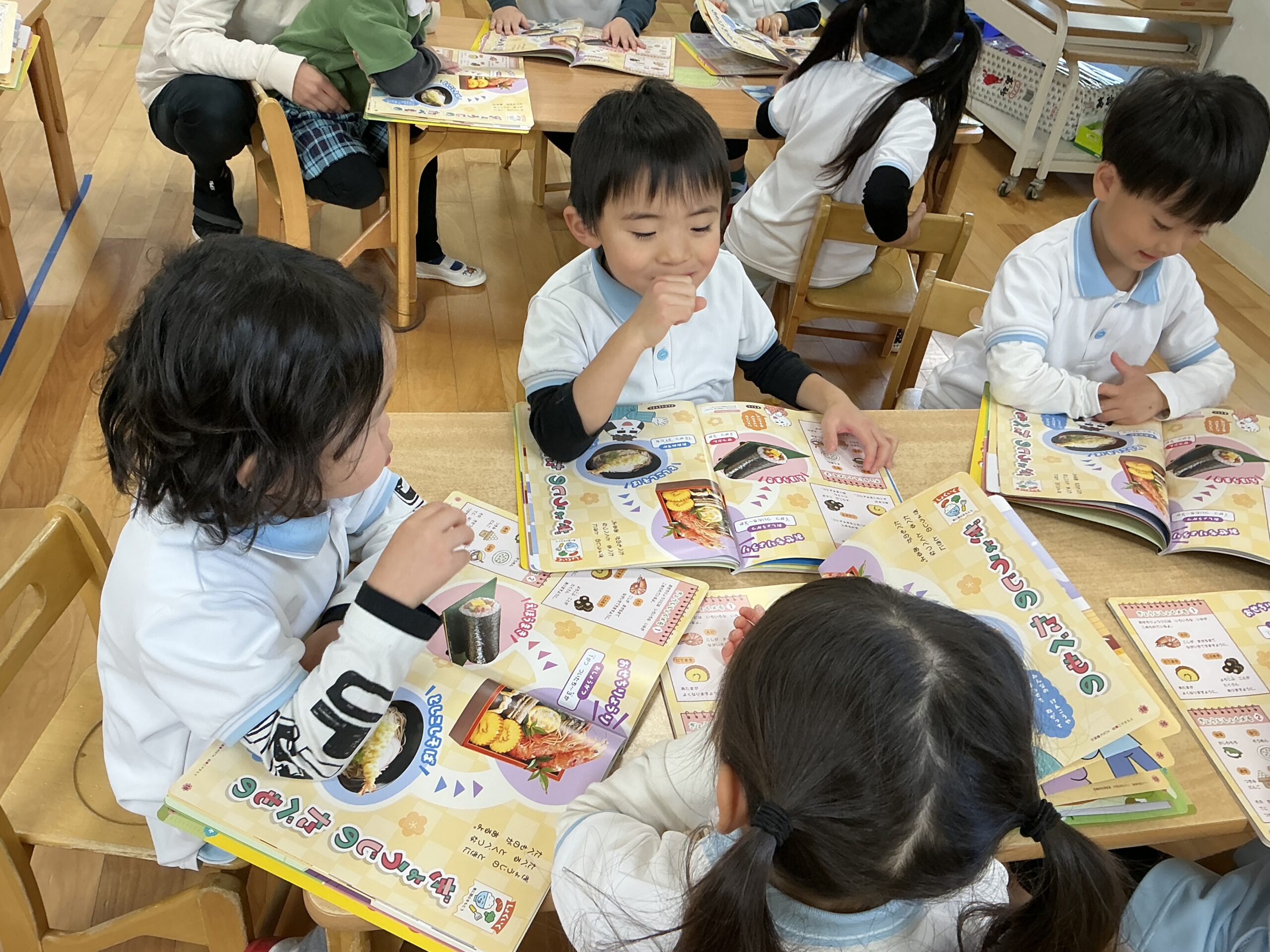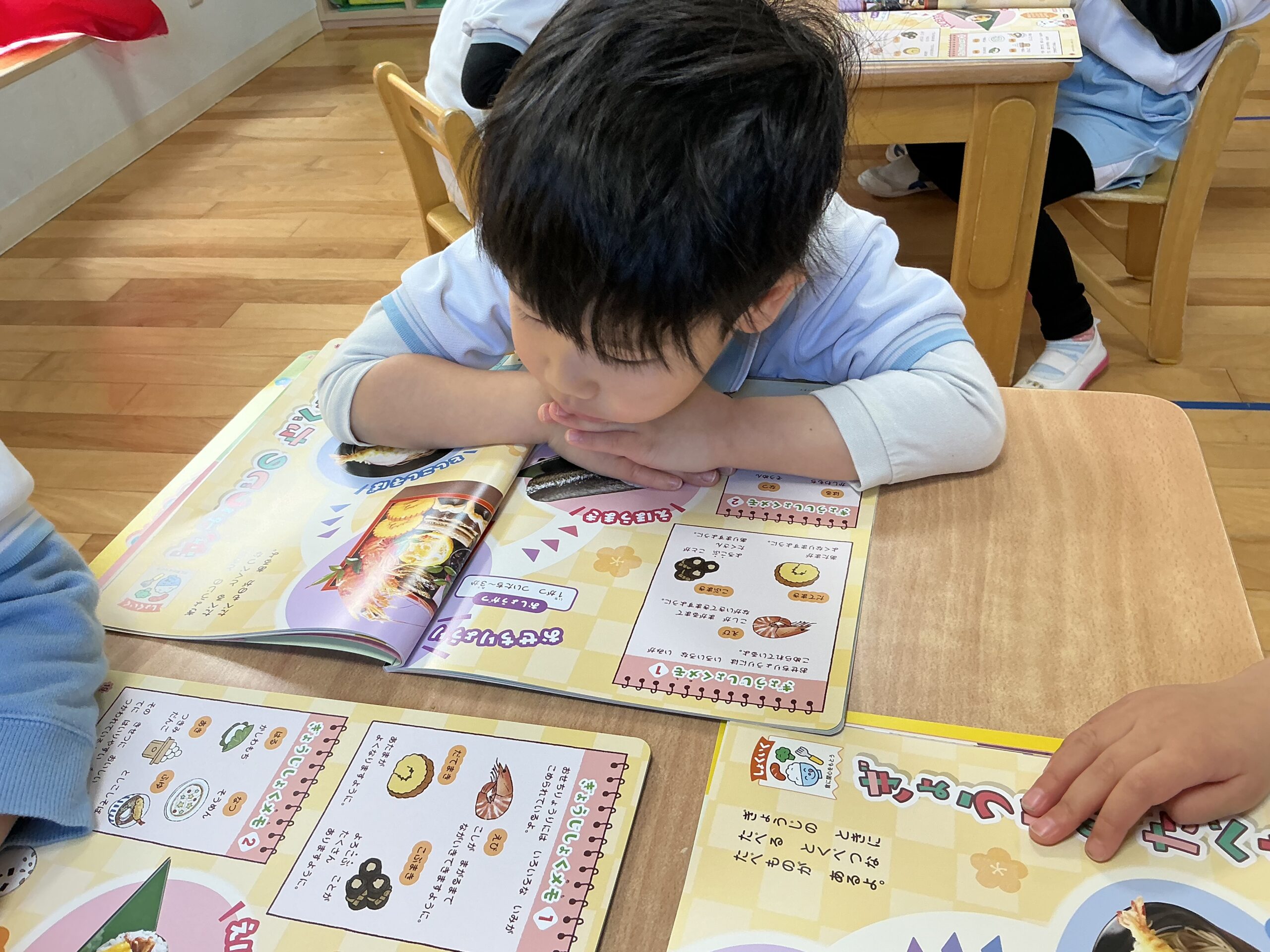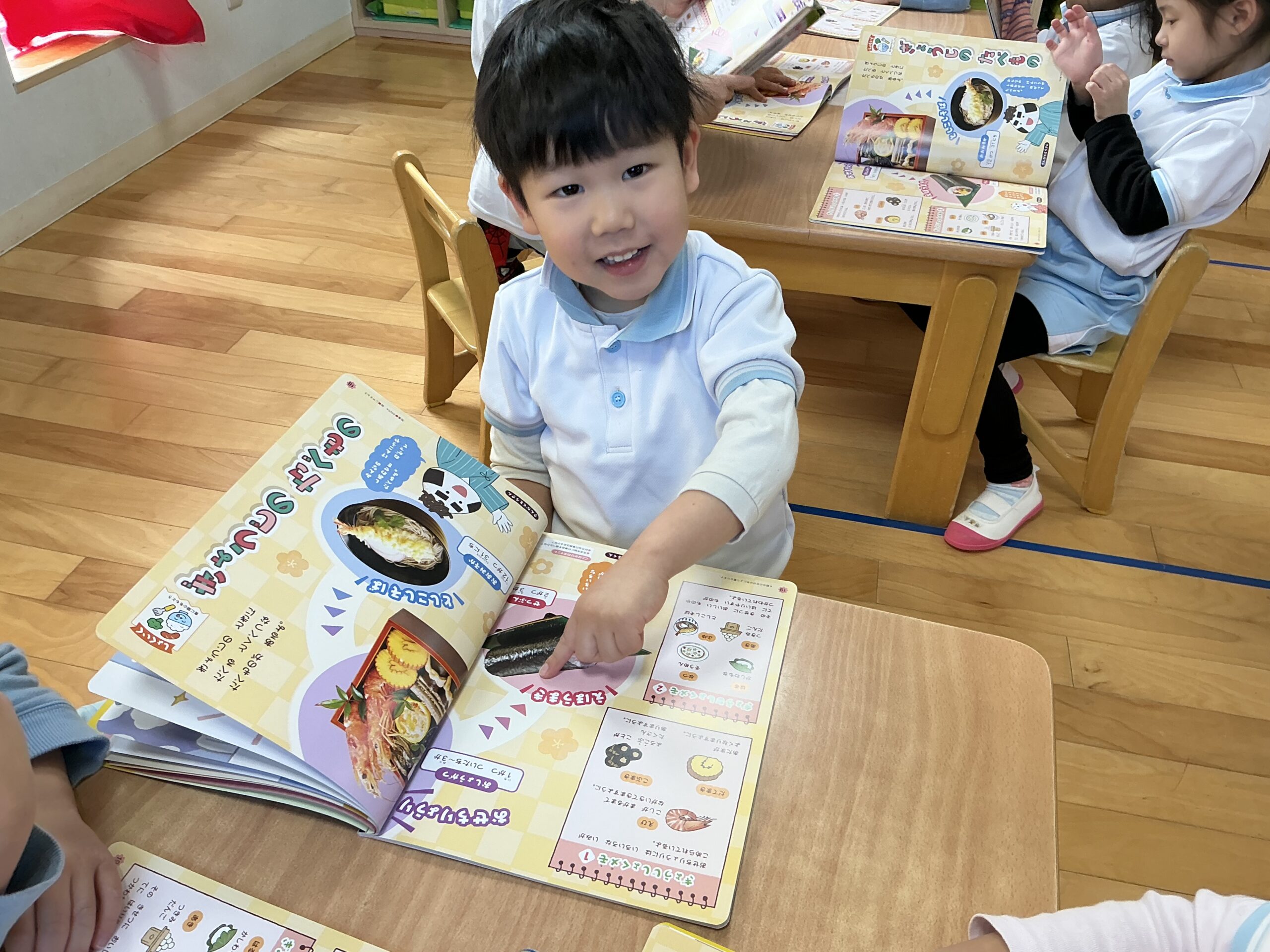 ページも一枚ずつ自分たちでめくったり、保育者と一緒に読み進めてみたりと、毎月楽しいテーマのもと月刊絵本に楽しく取り組んでいる子ども達ですよ✨