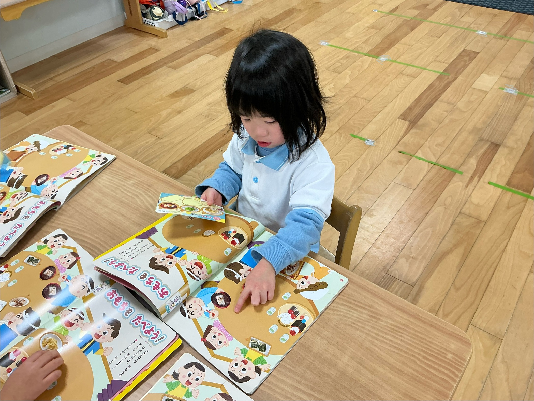 そら組(3歳児)は1月号の月刊絵本のシール貼りをしました!