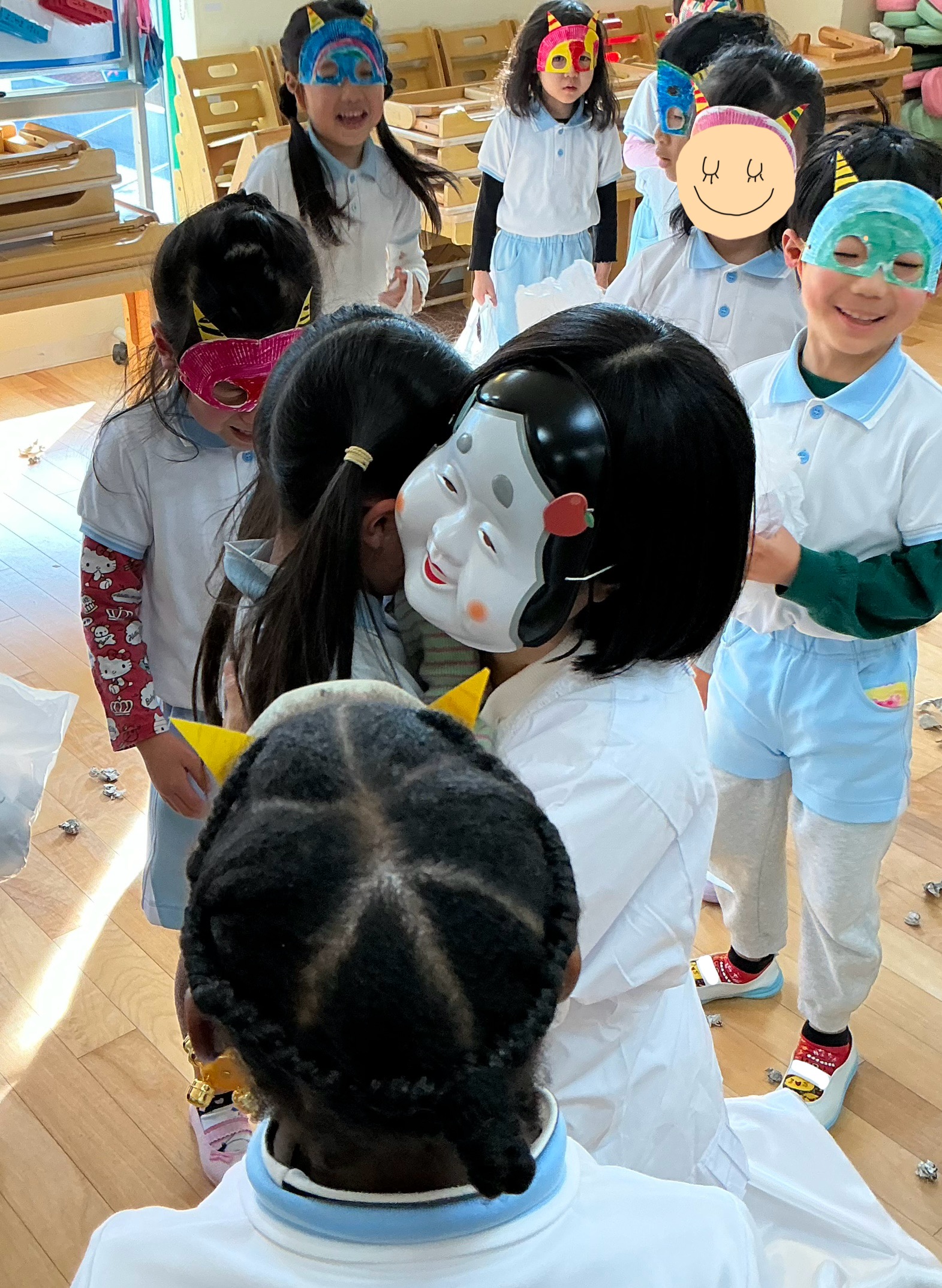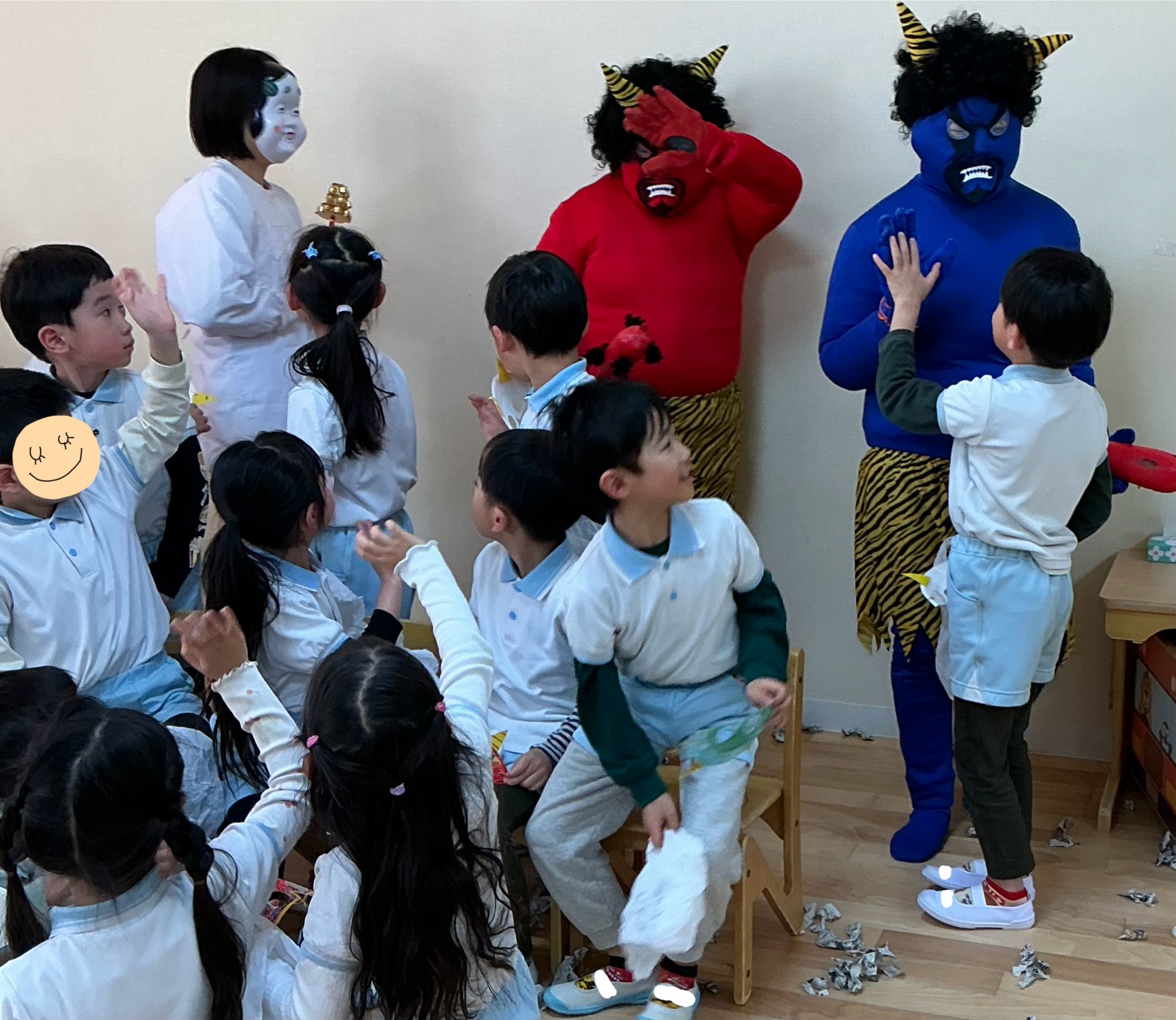 喜んで豆を投げる子様々な表情が見られました😊