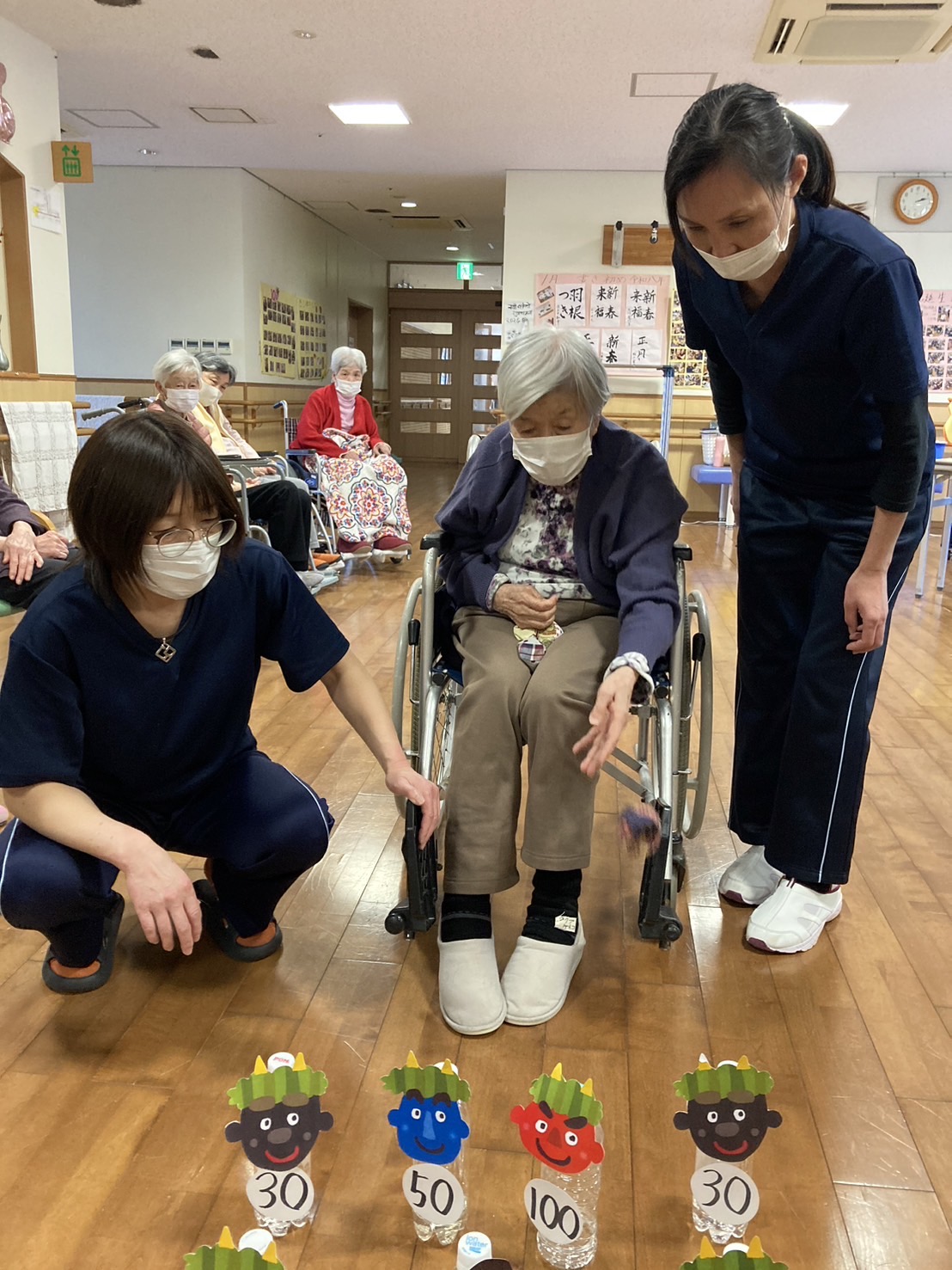当施設でも季節を感じて頂けるよう、節分レクレーションを行いました。