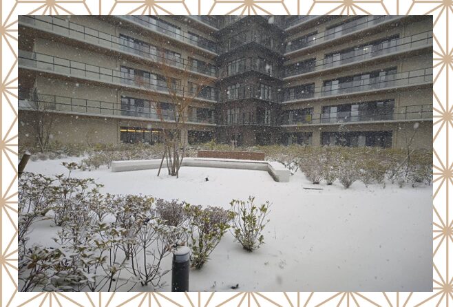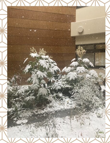 中庭の木々もすっかり綿帽子をかぶっています。🌳