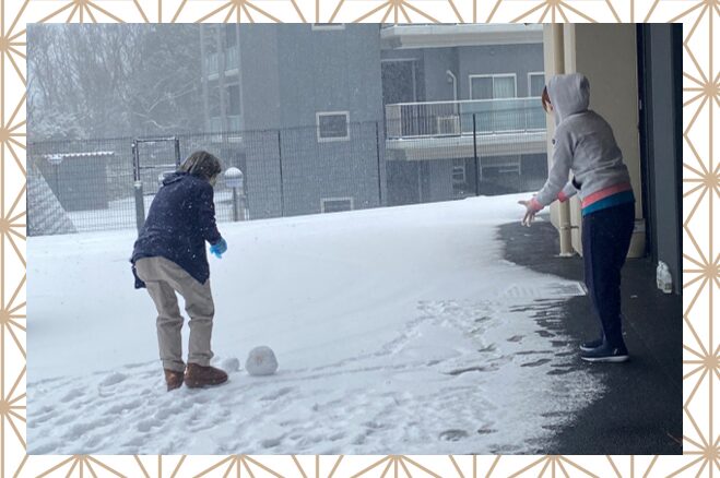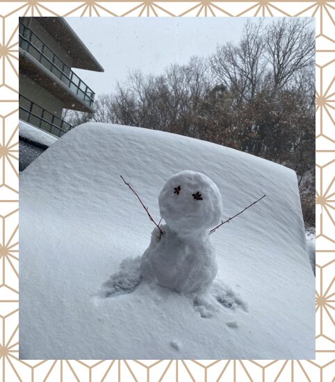 職員が利用者様に喜んで頂こうと寒い中、自分たちが雪だるまになりながら雪だるまを制作!