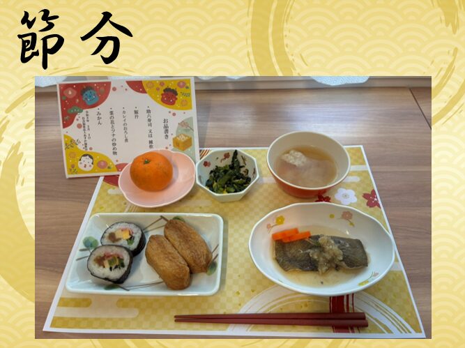 先日の節分の日の食事と、おやつも皆さんに喜んで頂きましたよ(❤´艸`❤)