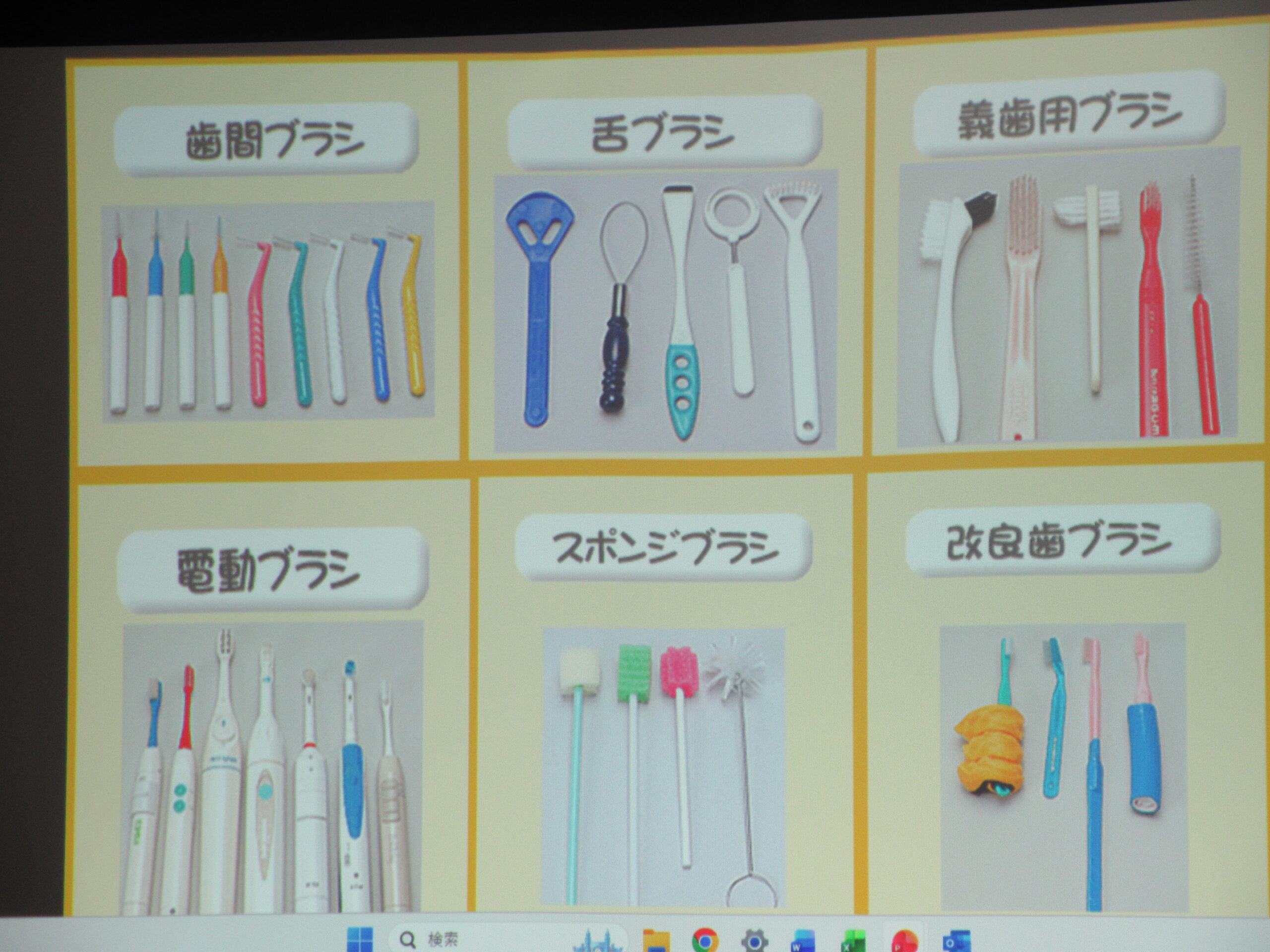 他にも、歯並びの悪い方、舌が汚れている方へのブラッシングを行う立ち位置や補助器具なども教えていただきました。