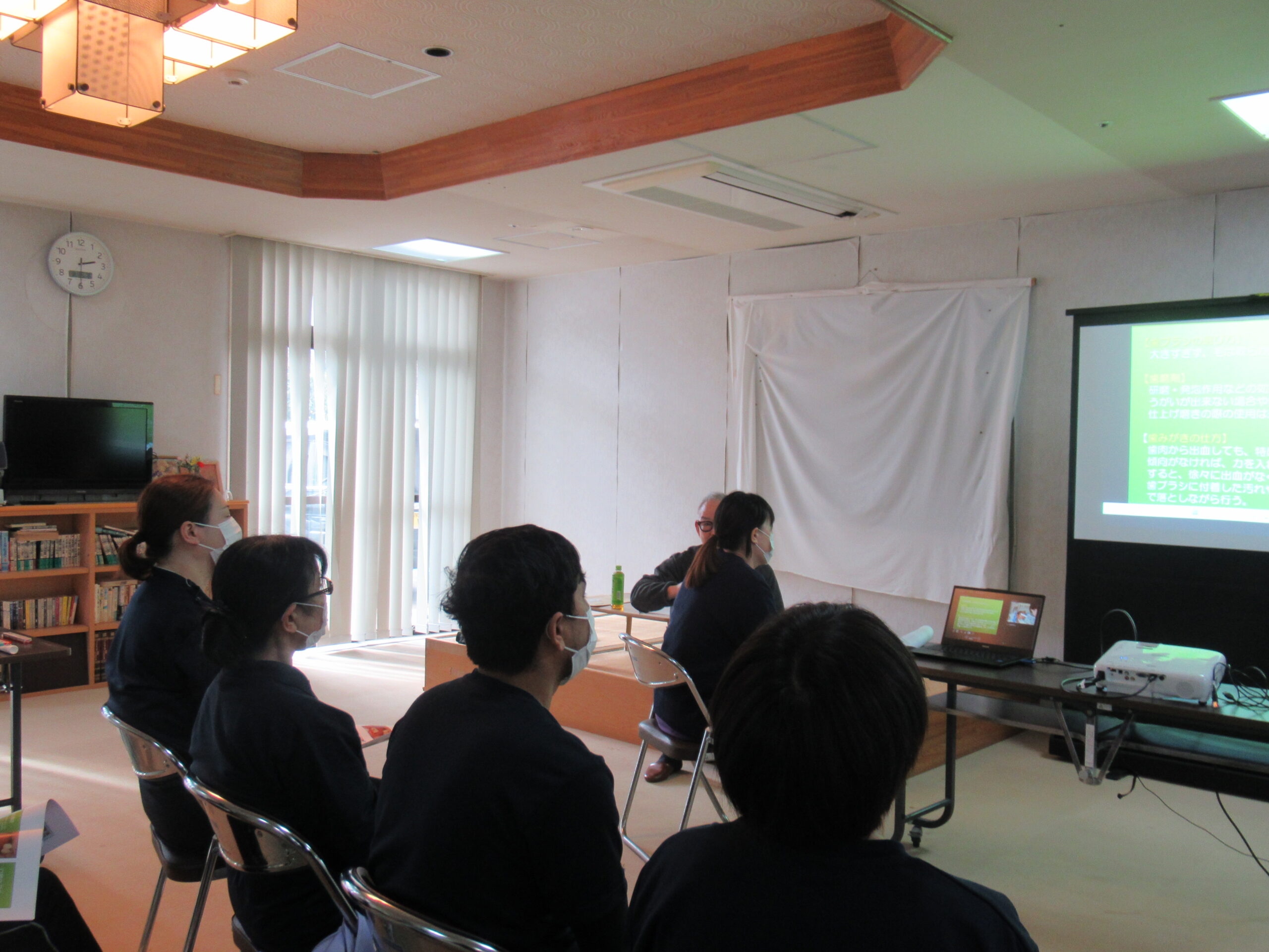 施設協力歯科医の先生に来ていただき 口腔ケアについての研修会をしていただきました。