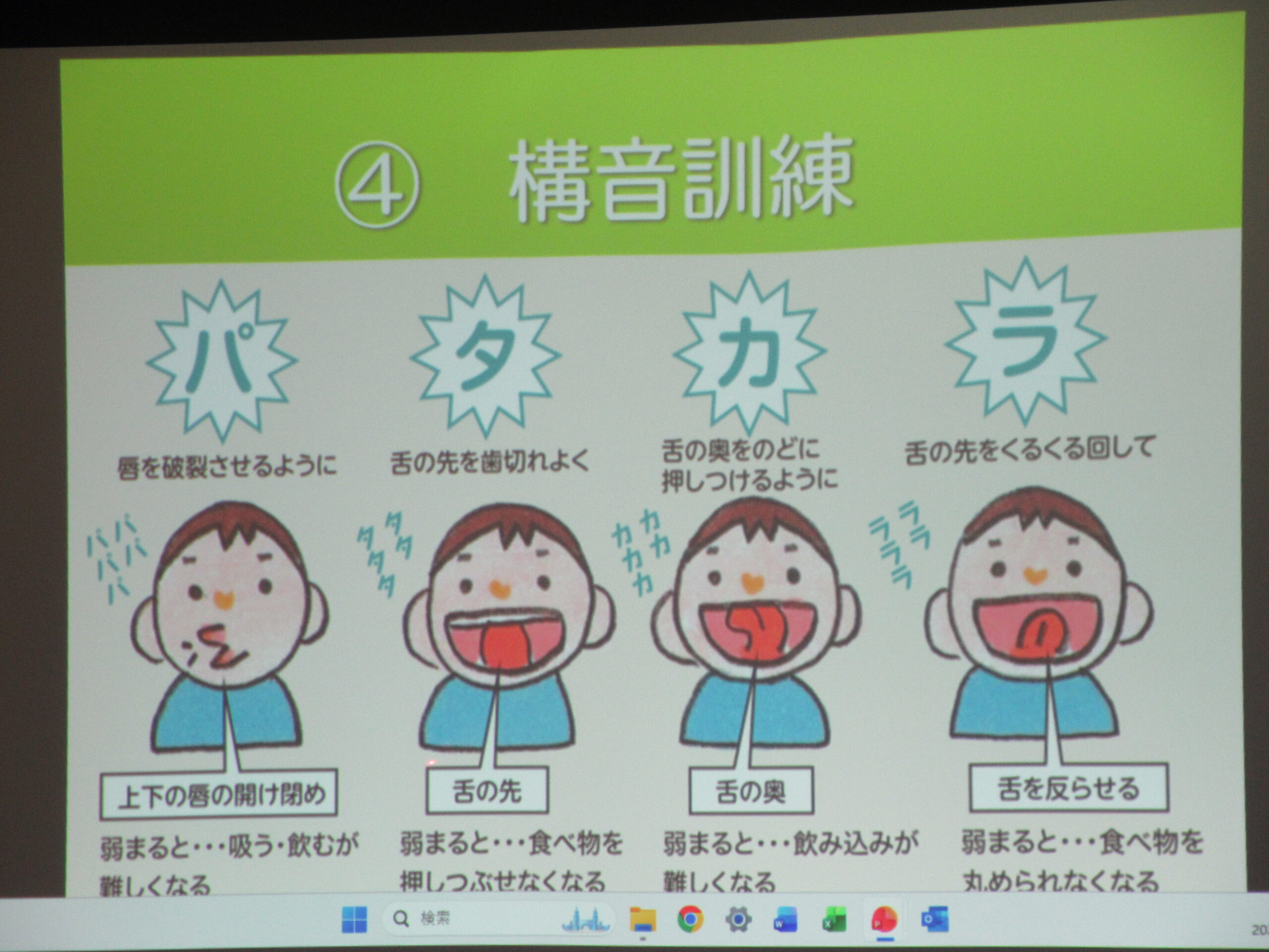 最後に 摂食・嚥下機能訓練となる体操をしたり、構音訓練(パタカラ)をして終了しました。