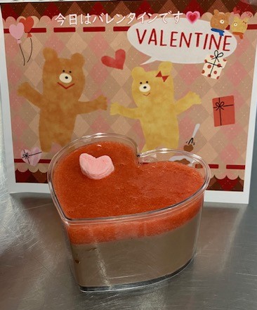 チョコプリンの上には苺ソースがかかっておりました🍓