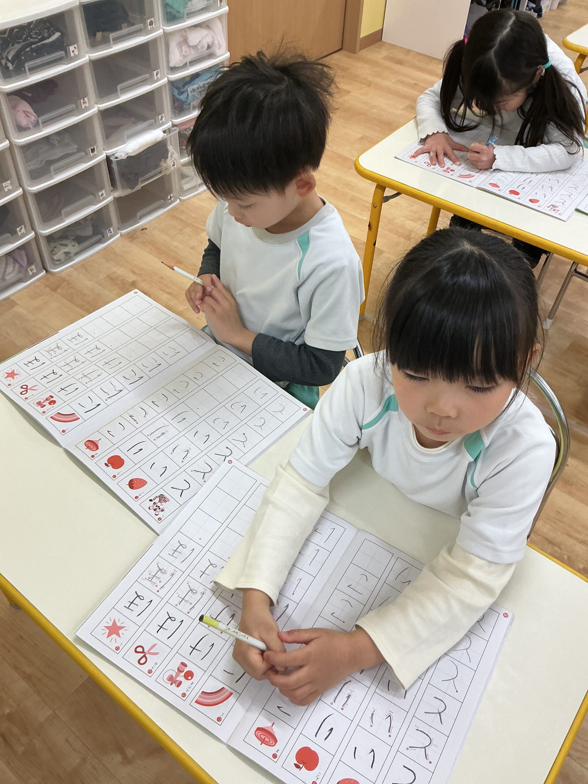 ひらがなのワークにも日々の保育の中で取り組んでいます✎
