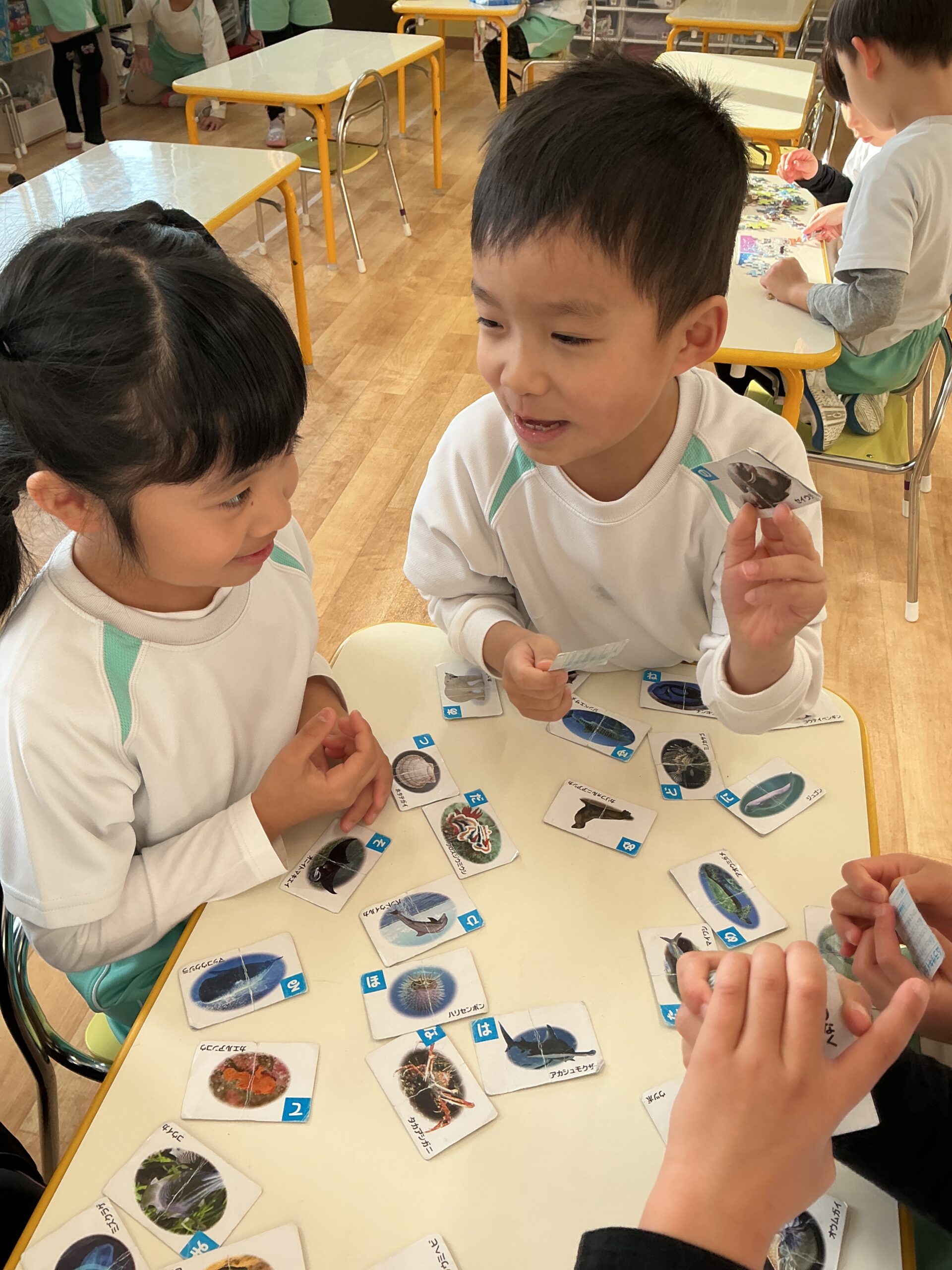 最近の5歳児クラスのひかり組さんは、自由遊びではカルタ遊びに夢中です♪