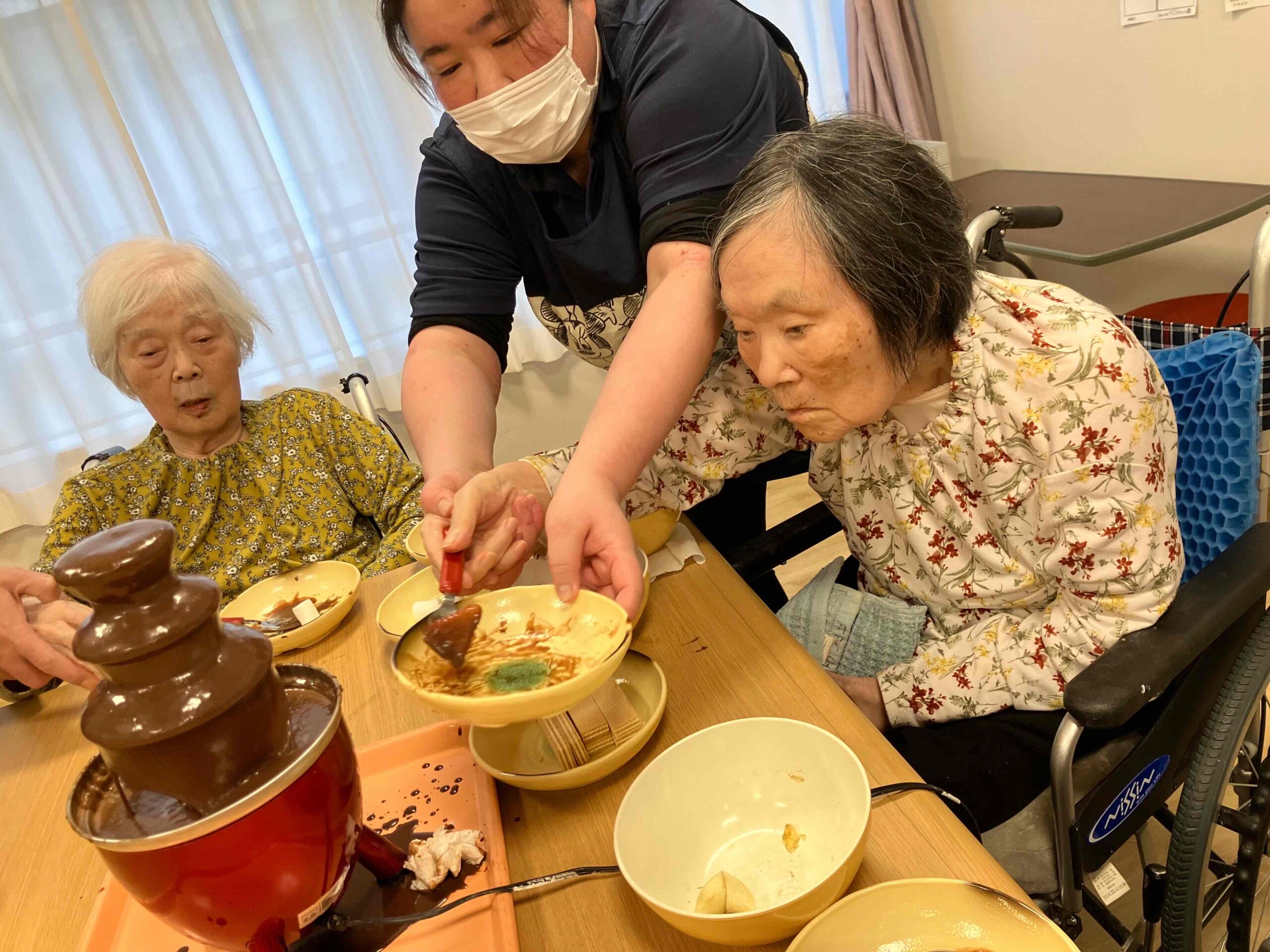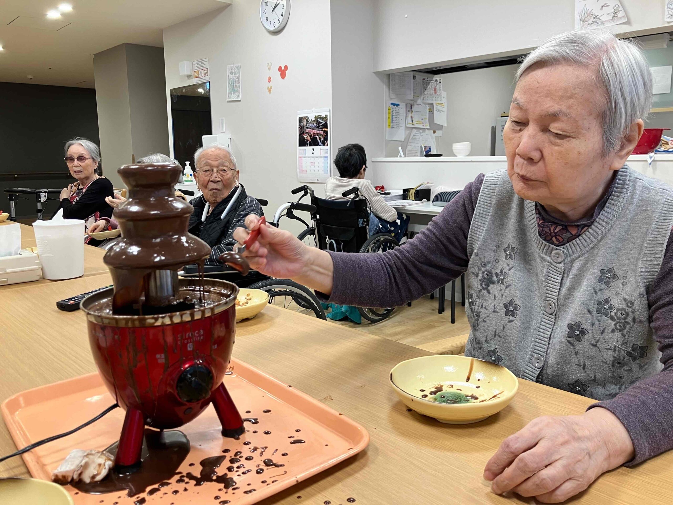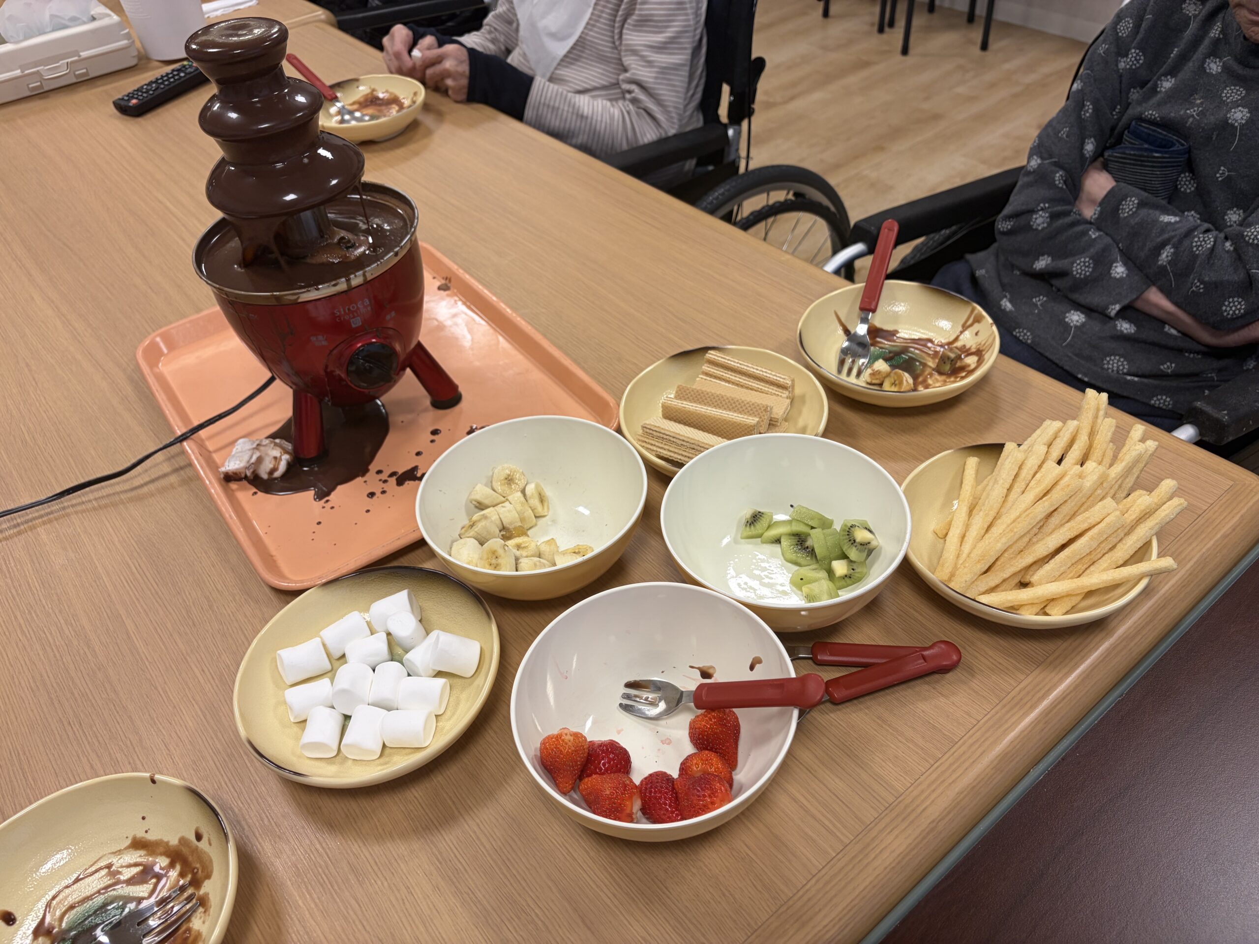バレンタインレクリエーションとしてチョコレートフォンデュを行いました🍫