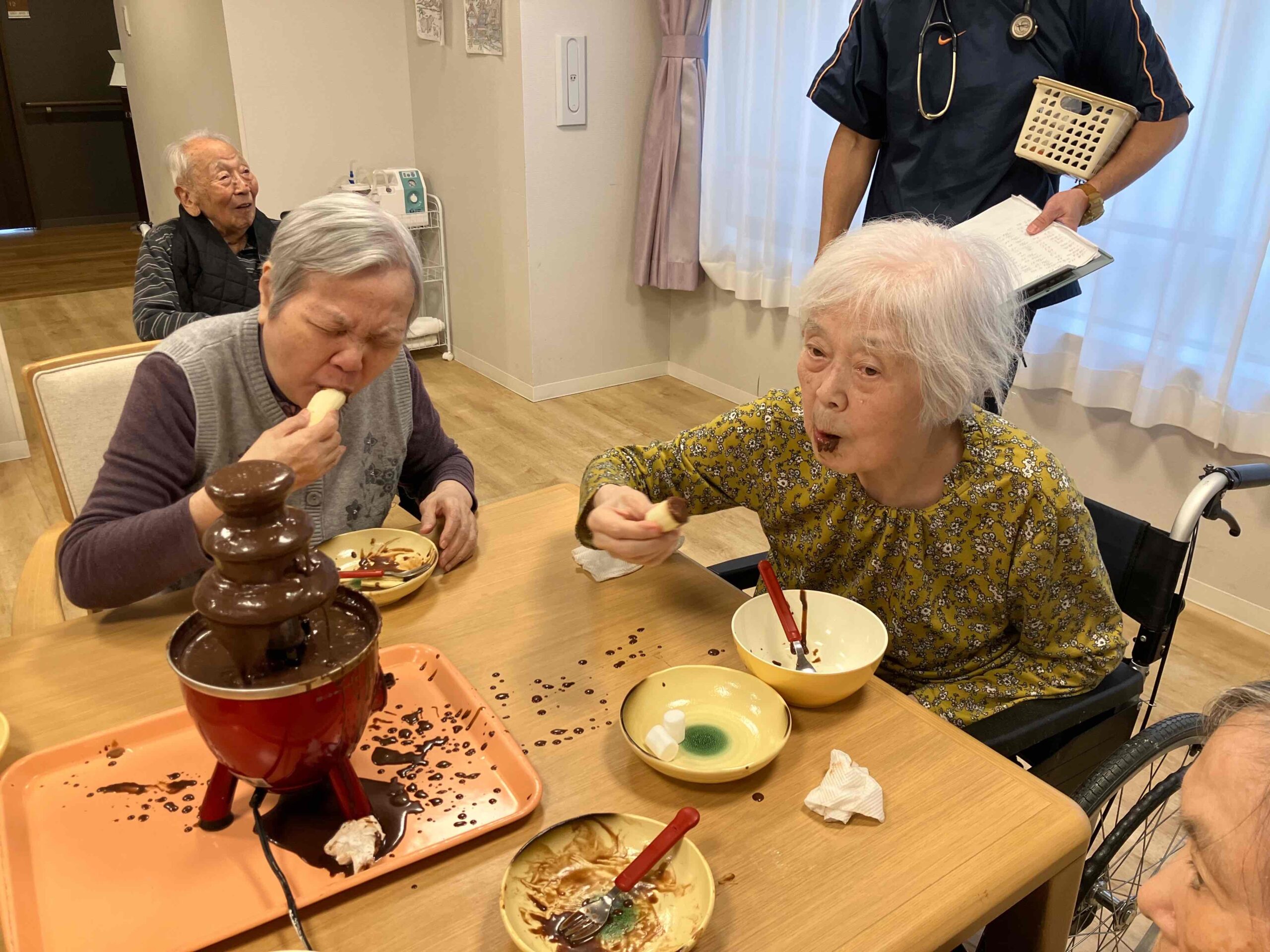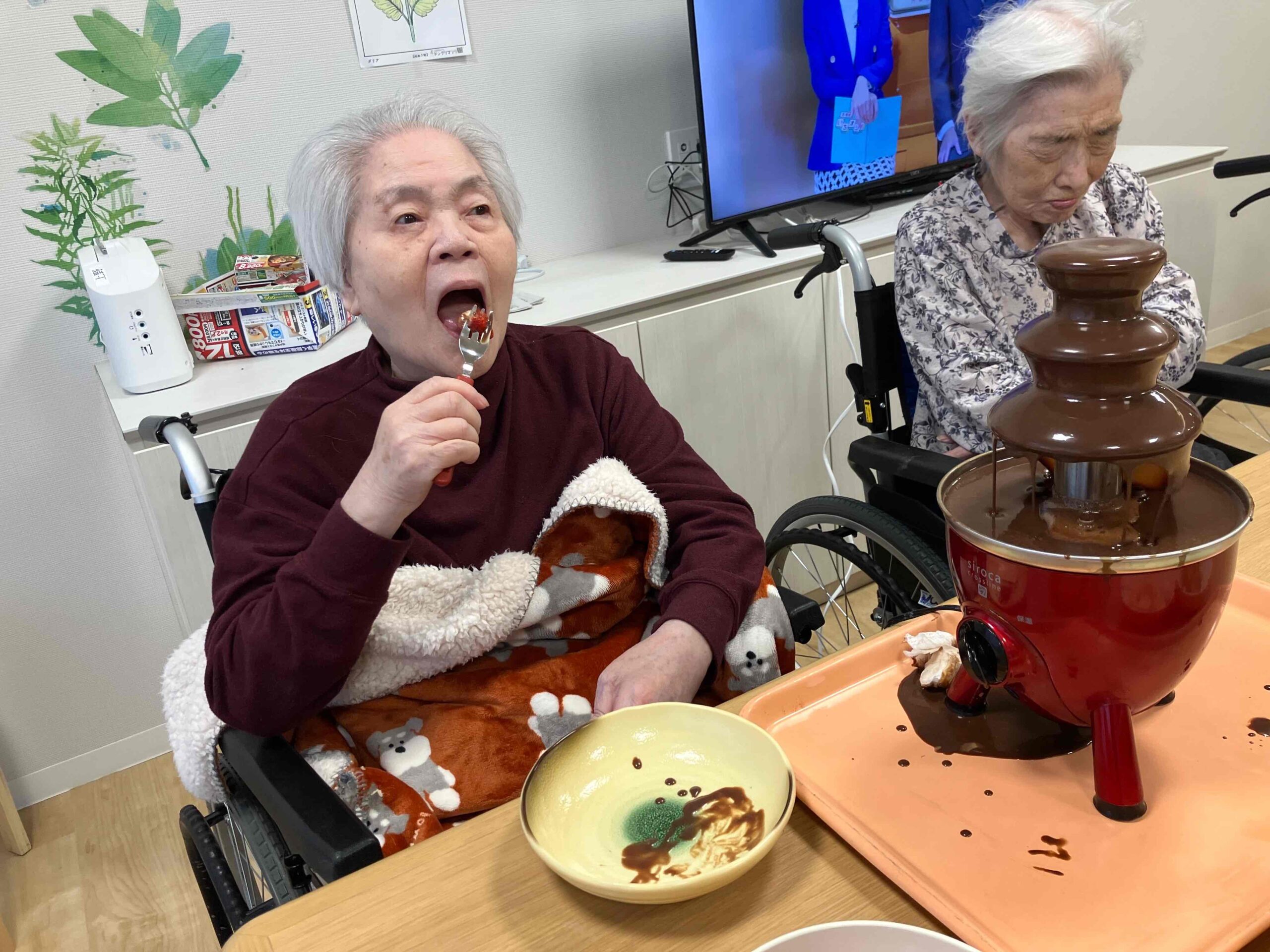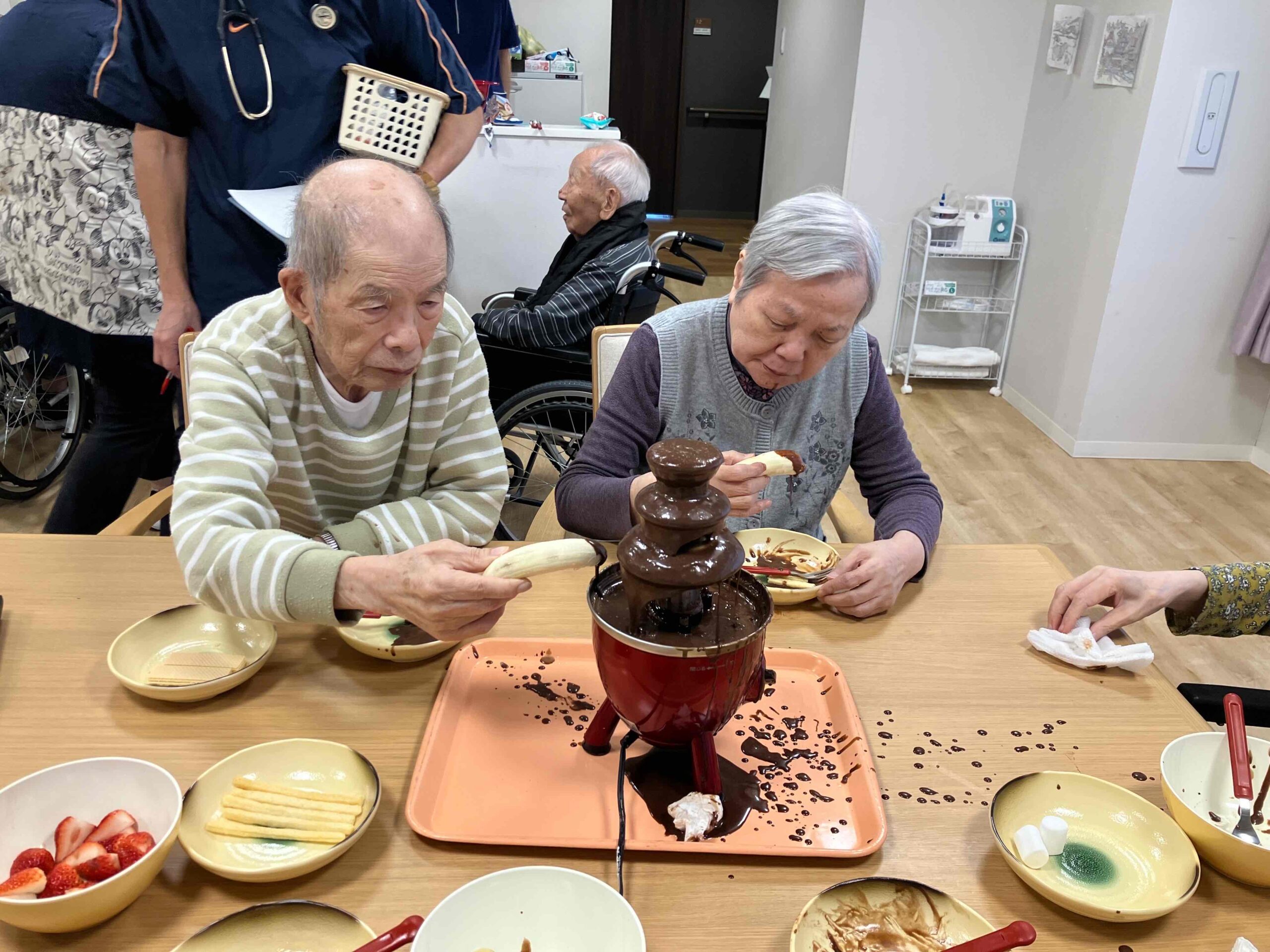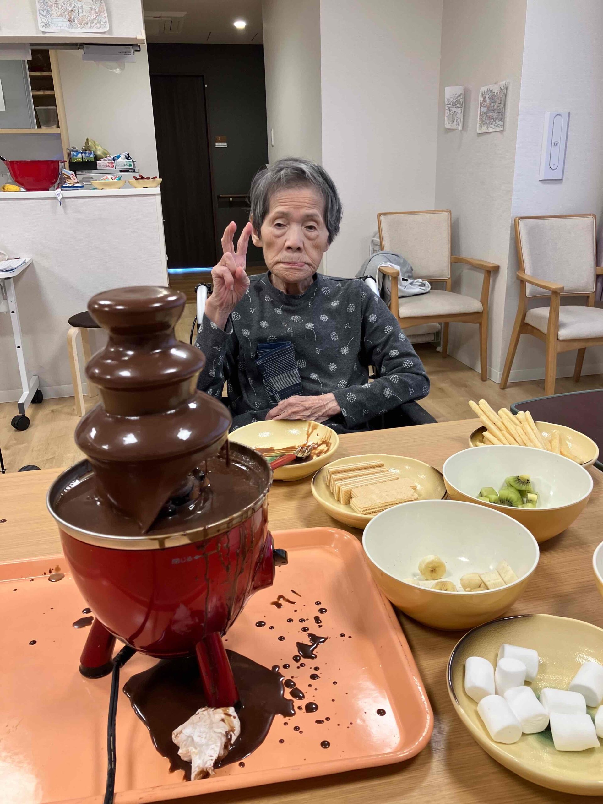 バレンタインレクリエーションとしてチョコレートフォンデュを行いました🍫