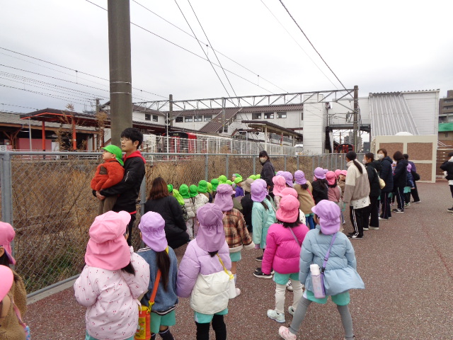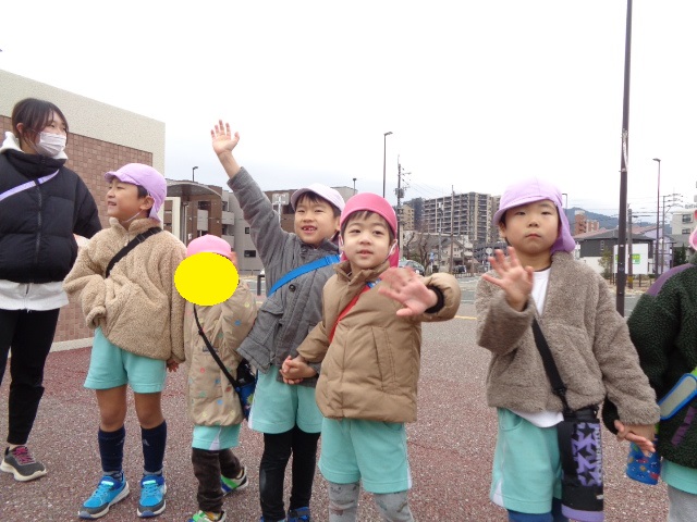 2歳児クラス、4歳児クラス、5歳児クラスの3クラスで、JR二日市駅へ