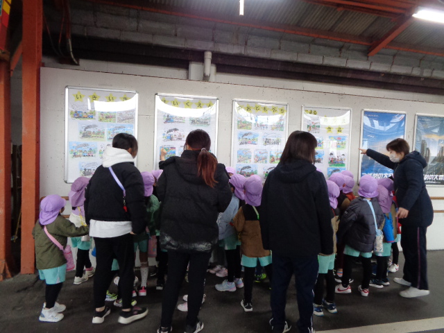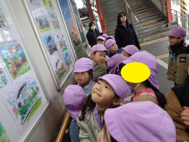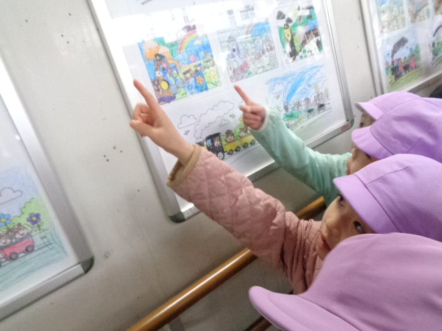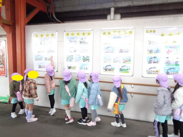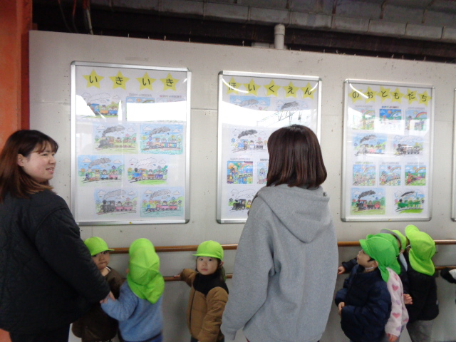 次は、駅構内に飾って頂いている、5歳児クラスのお友達の「塗り絵」を見学させて頂きました。