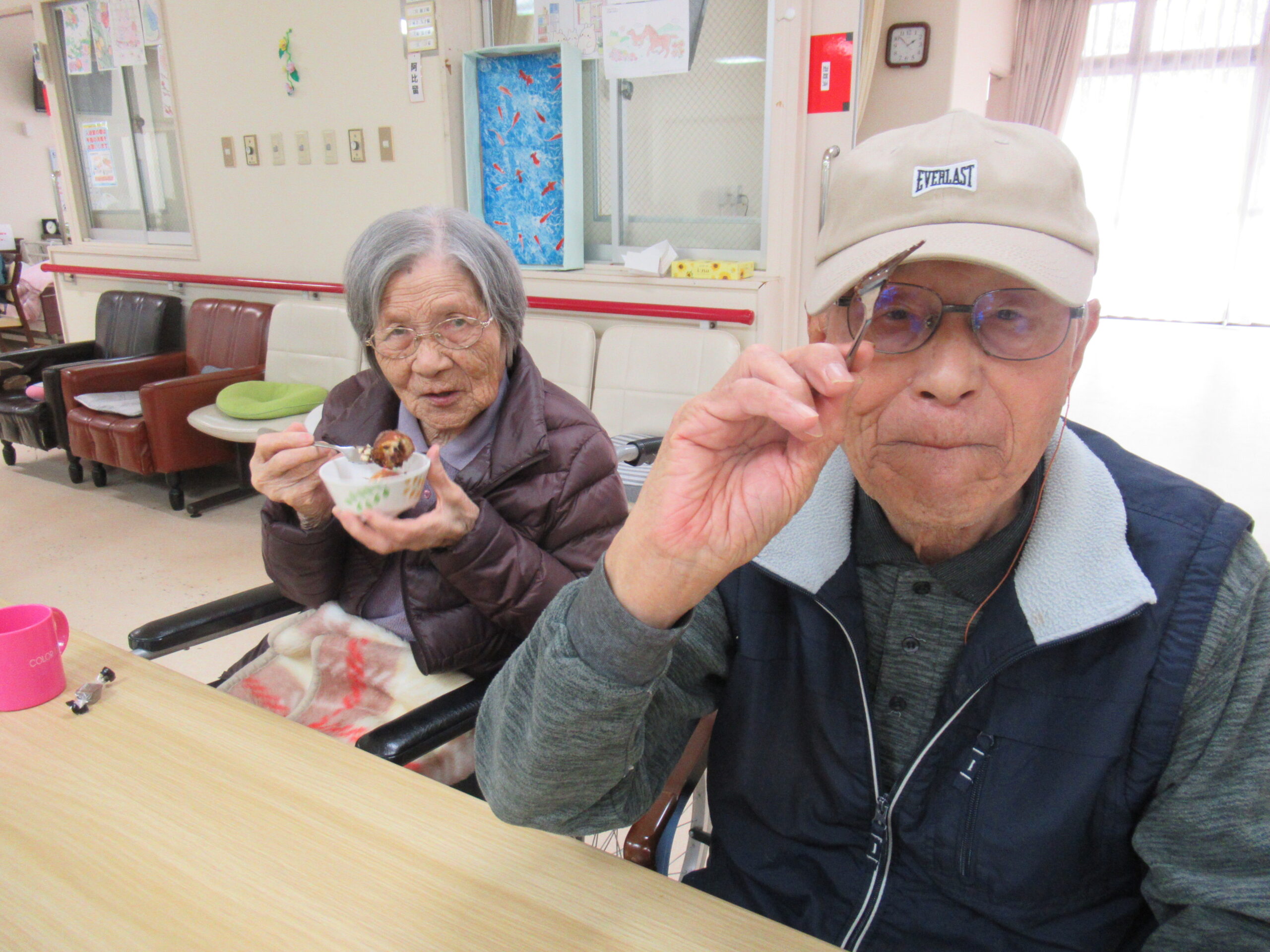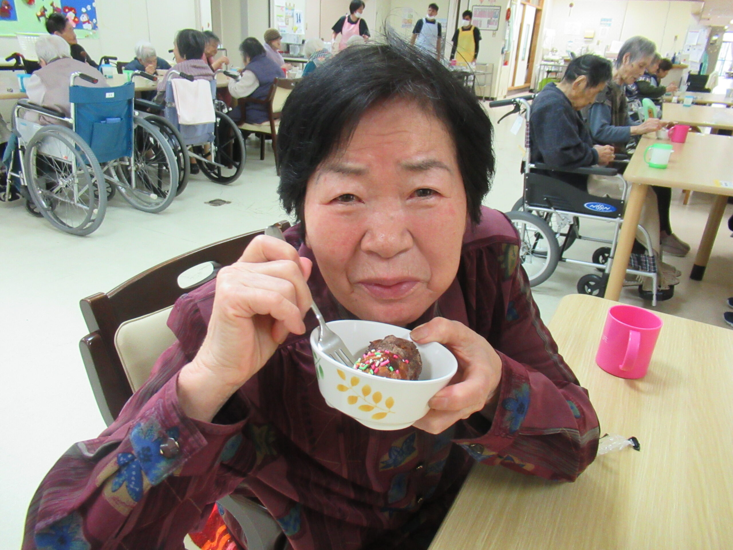 今月のおやつレクは バレンタインデーにちなんで 手作りチョコレート鈴カステラをいただきました☺