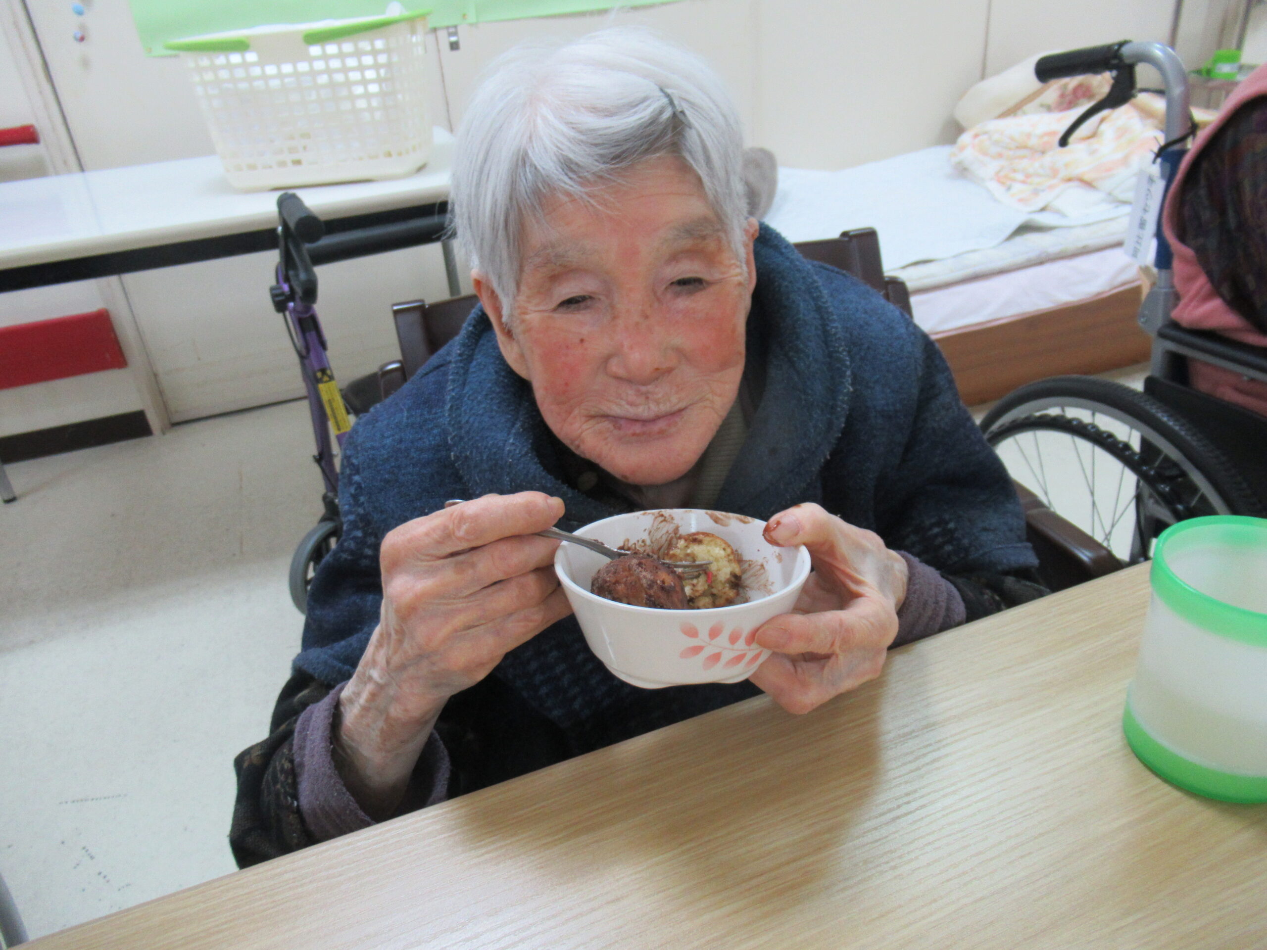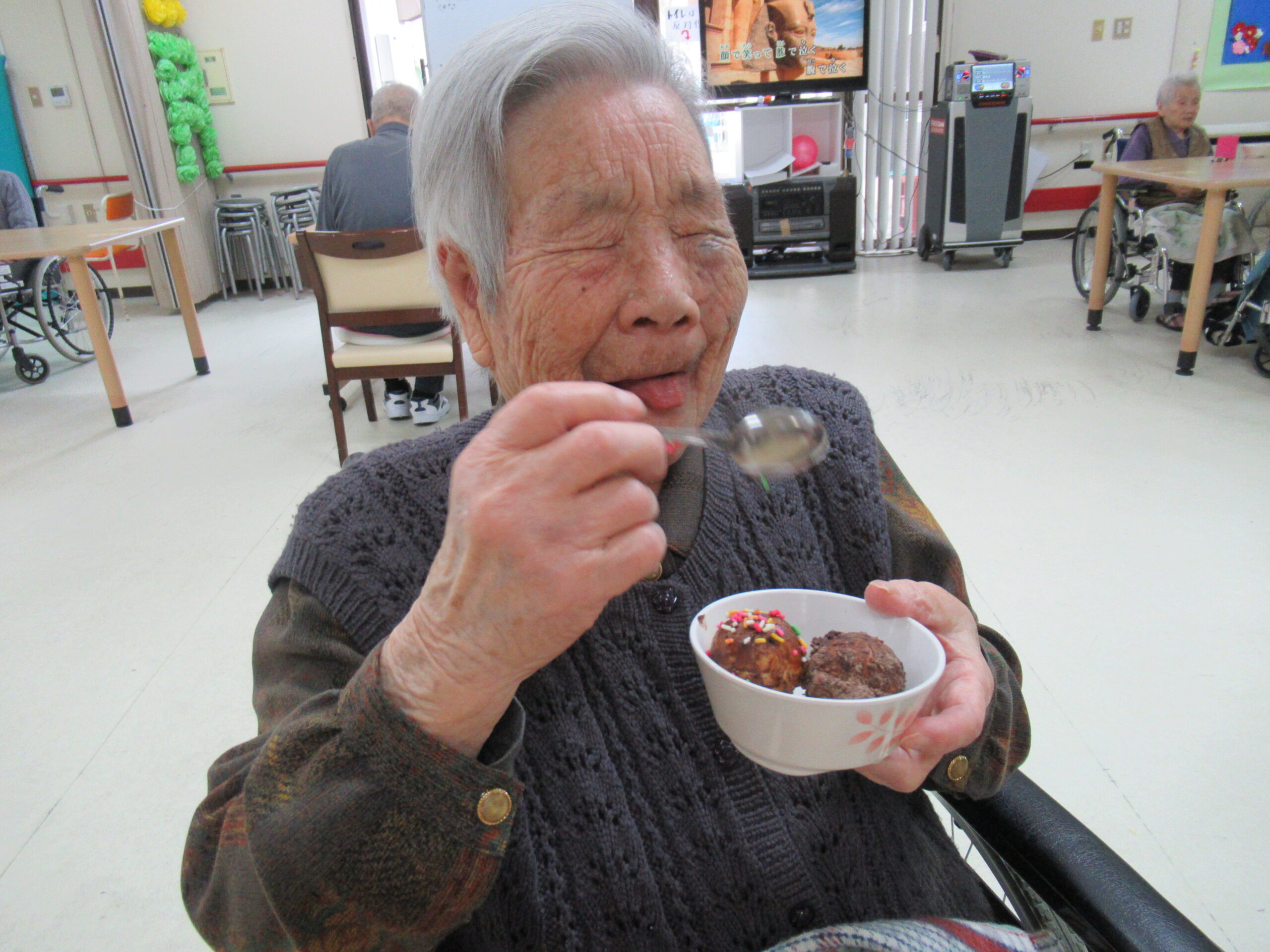 今月のおやつレクは バレンタインデーにちなんで 手作りチョコレート鈴カステラをいただきました☺