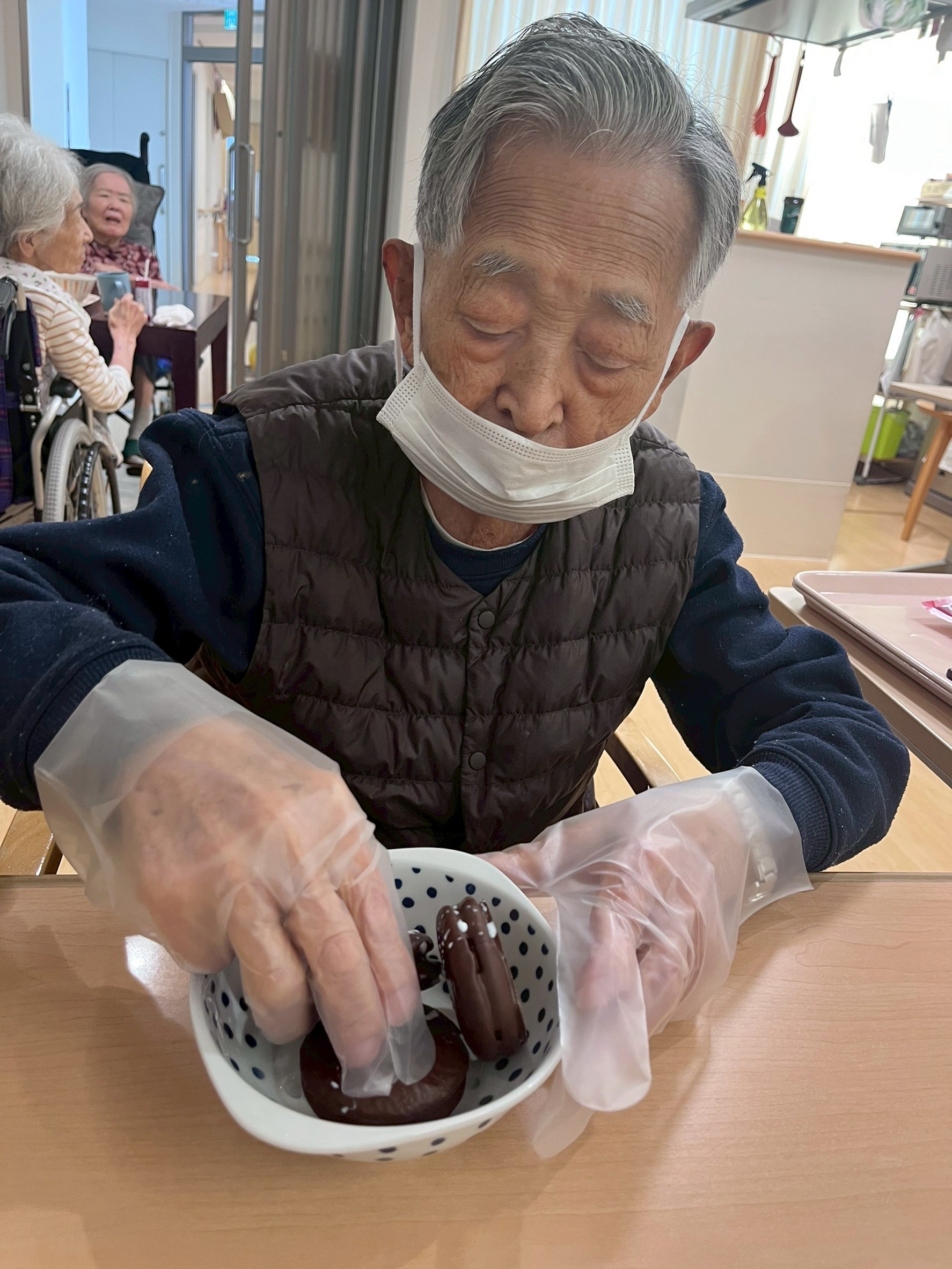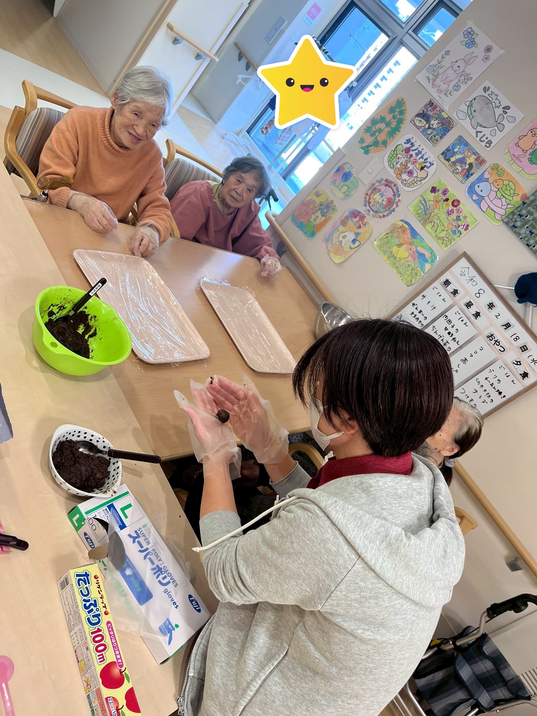 煌奏館6Fの優ユニット(ショートステイ)では、少し遅めのバレンタインチョコ作りを行っていました🍫
