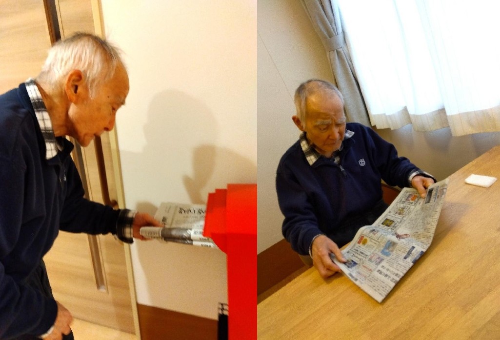 さっそく入居者さまと一緒に新聞を取りに行きました。