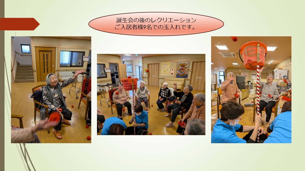誕生会の後は、9名のご入居者様でレクリエーションを実施!