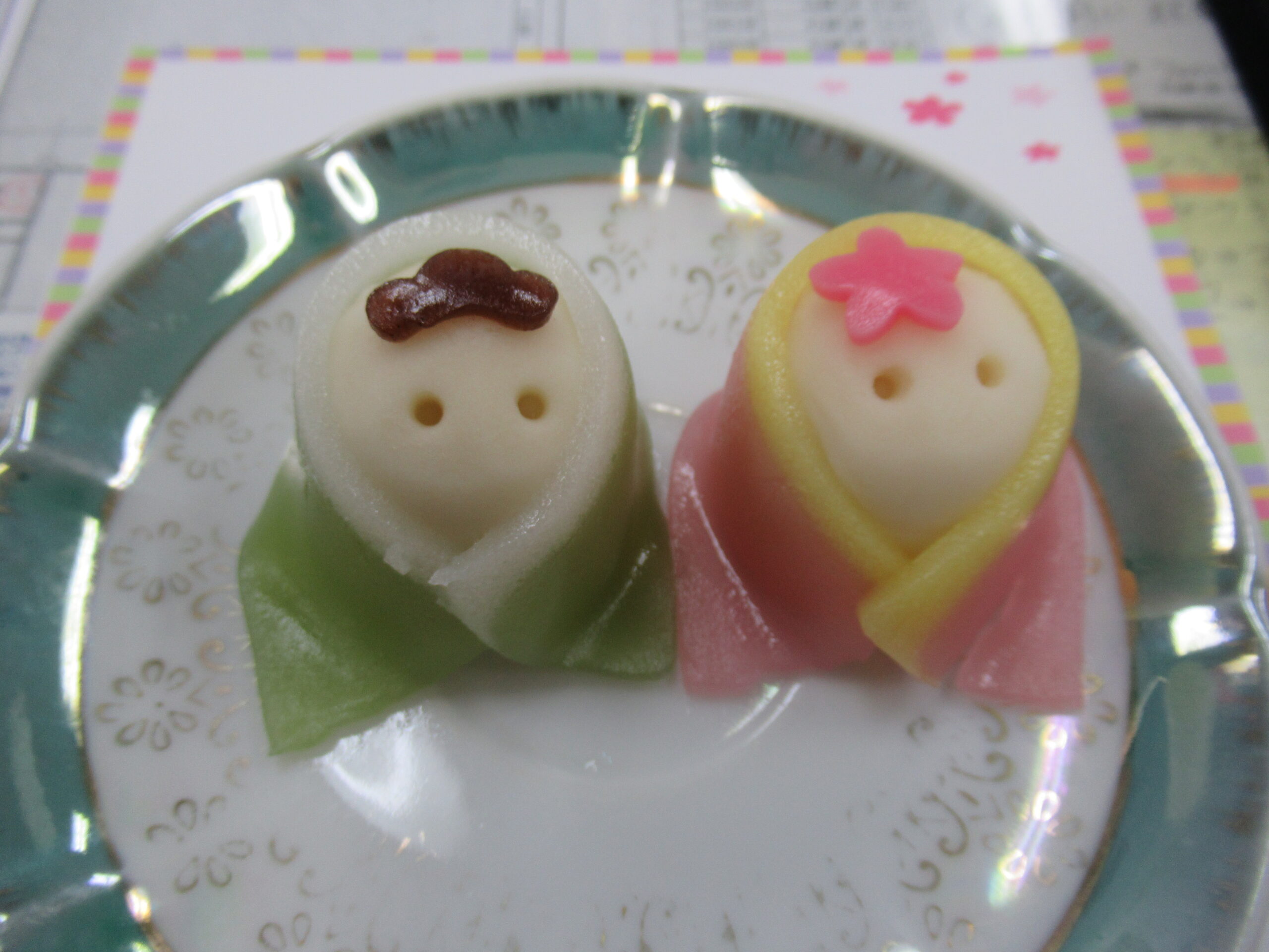 そのあとは かわいいおやつの登場♡ お内裏様とお雛様の練りきりです☆